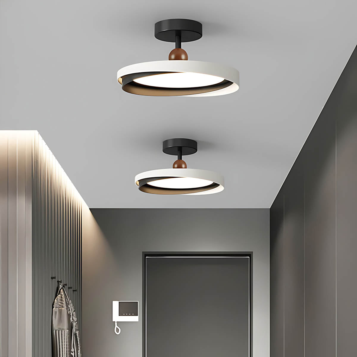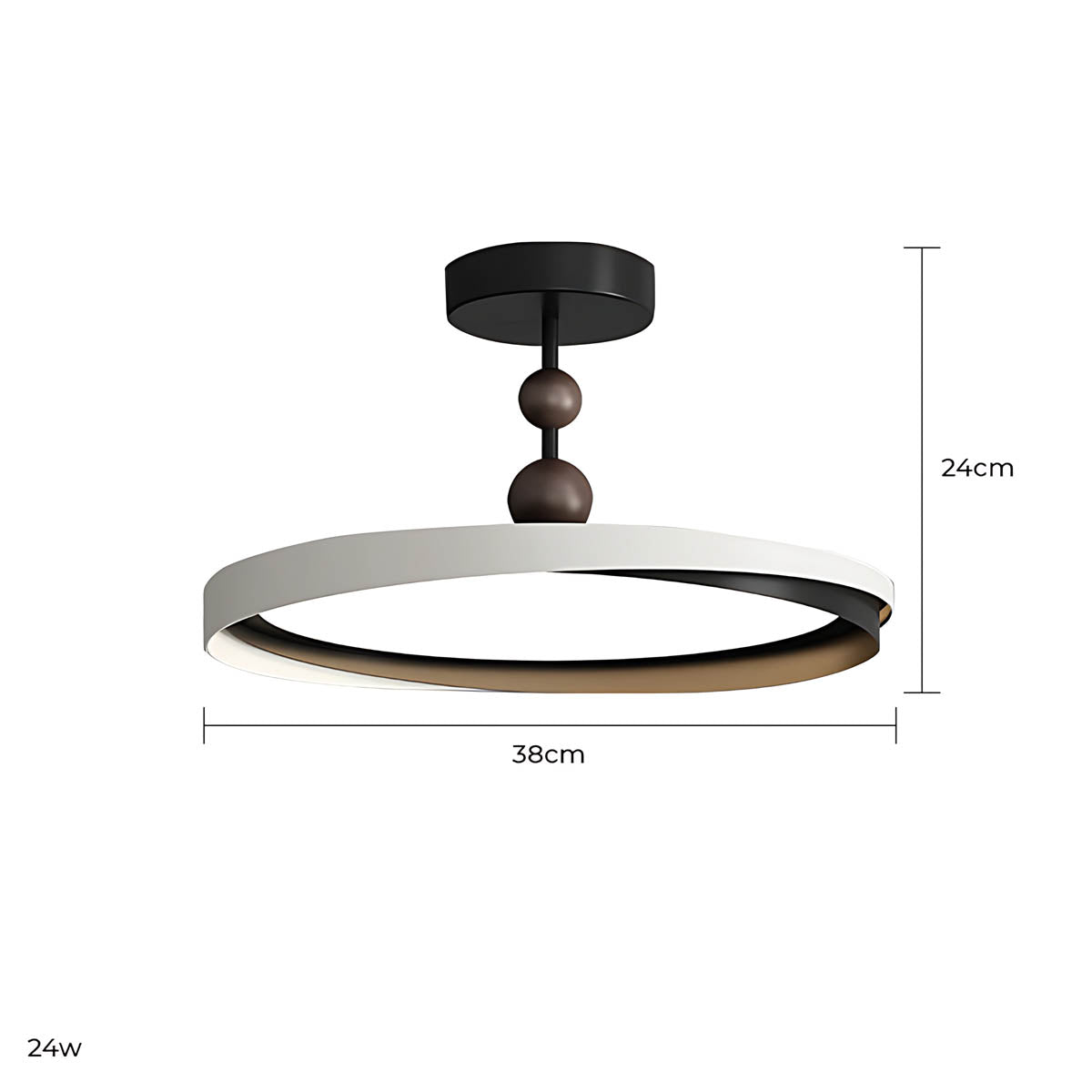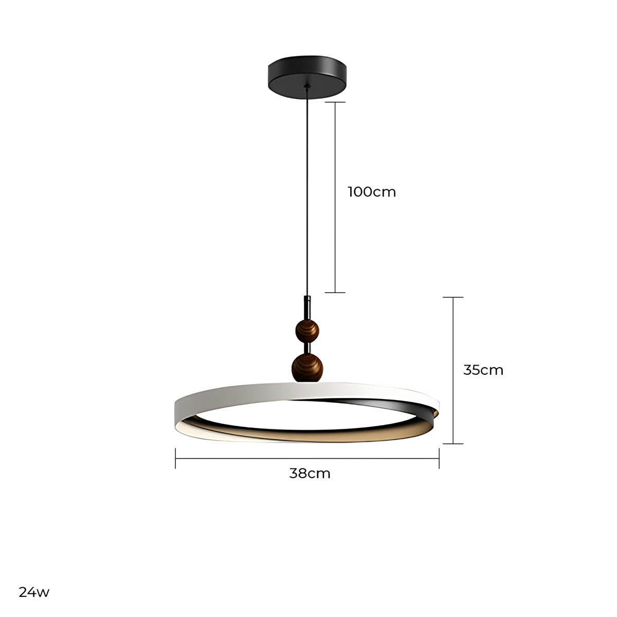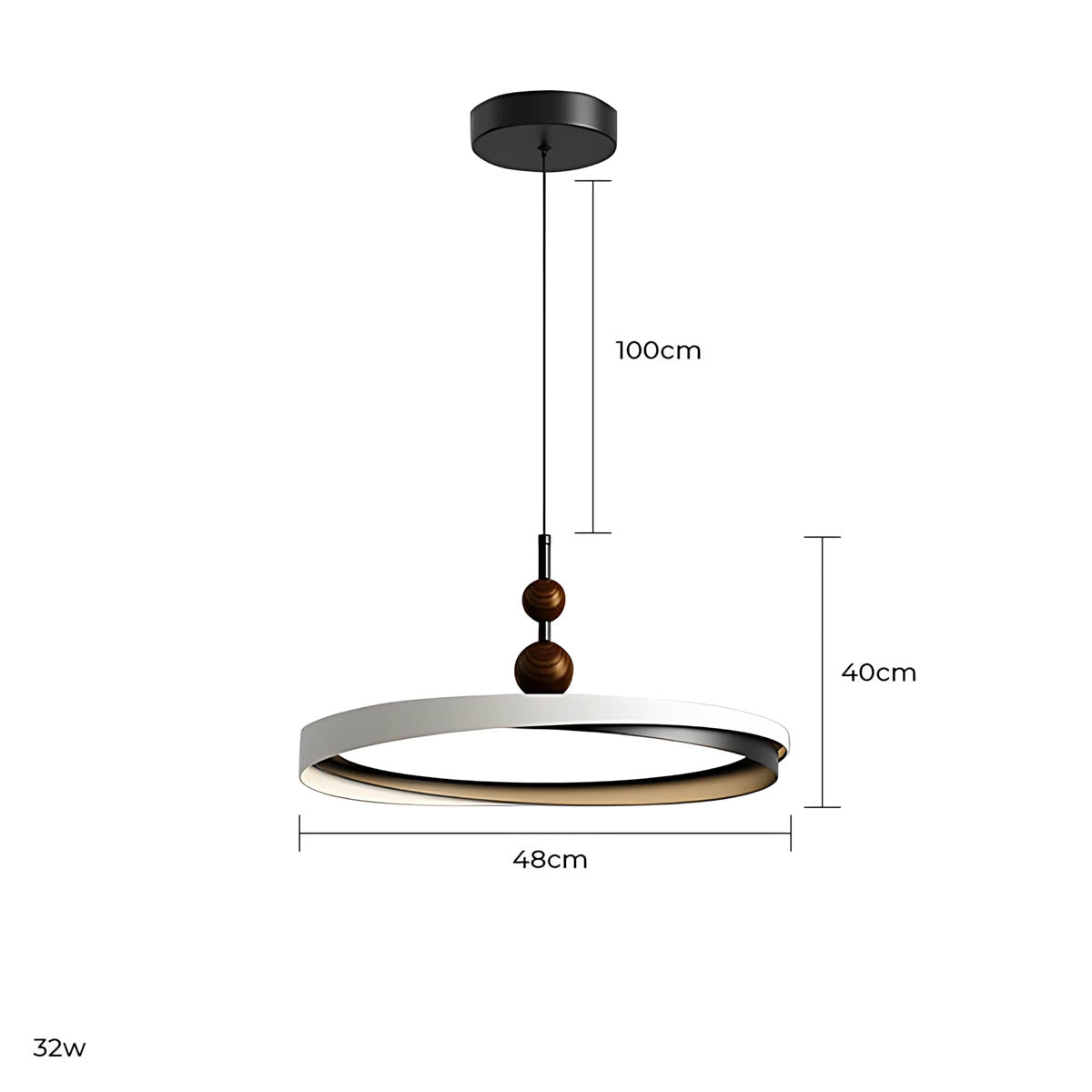 Crafted from durable aluminum and premium acrylic, its distinctive overlapping ring design, accented with charming wooden spheres, offers a sophisticated yet playful modern minimalist aesthetic.