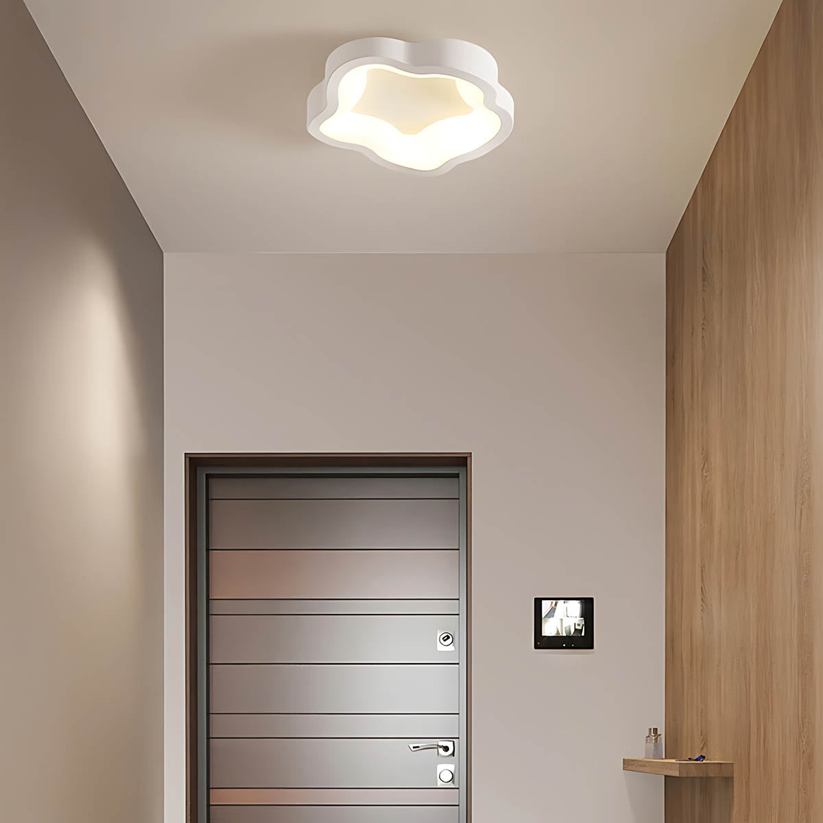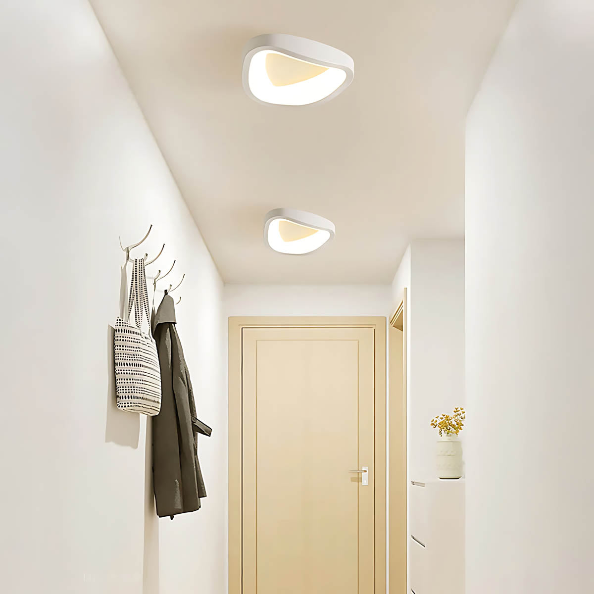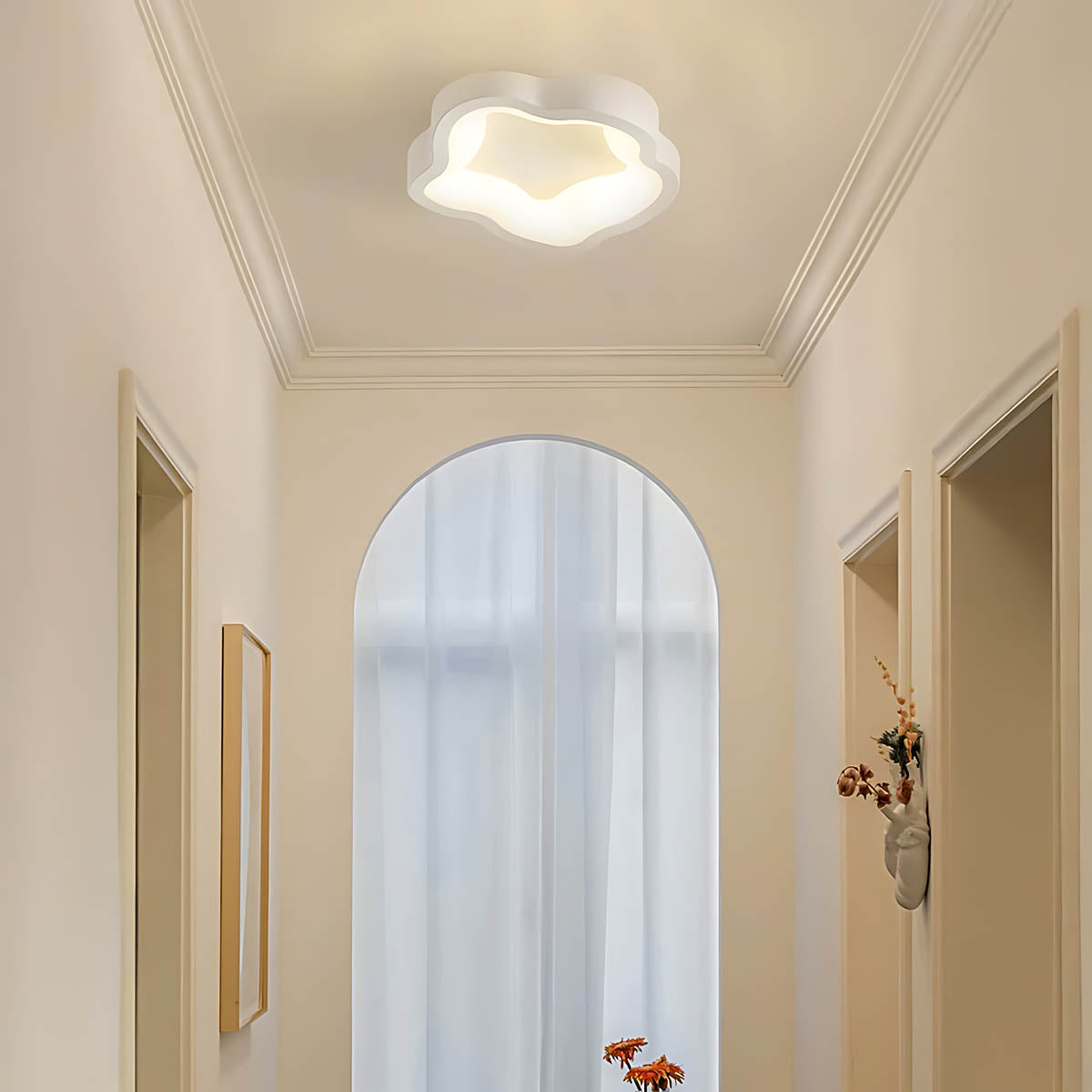 Its softly contoured silhouette—available in black or white—frames a seamless acrylic diffuser that spreads a warm, even glow without glare, perfect for hallways, bedrooms, living rooms, and entryways.
