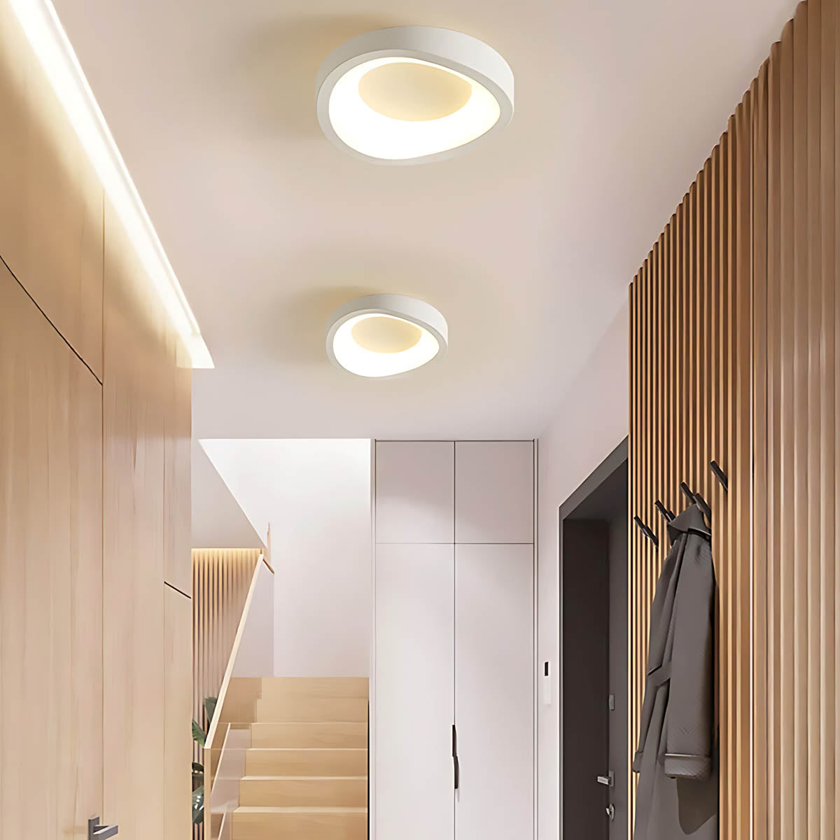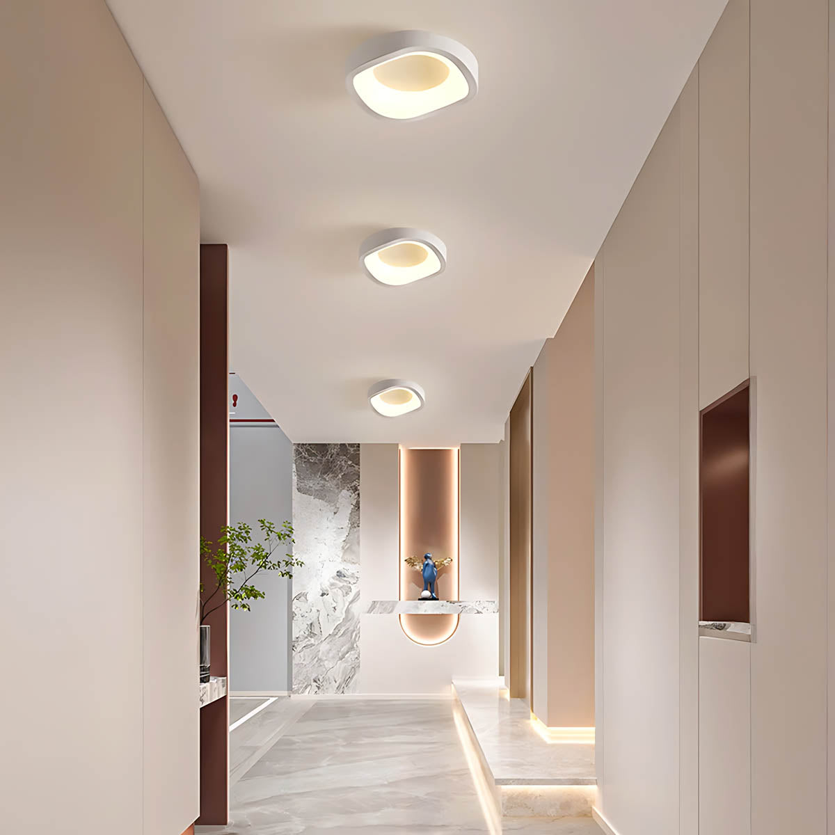 The low-profile design hugs the ceiling for a minimalist finish, while the durable aluminum housing ensures long-lasting performance and excellent heat dissipation.