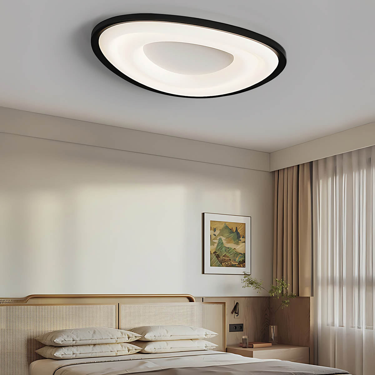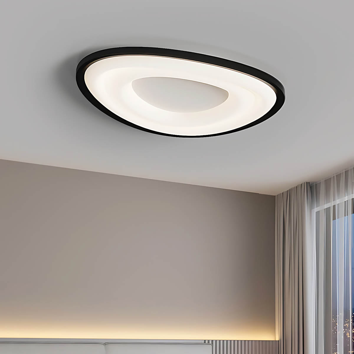 This energy-efficient flush mount LED lamp is the ultimate modern home lighting solution, offering both eye-catching design and versatile, practical function for your living room, bedroom, or dining area.