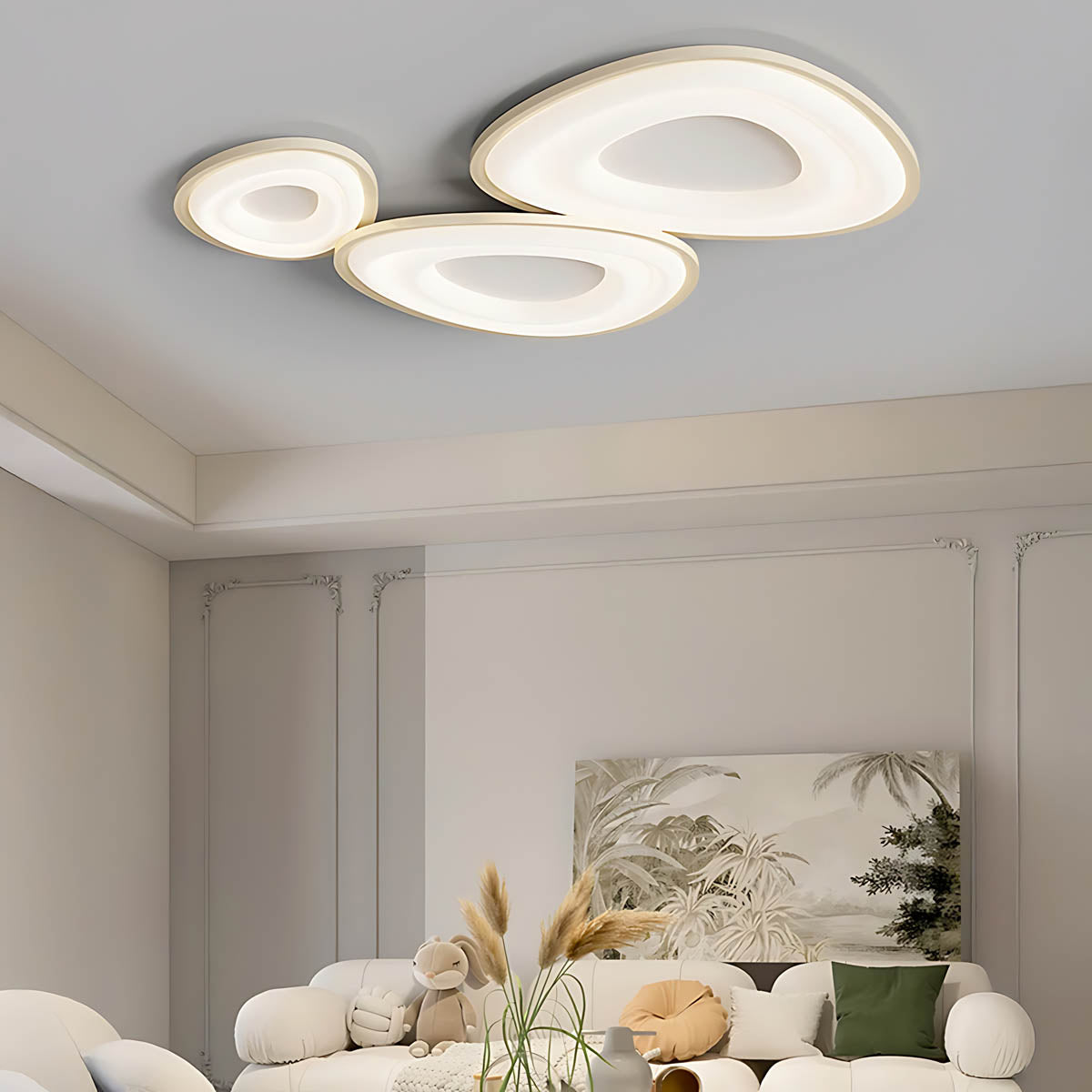 Experience the perfect blend of modern sculpture and intelligent lighting with the BOISE Ceiling Light. Crafted from durable iron with soft acrylic diffusers, its stunning, asymmetrical, pebble-like design—available in chic black or minimalist white—transforms your ceiling into a unique, artistic statement.