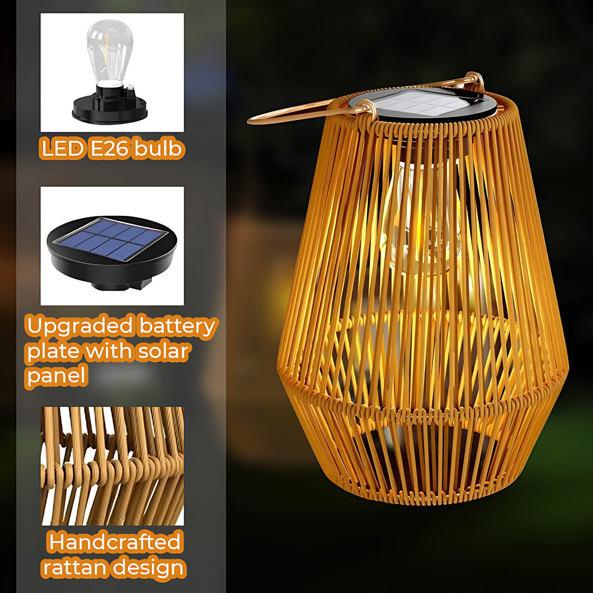Built for the elements with IP65 weatherproof protection, BOURKE is perfect for gardens, balconies, porches, and poolside lounges. Lightweight, portable, and effortlessly stylish, this solar rattan outdoor lamp blends natural texture with modern performance to elevate every evening outdoors.