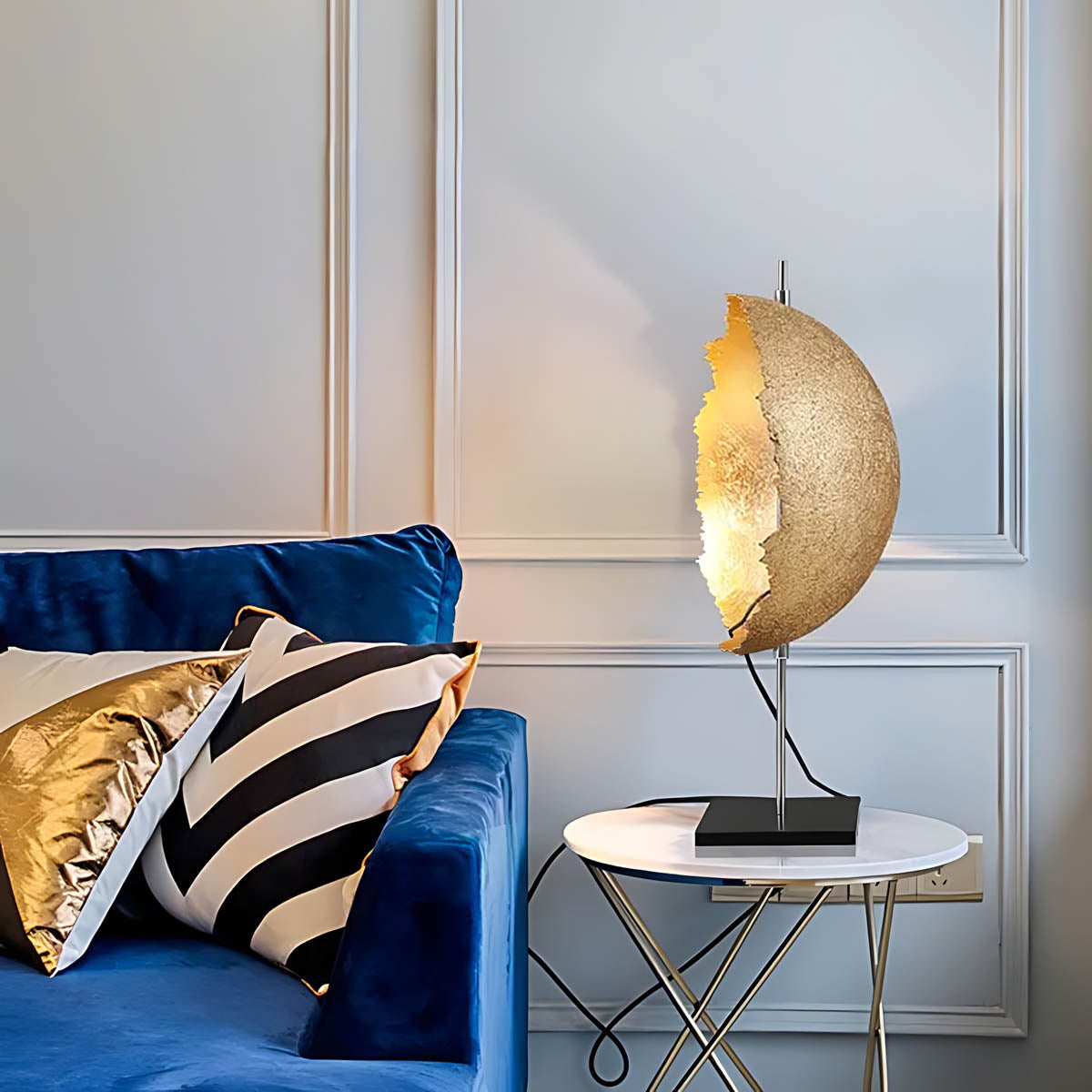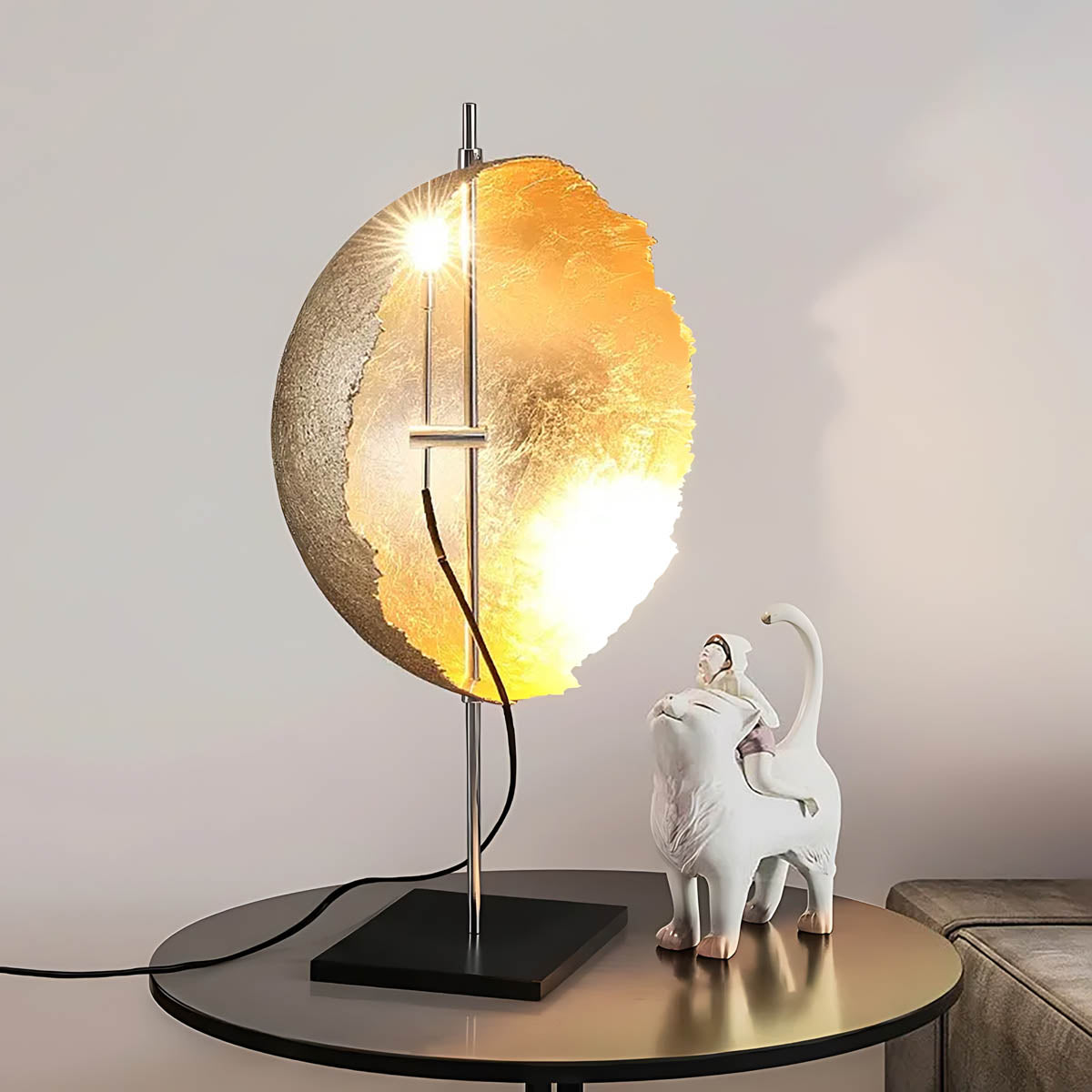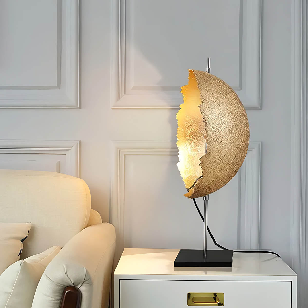 The DANIIL Table Lamp is a striking blend of artistry and functionality, crafted from high-quality iron with a sculptural, half-moon inspired design that casts a warm, golden glow.
