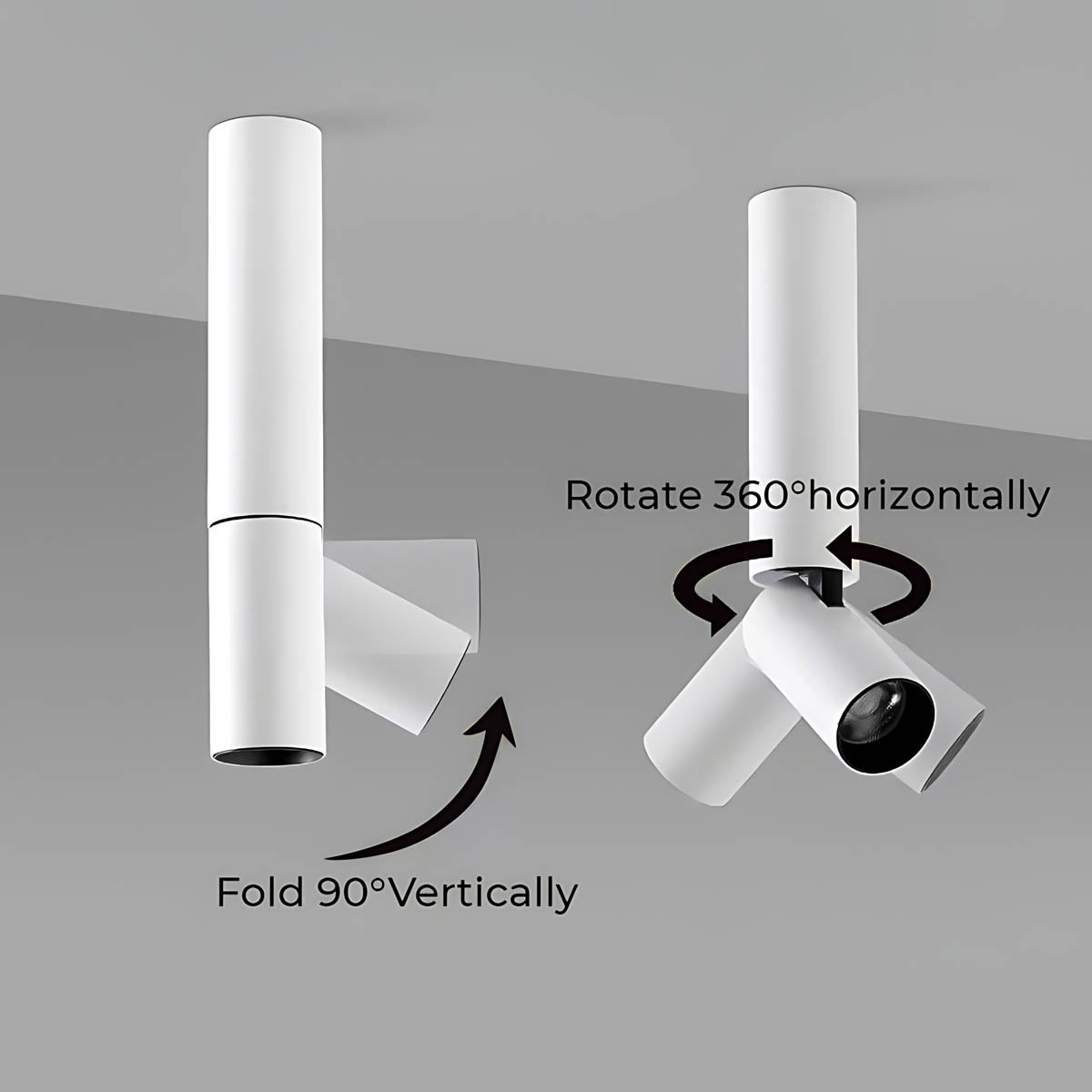 The adjustable head folds 90° vertically and rotates 360° horizontally, giving you full directional control while keeping a clean, minimalist ceiling line.
