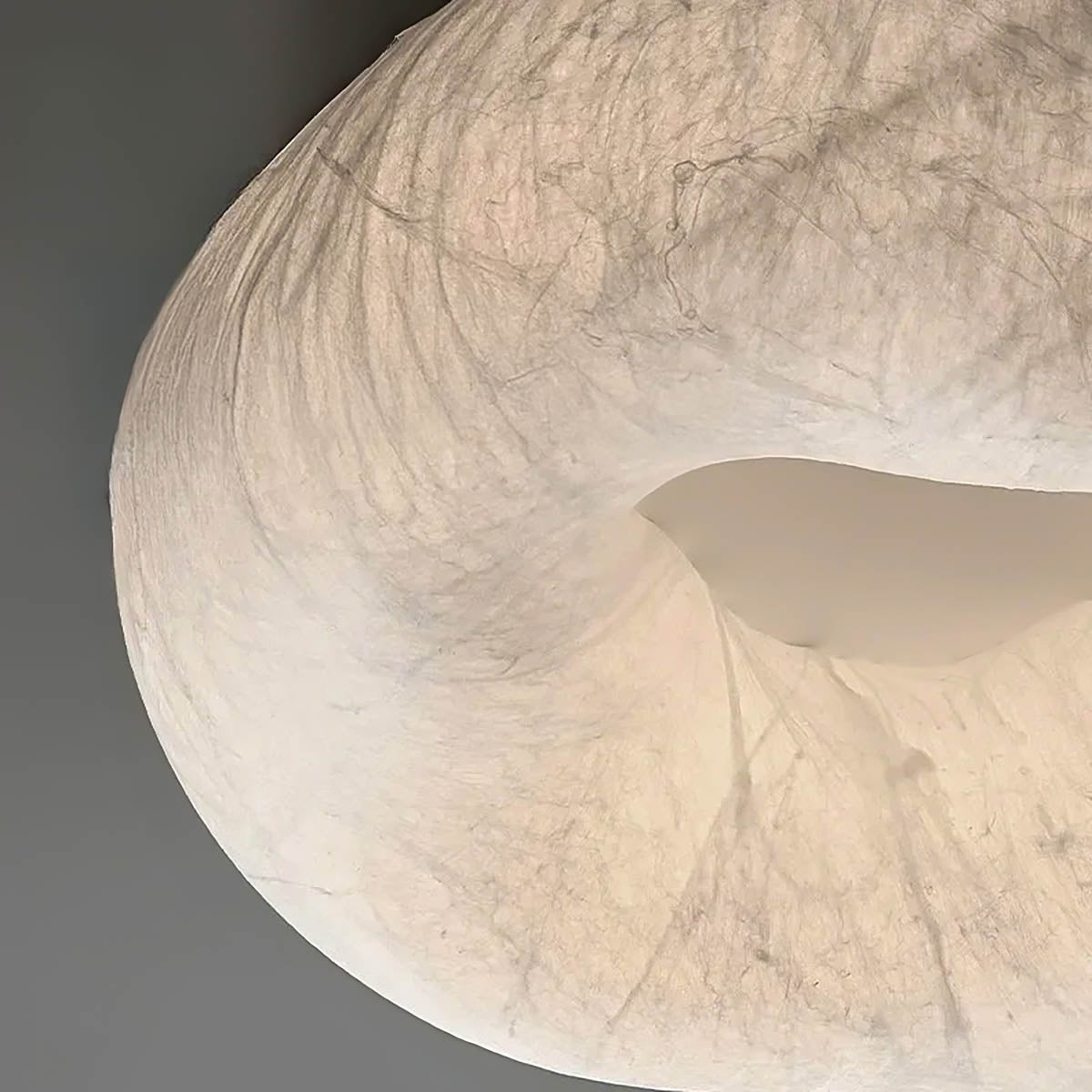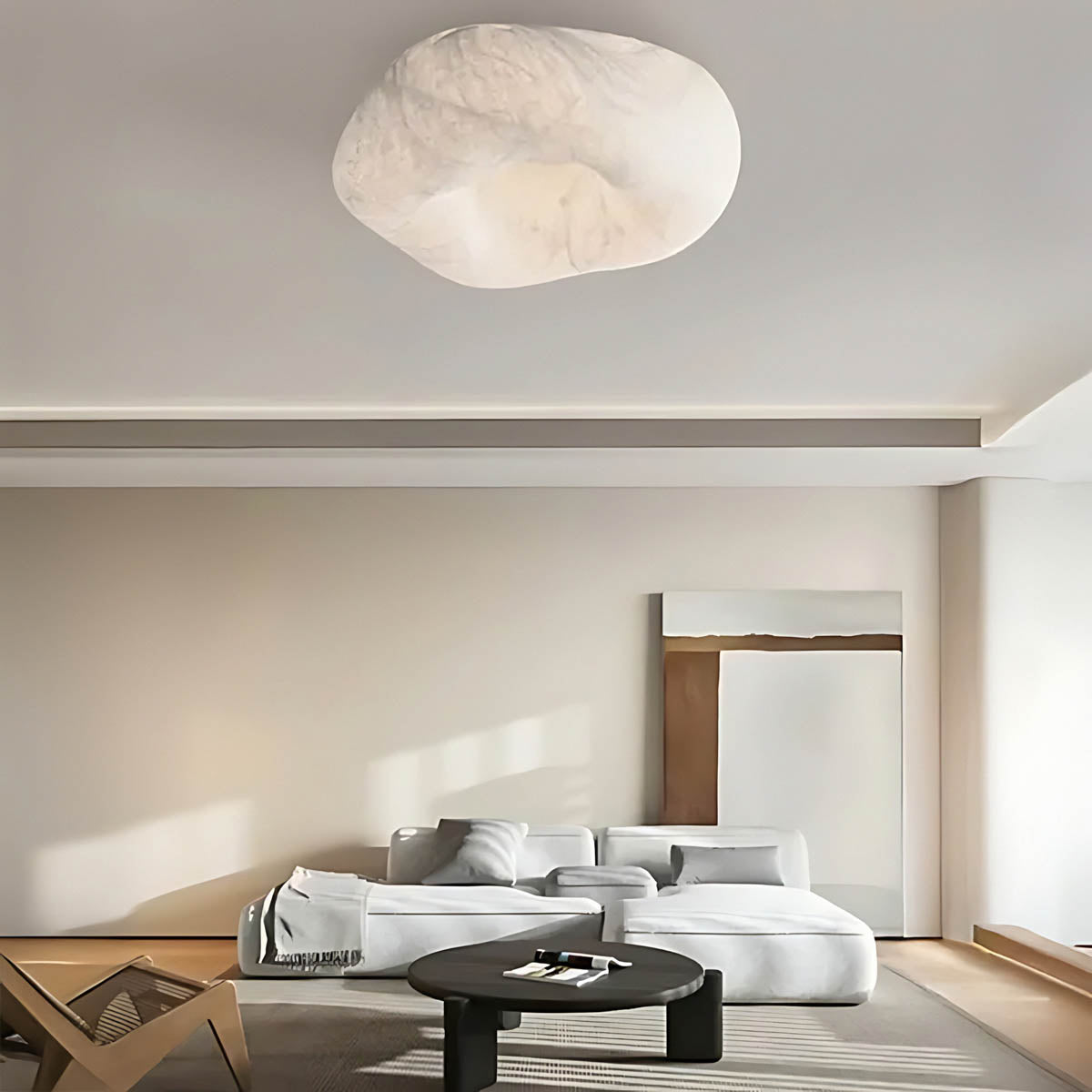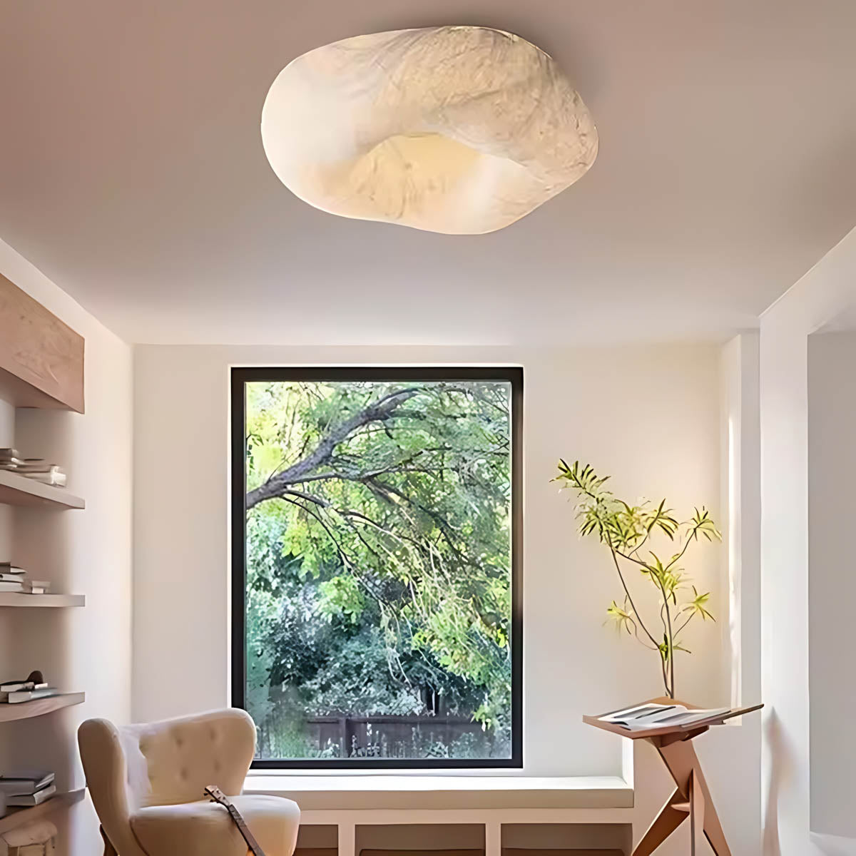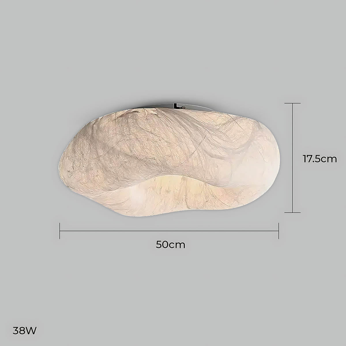 Reminiscent of a floating cloud or carved stone, its handcrafted, asymmetrical form diffuses light with a dreamy, ambient glow—perfect for bedrooms, living spaces, reading nooks, or serene entryways.