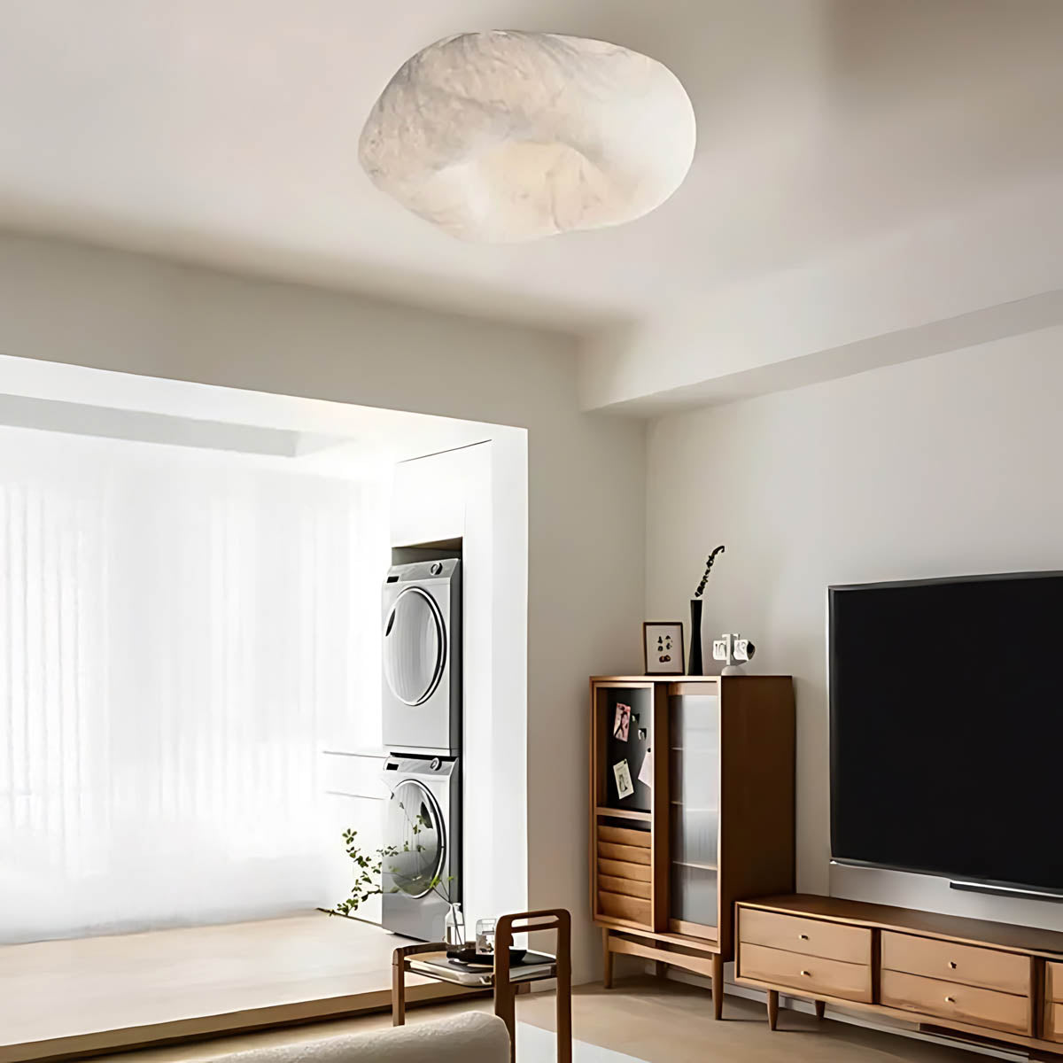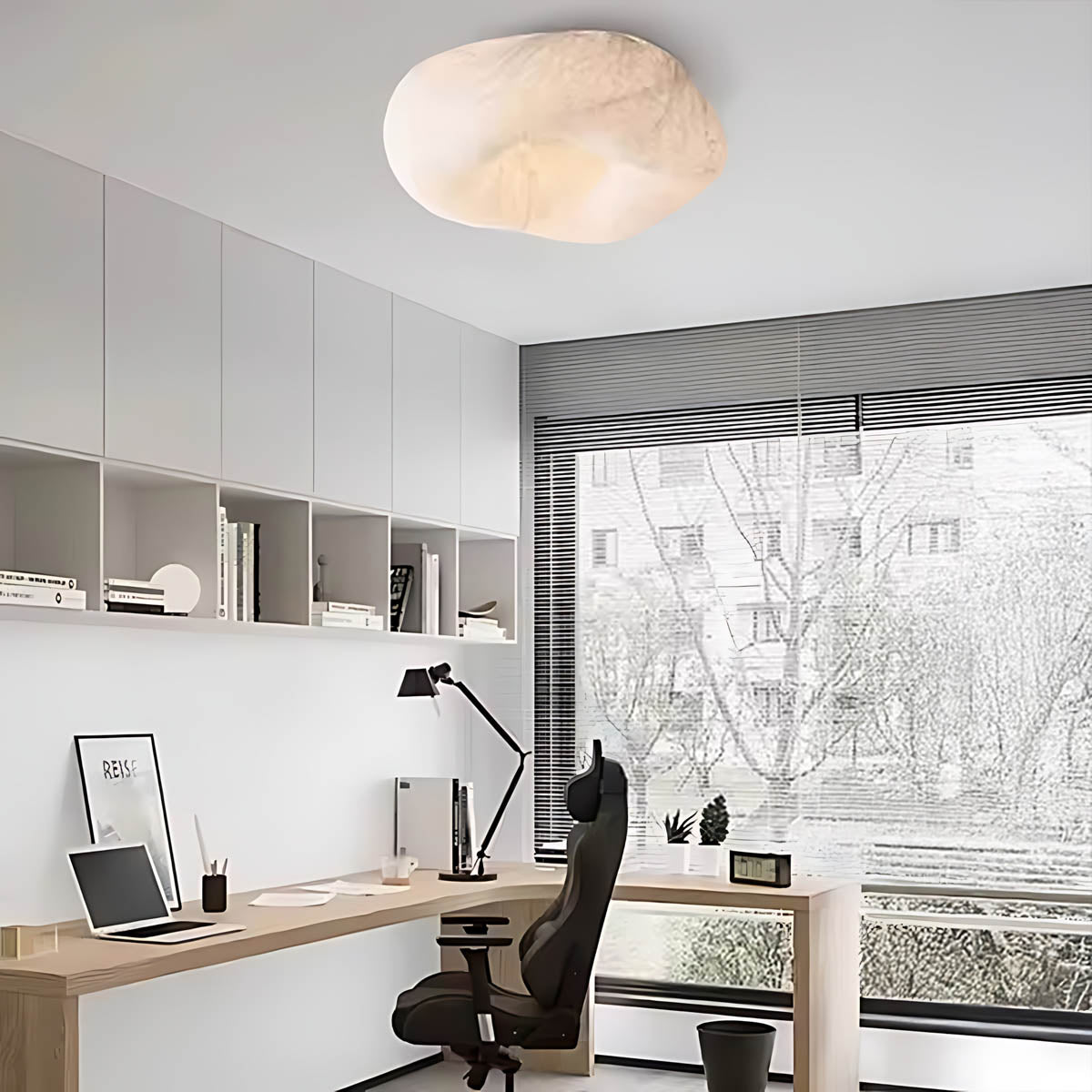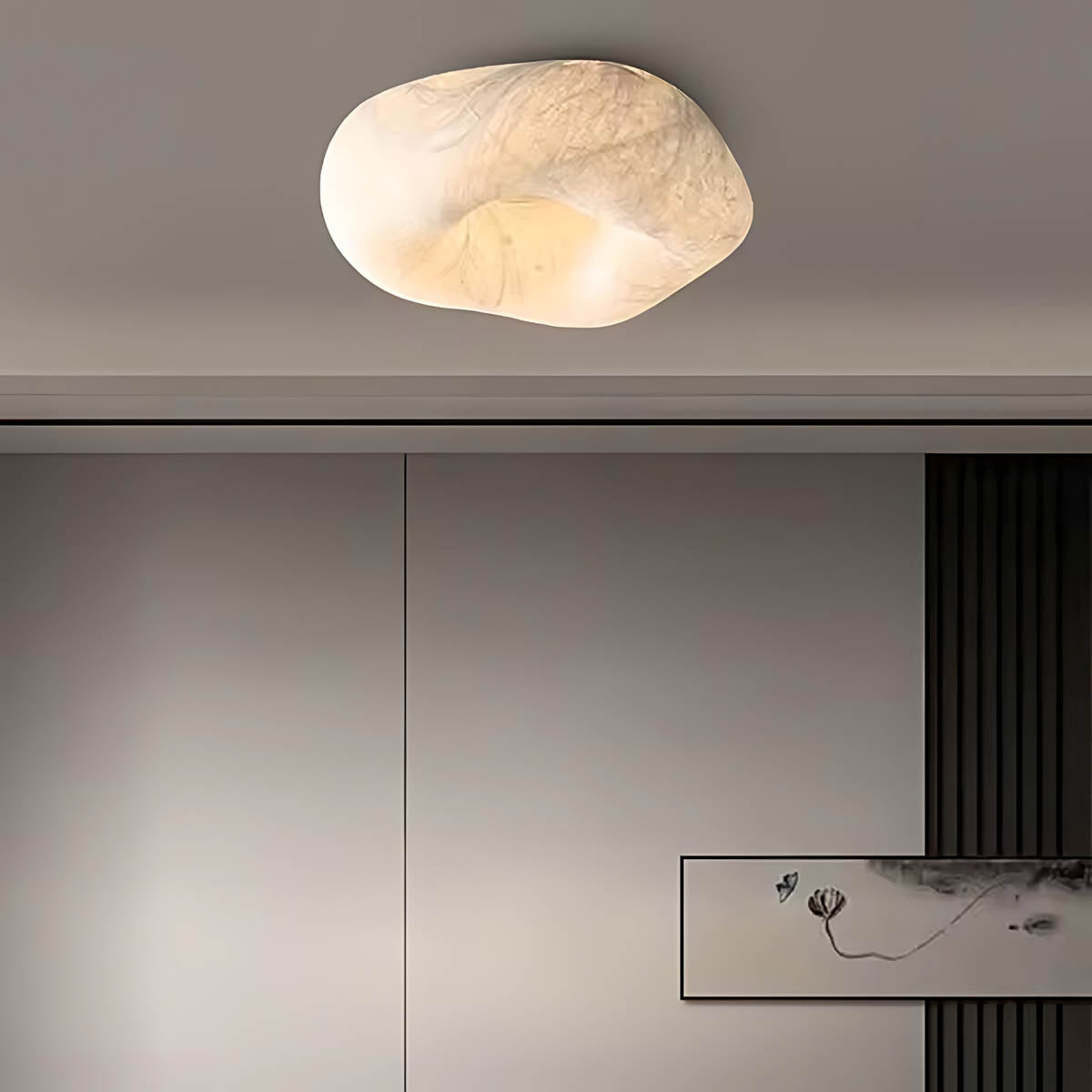 Reminiscent of a floating cloud or carved stone, its handcrafted, asymmetrical form diffuses light with a dreamy, ambient glow—perfect for bedrooms, living spaces, reading nooks, or serene entryways.