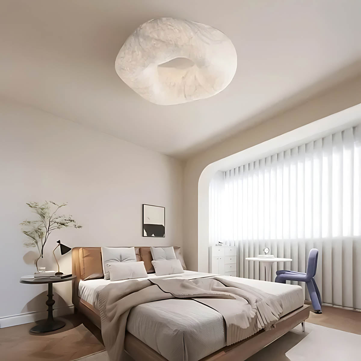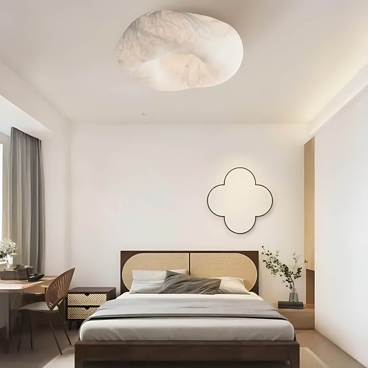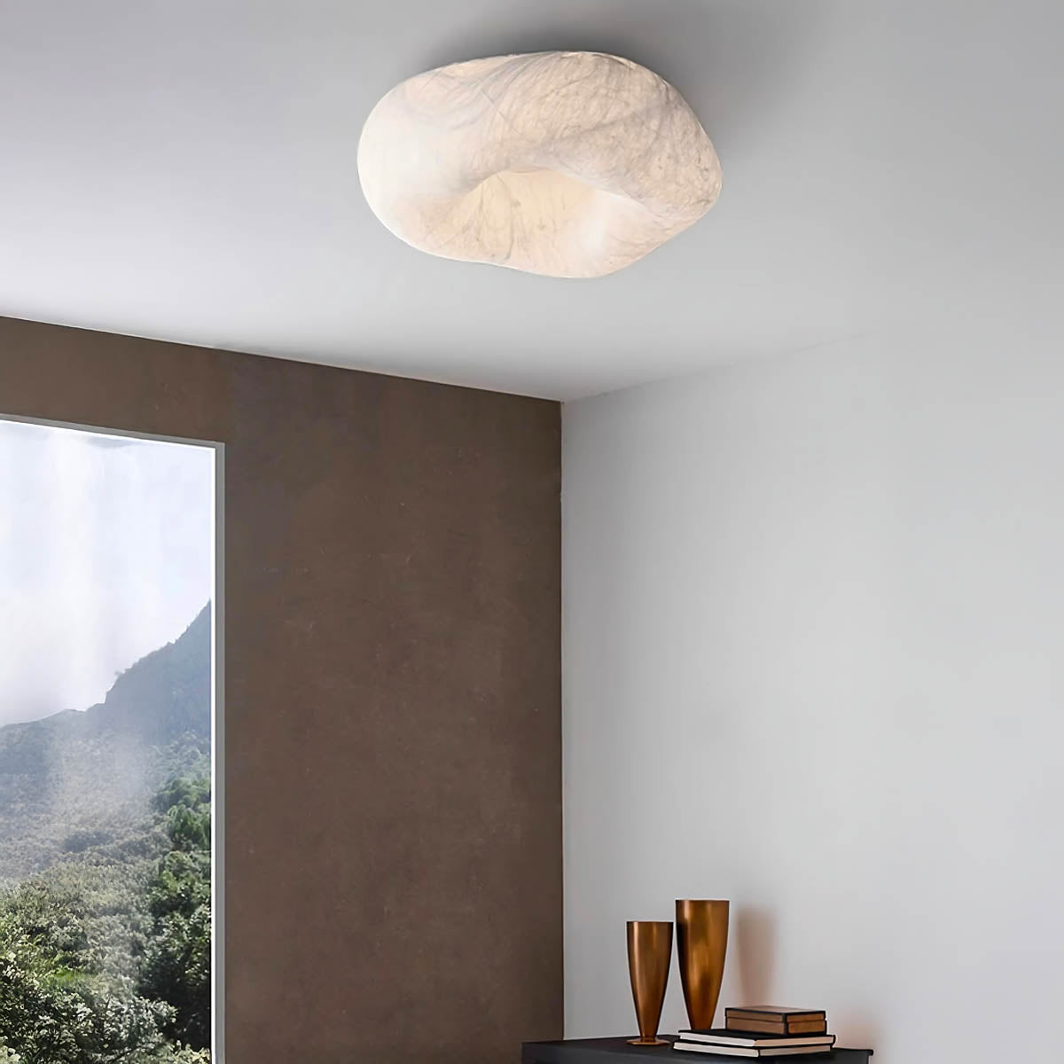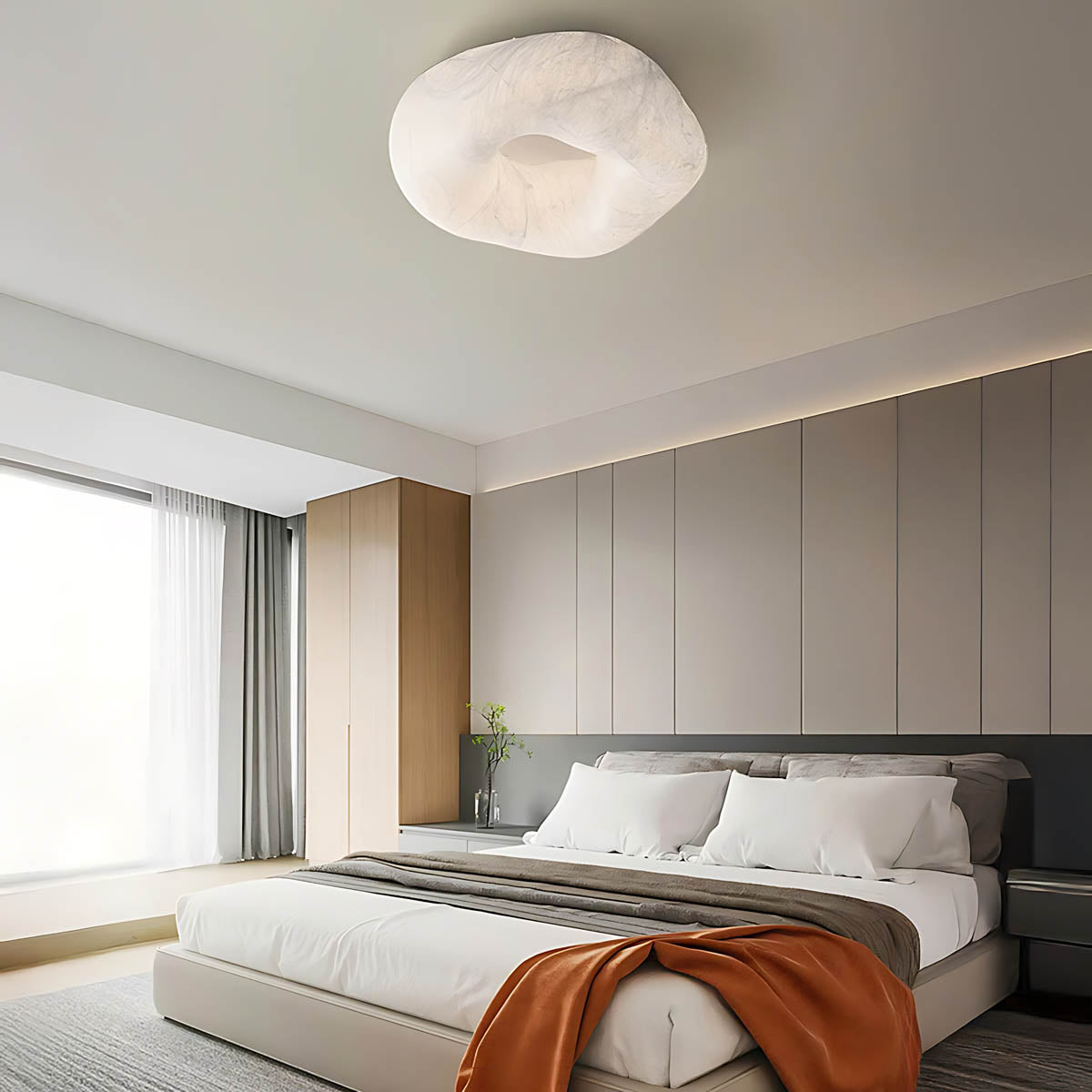 Reminiscent of a floating cloud or carved stone, its handcrafted, asymmetrical form diffuses light with a dreamy, ambient glow—perfect for bedrooms, living spaces, reading nooks, or serene entryways.