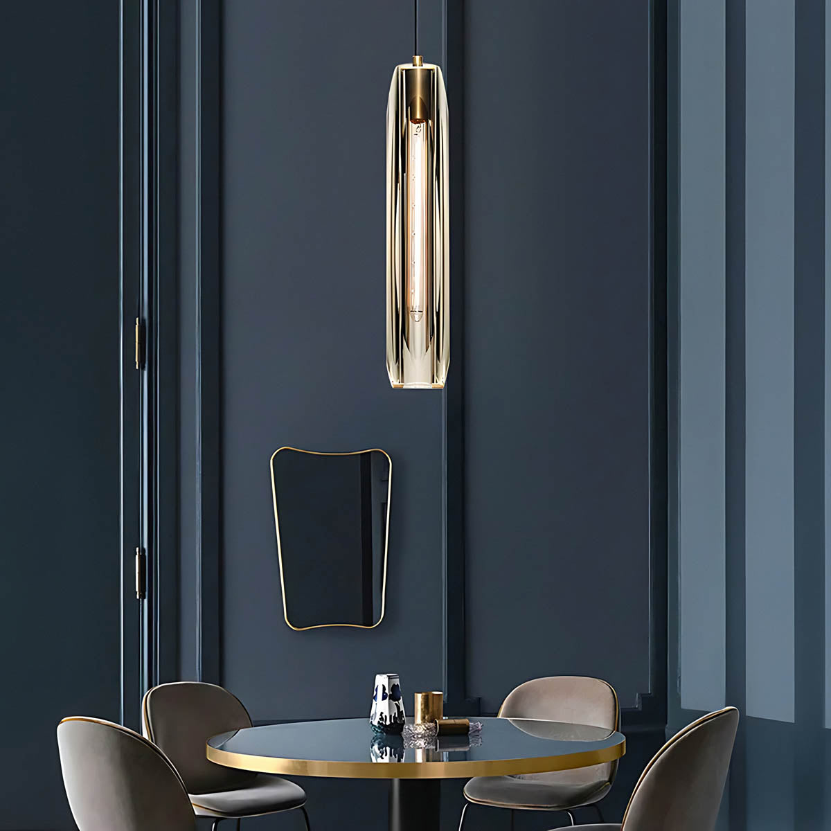 Make a sleek statement with FAELAN, a luxurious crystal and copper pendant light that pairs refined materials with modern minimalism.
