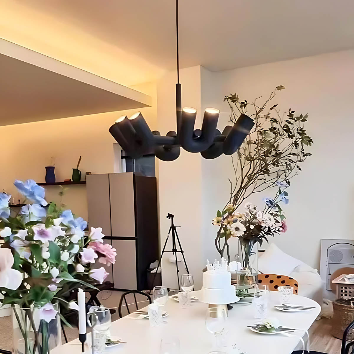 The unique, adjustable shades (as seen in the detail image) allow you to direct light exactly where you need it, blending style and versatility to create a truly personalized and eye-catching lighting solution.