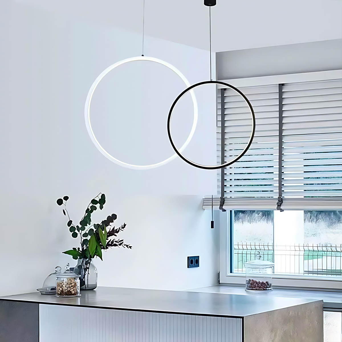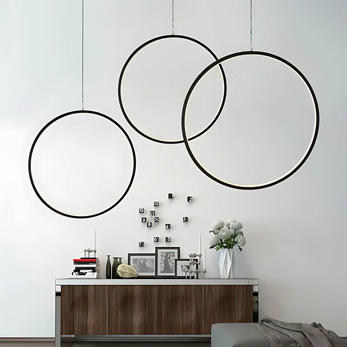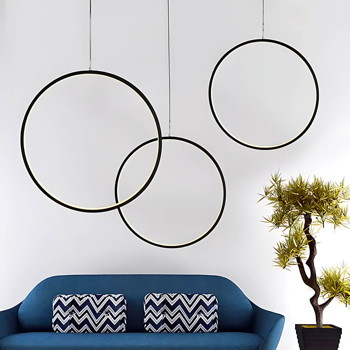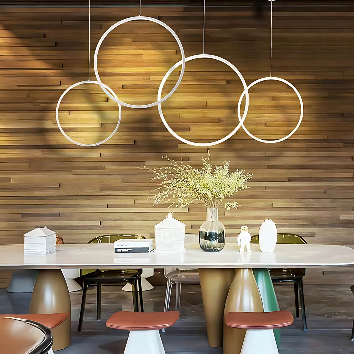 Available in three stunning finishes—classic black, timeless gold, and clean white—you can choose a single ring for a subtle contemporary touch or create a striking multi-ring configuration for dramatic visual impact.