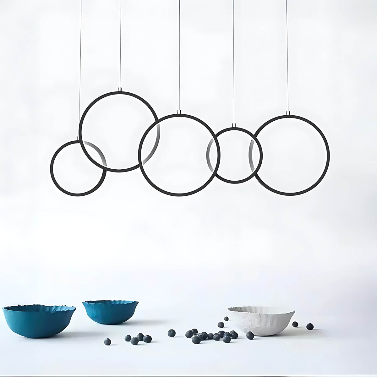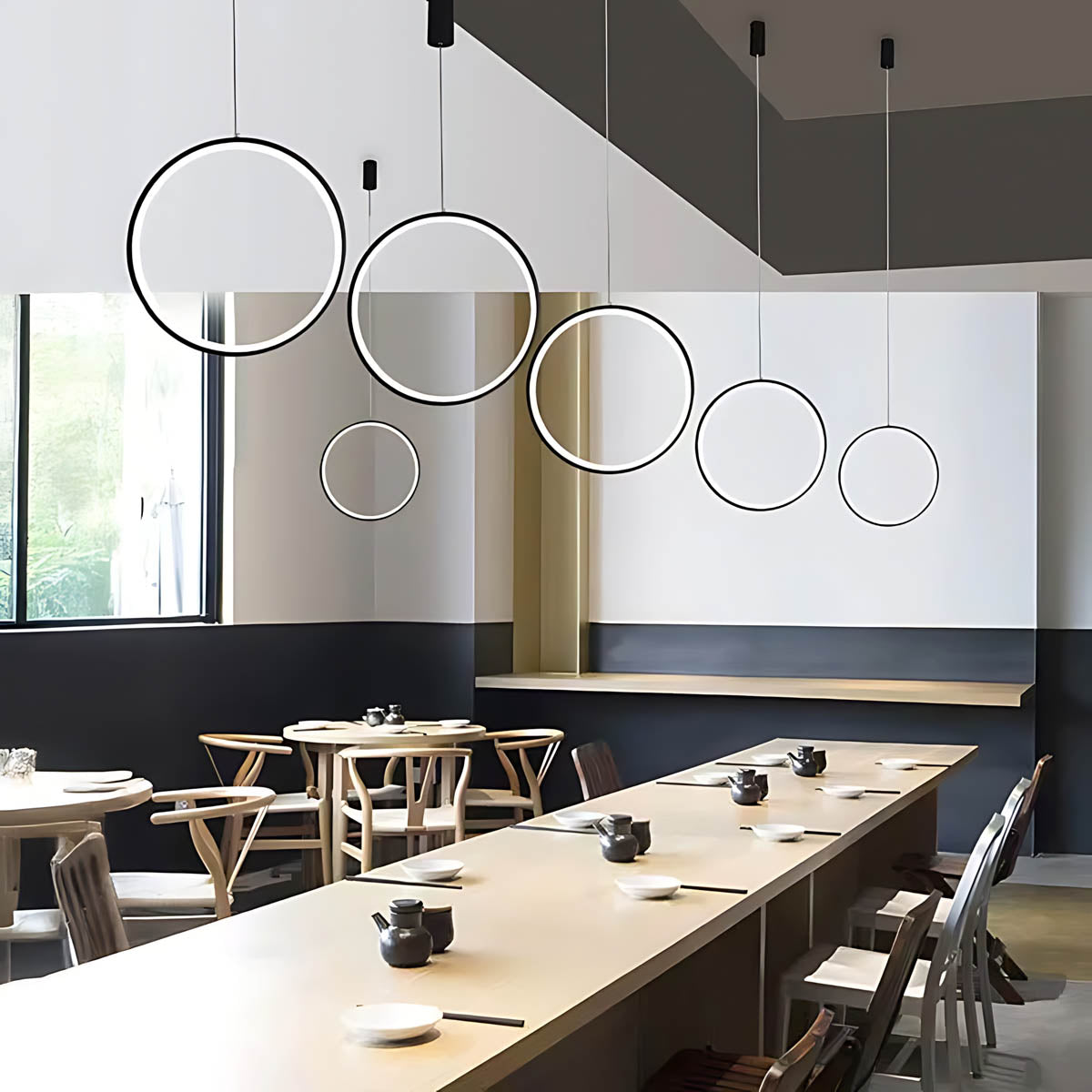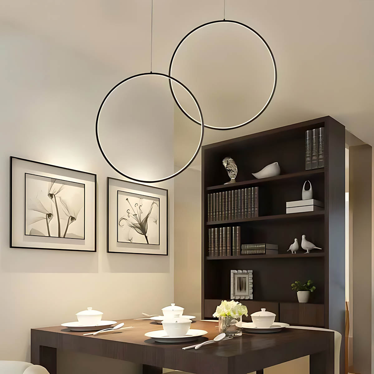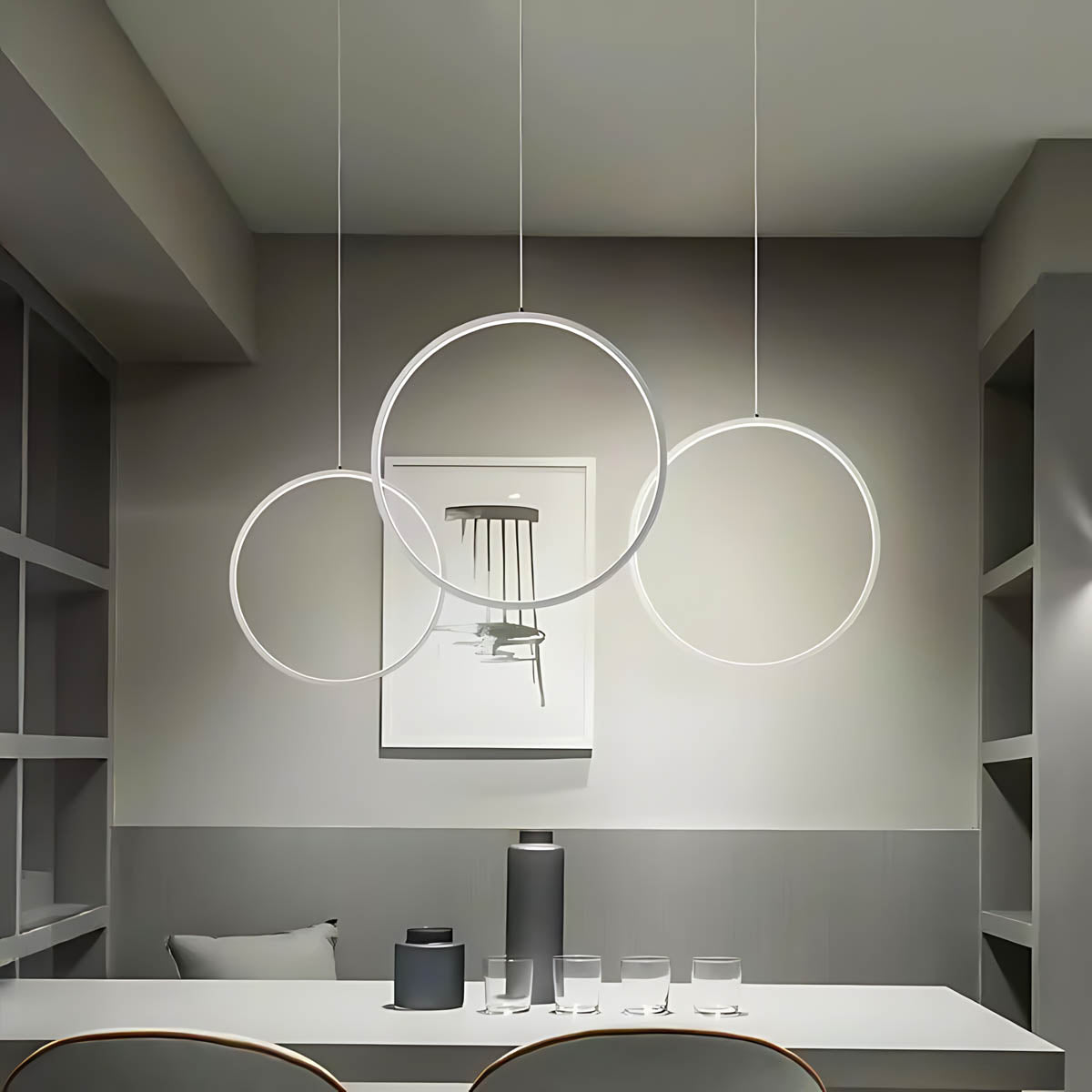 Available in three stunning finishes—classic black, timeless gold, and clean white—you can choose a single ring for a subtle contemporary touch or create a striking multi-ring configuration for dramatic visual impact.