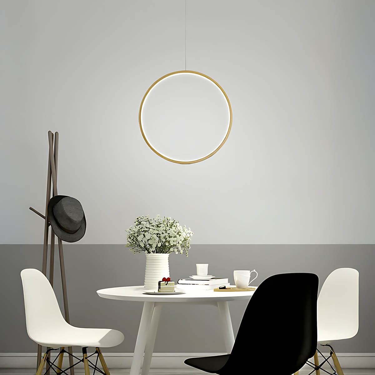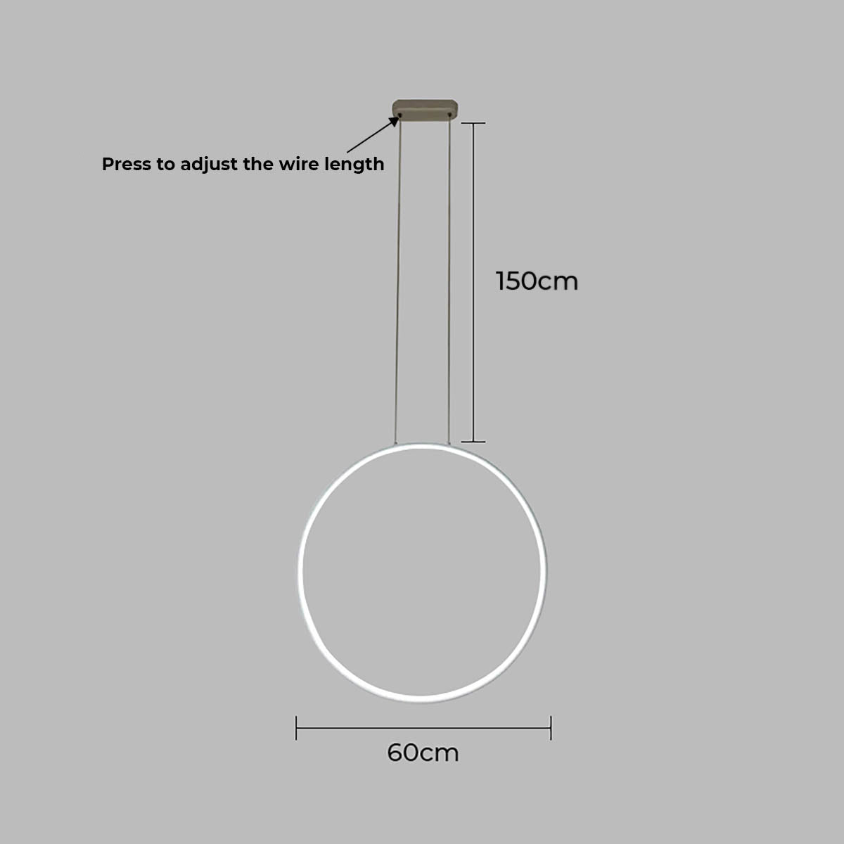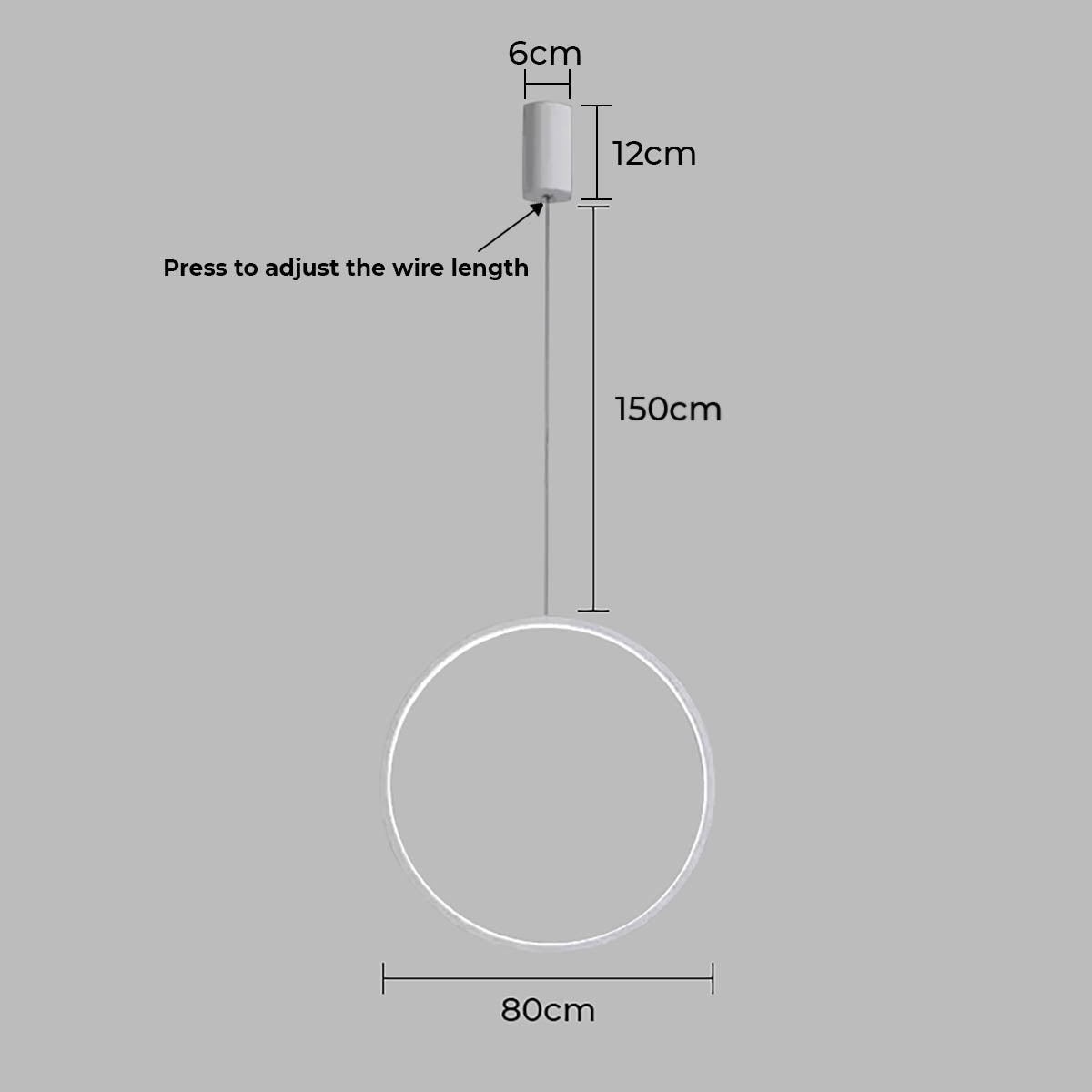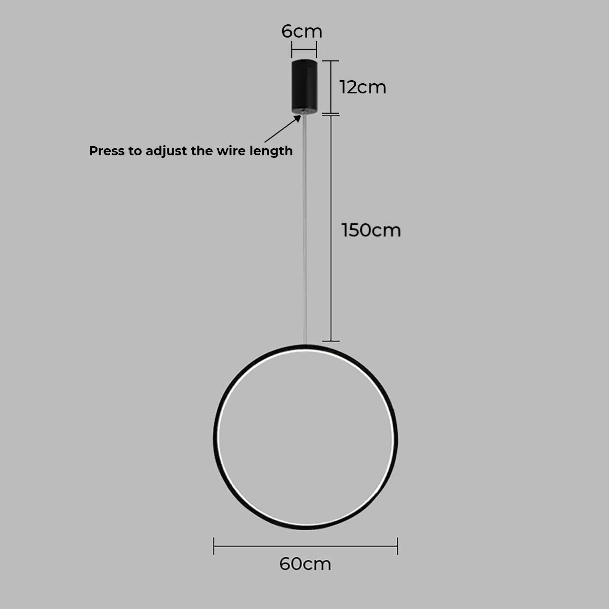 Featuring a slim circular LED ring suspended from an adjustable 150 cm wire with a secure locking buckle, this pendant light combines functionality with elegance, allowing you to customize the height to suit dining areas, living rooms, or workspaces.