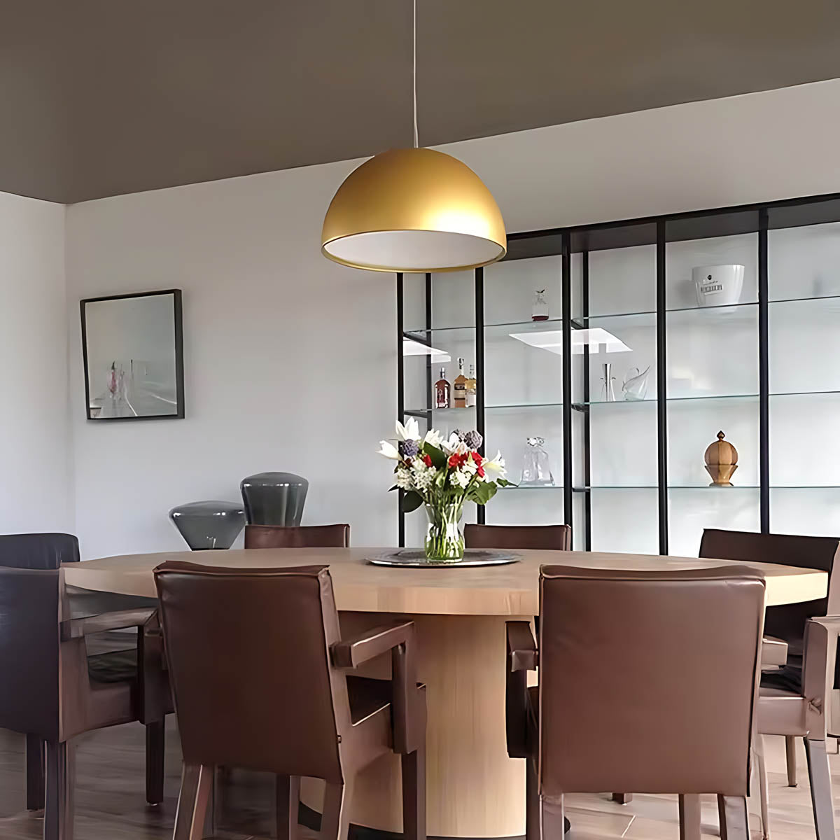 Crafted from durable, lightweight resin, HORTENSE hangs effortlessly over dining tables, kitchen islands, and entryways, delivering broad, even illumination while adding sculptural presence.