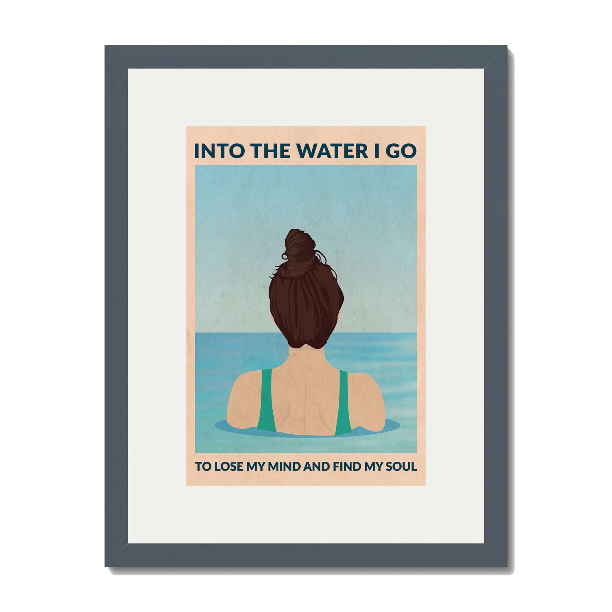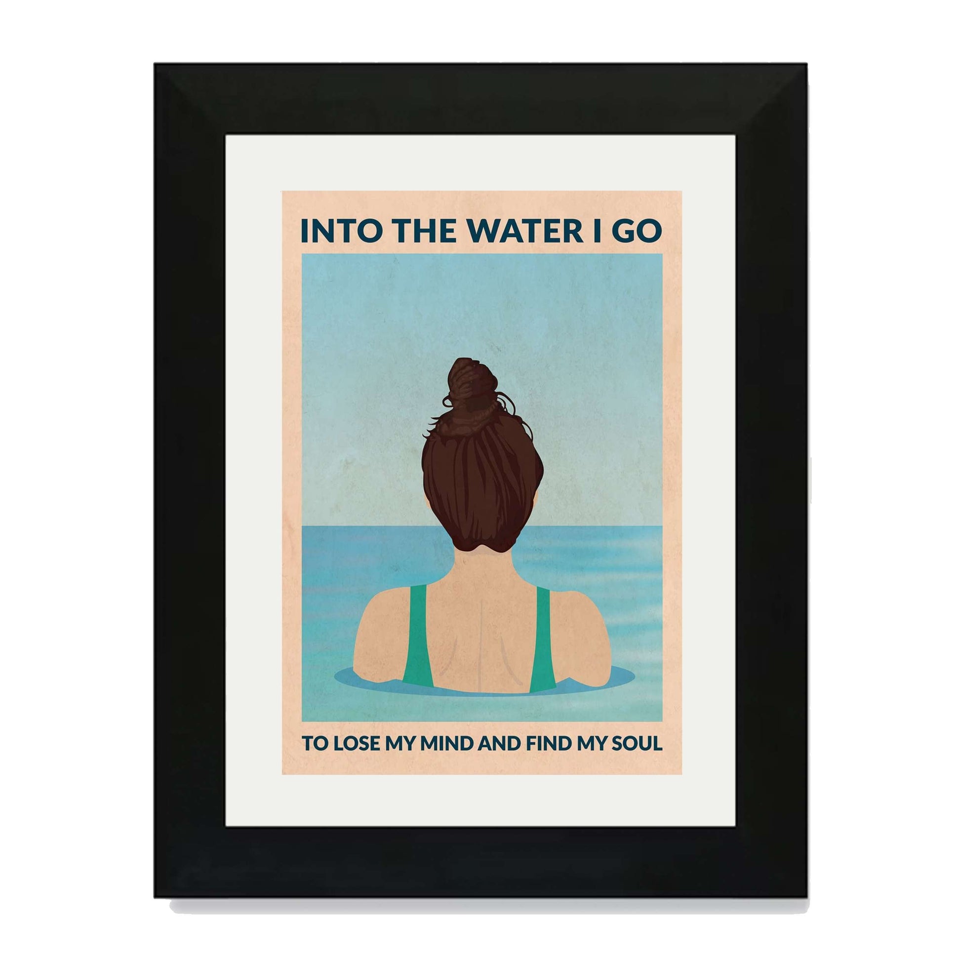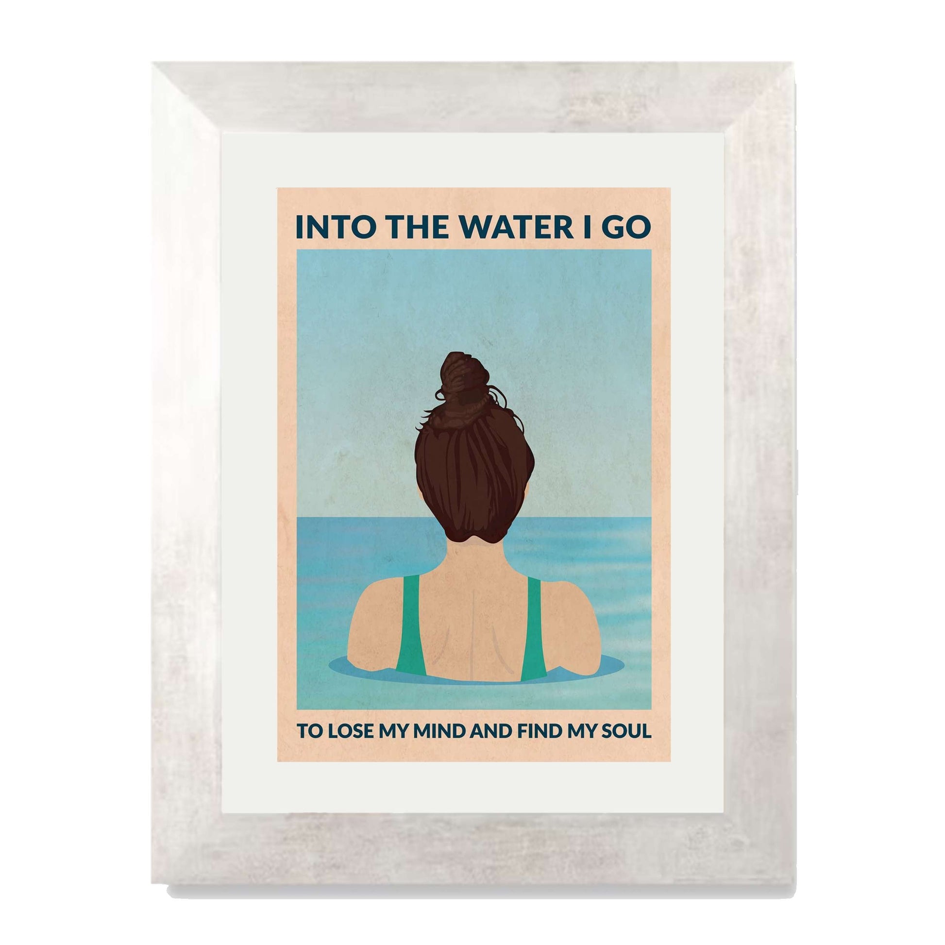 Framed with the quote: “Into the Water I Go / To Lose My Mind and Find My Soul”