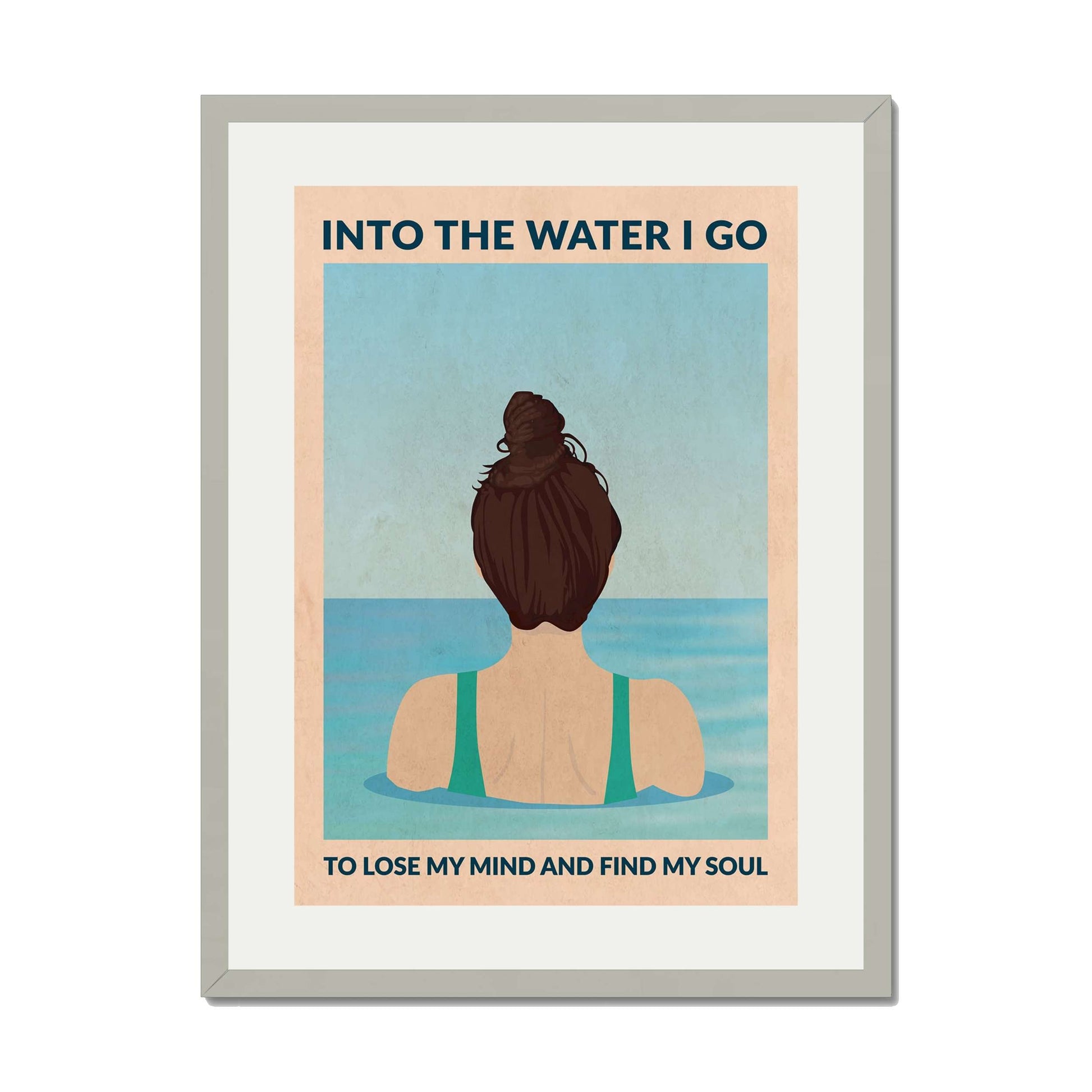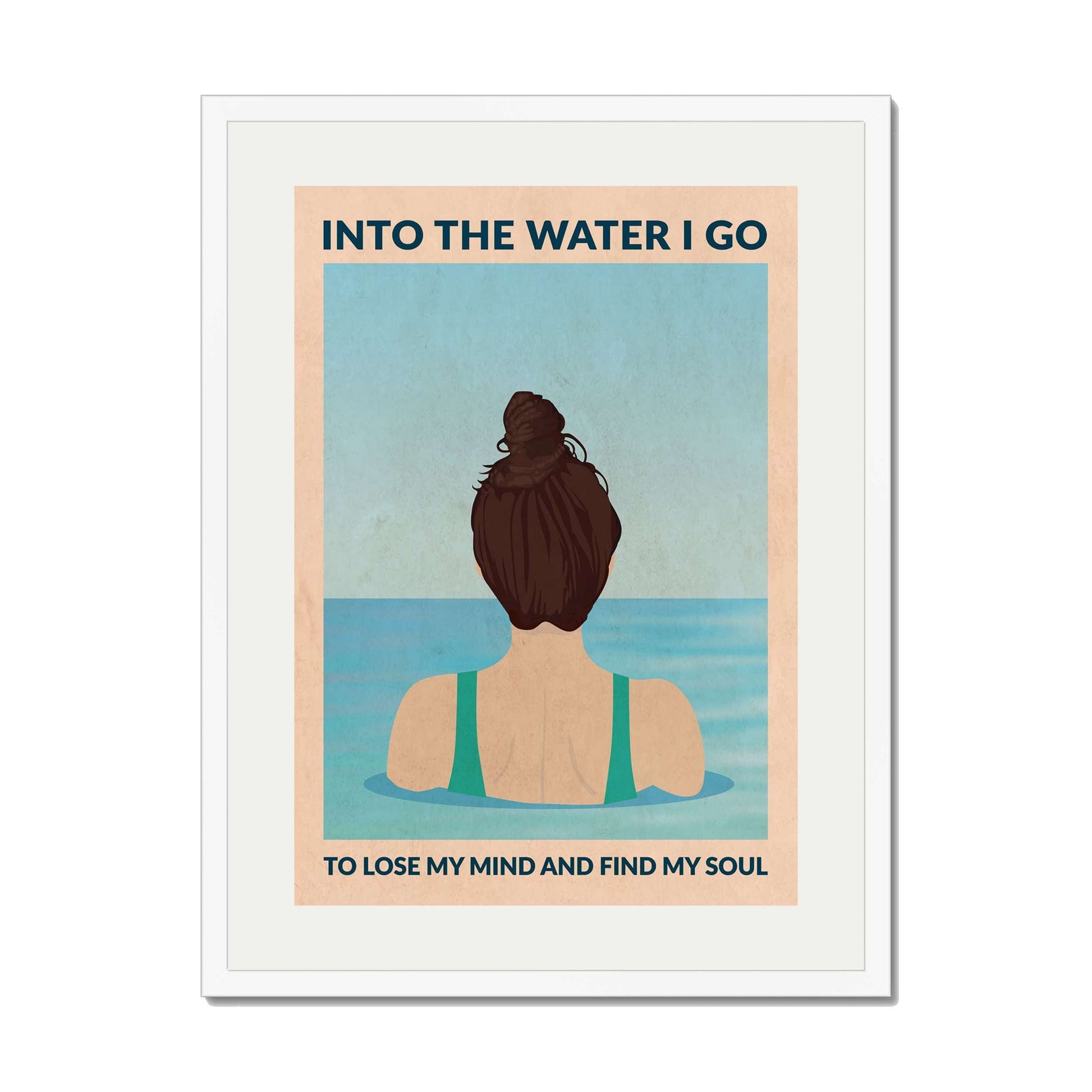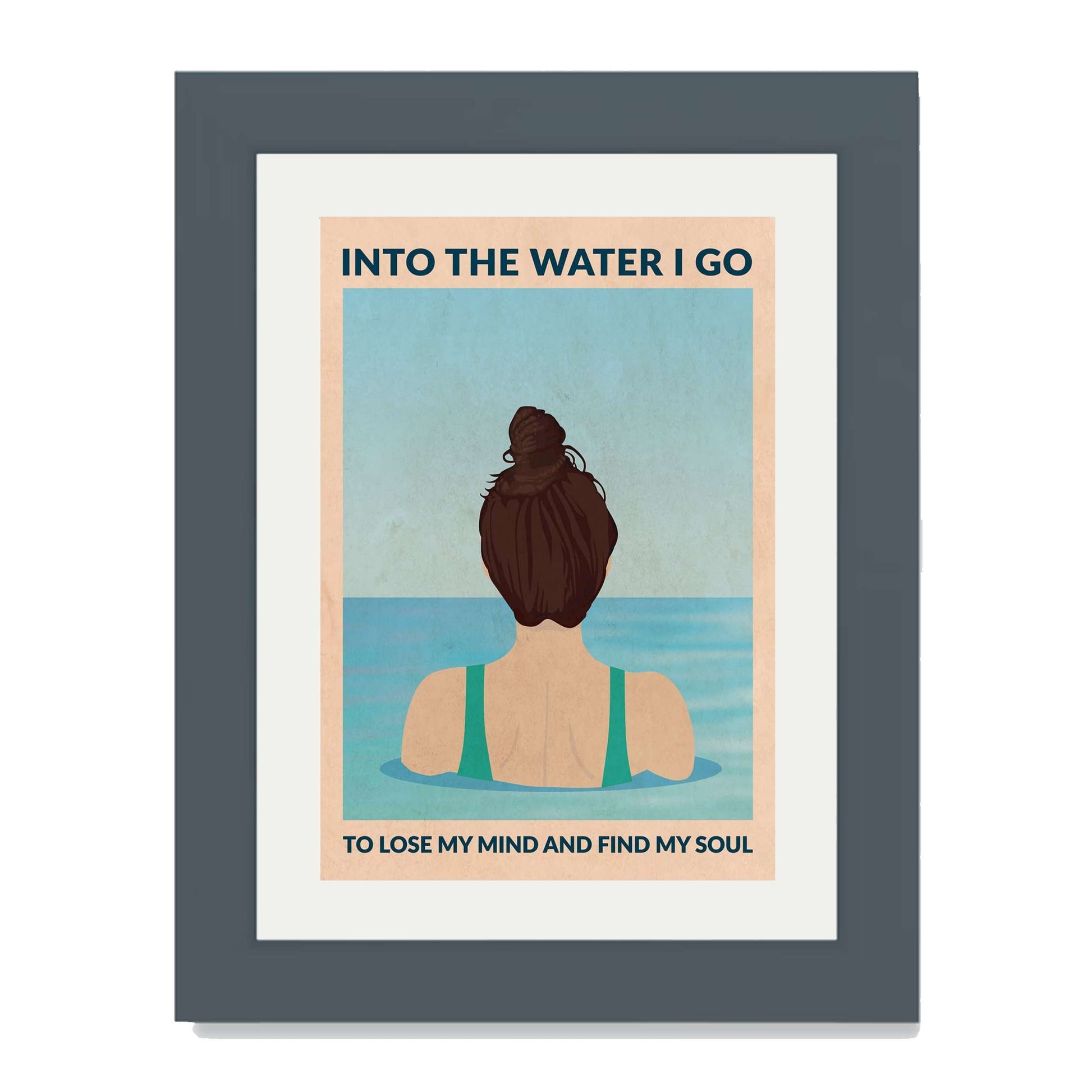 Framed with the quote: “Into the Water I Go / To Lose My Mind and Find My Soul”