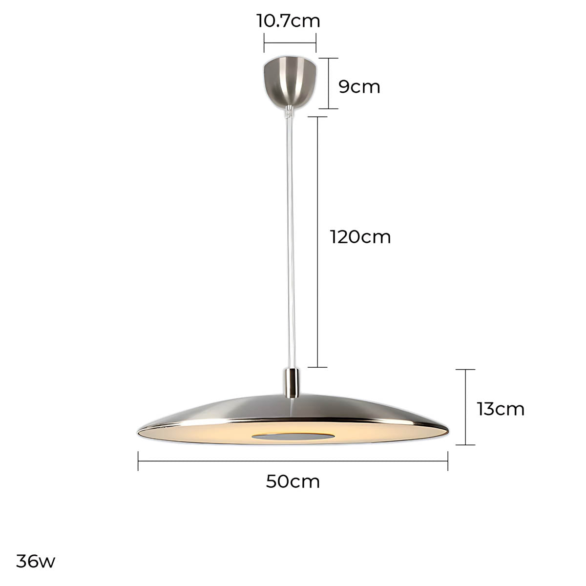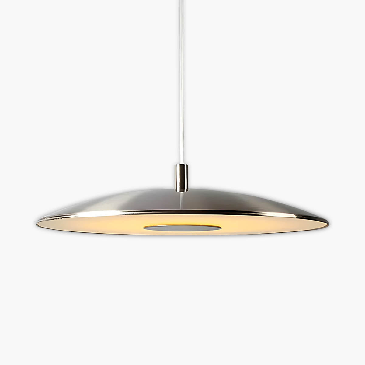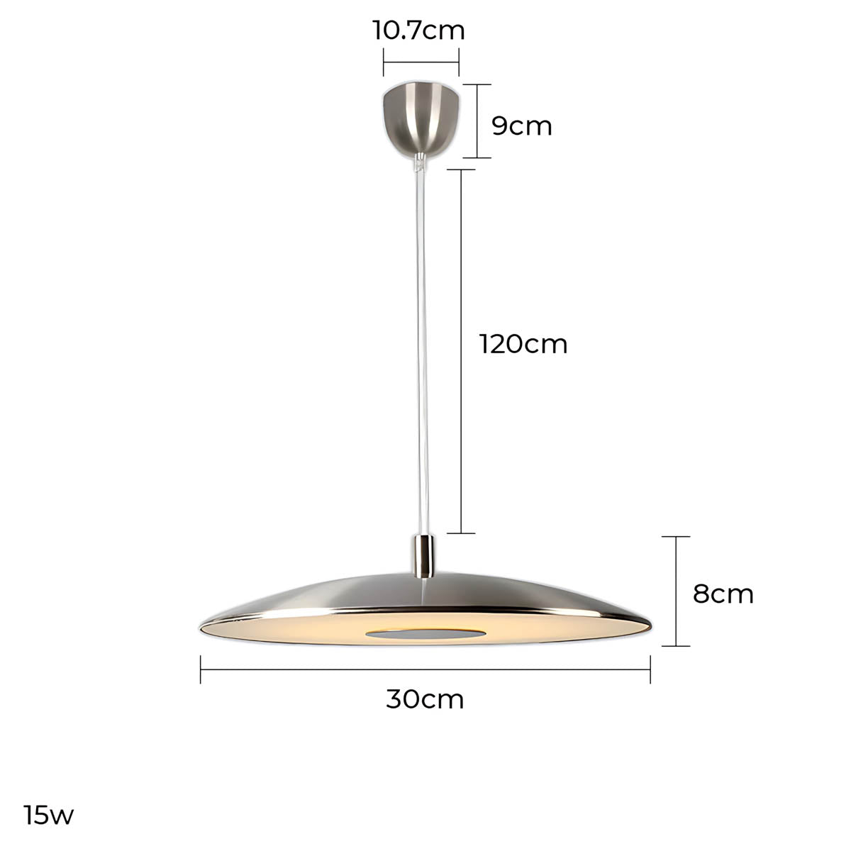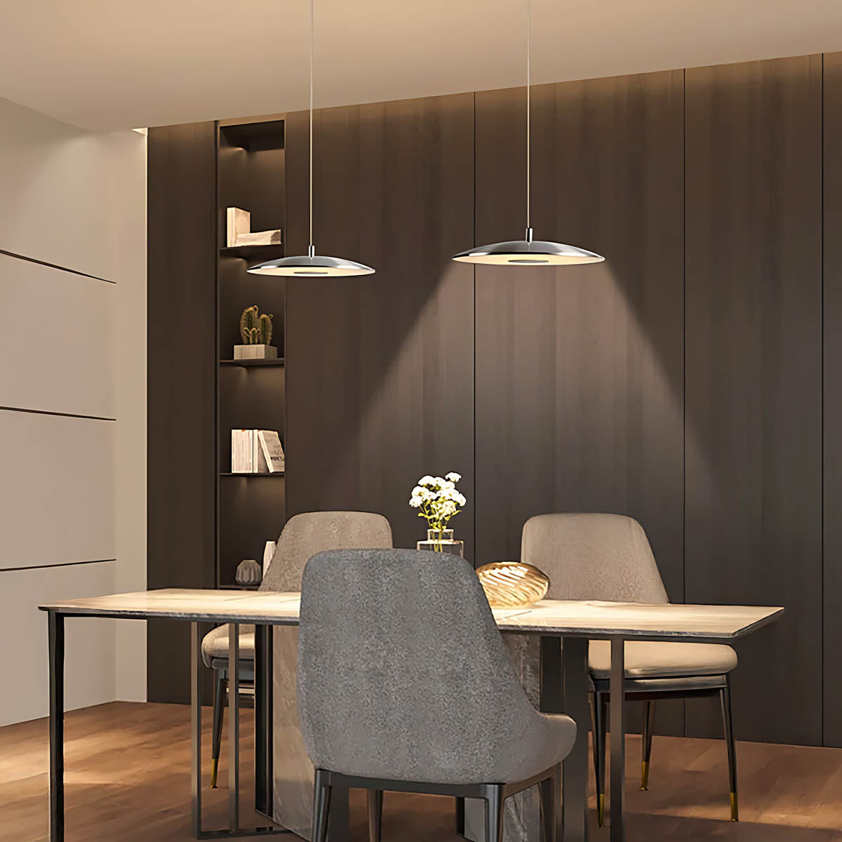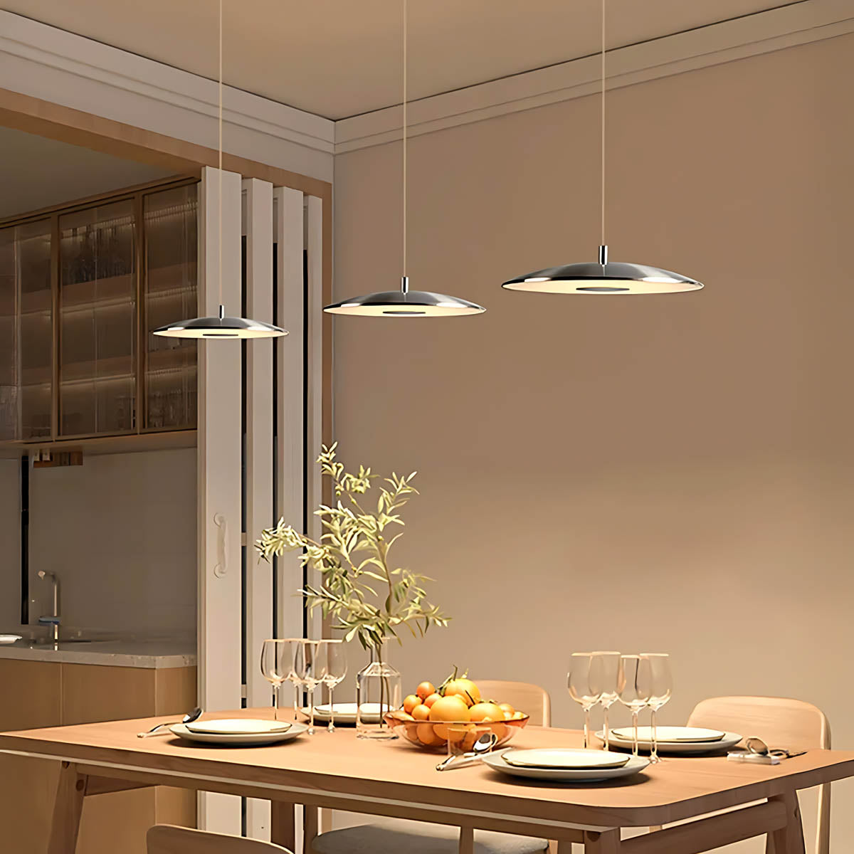 Available in polished chrome or sleek white and offered in three versatile sizes, this pendant lamp enhances dining rooms, kitchens, or lounges with its minimalist disc-shaped design.
