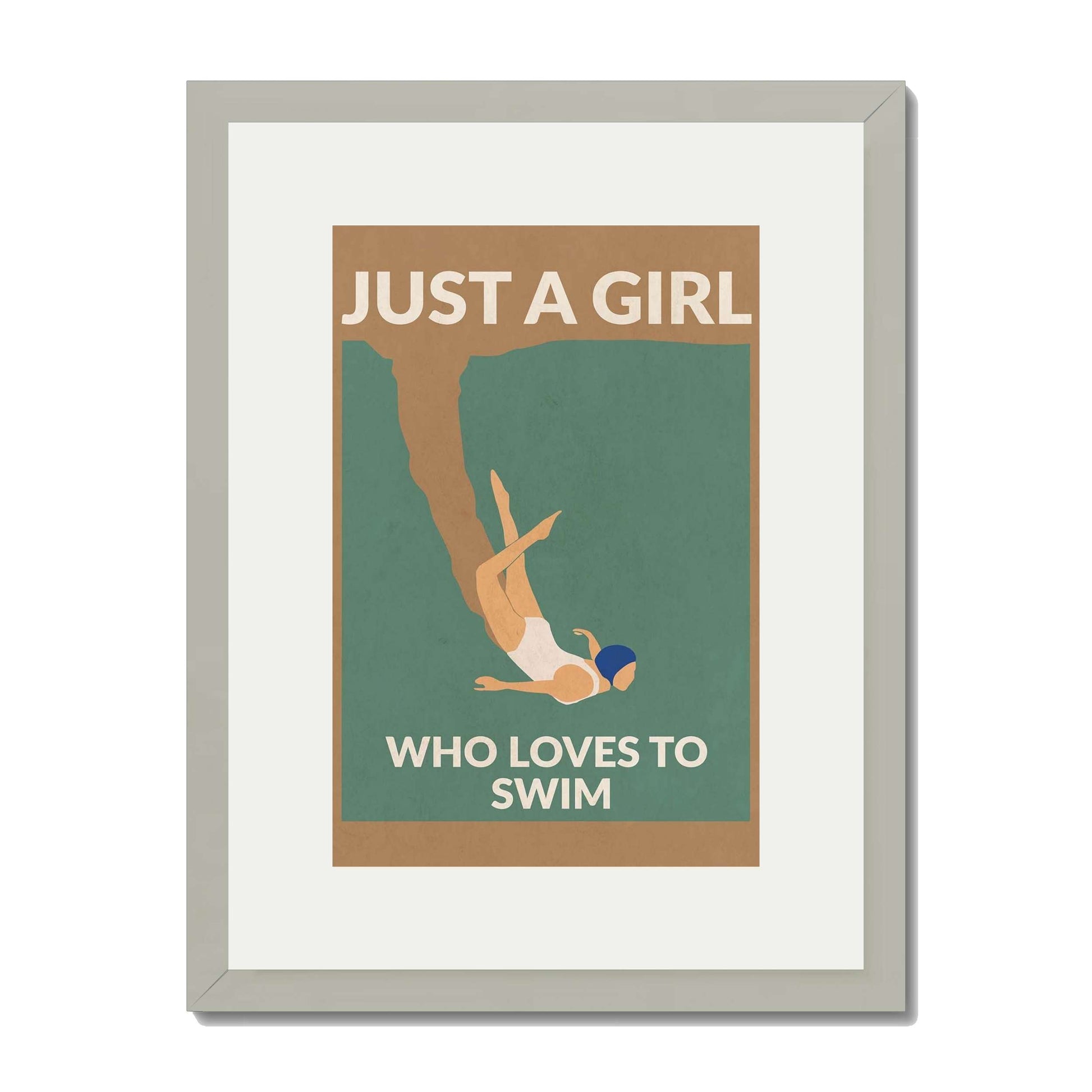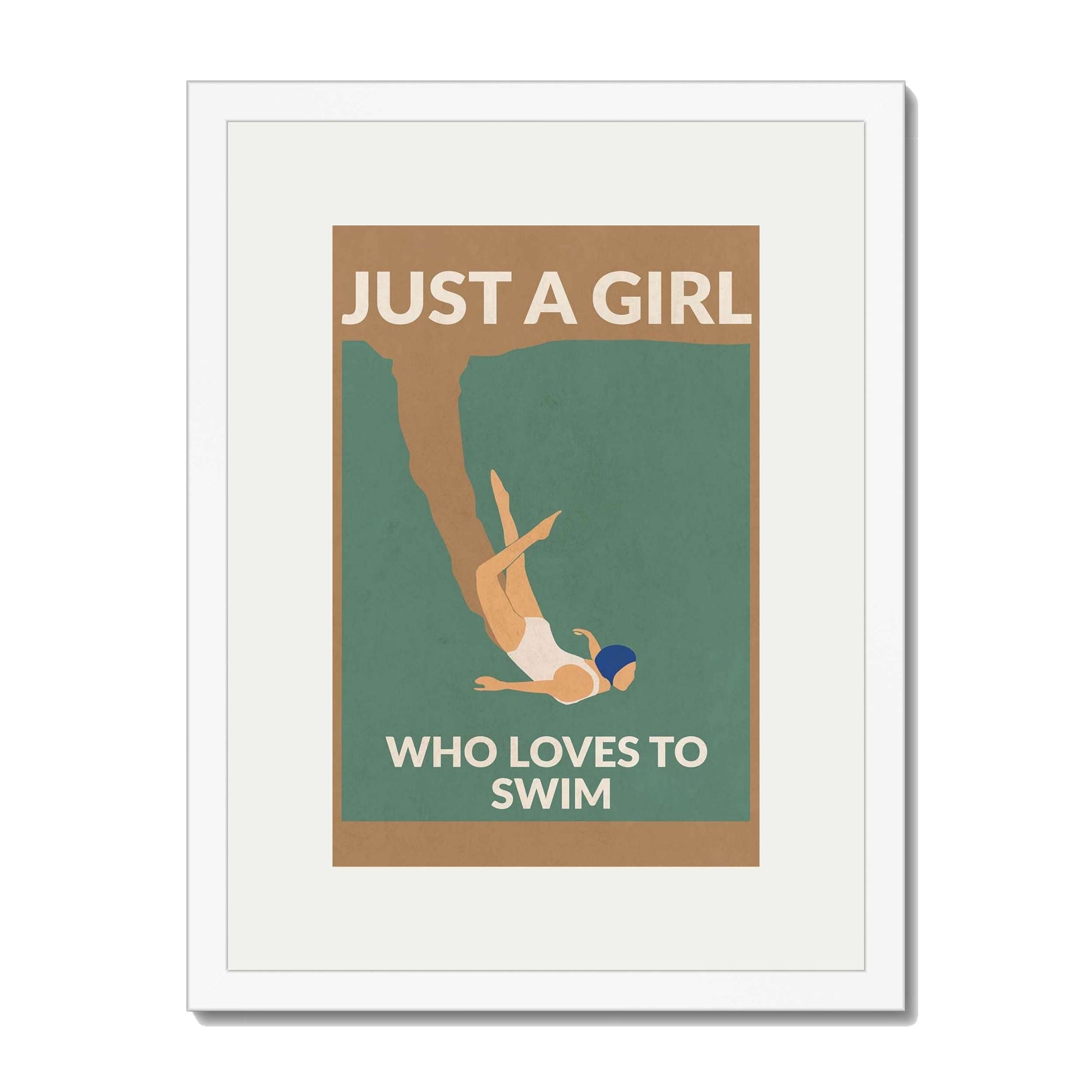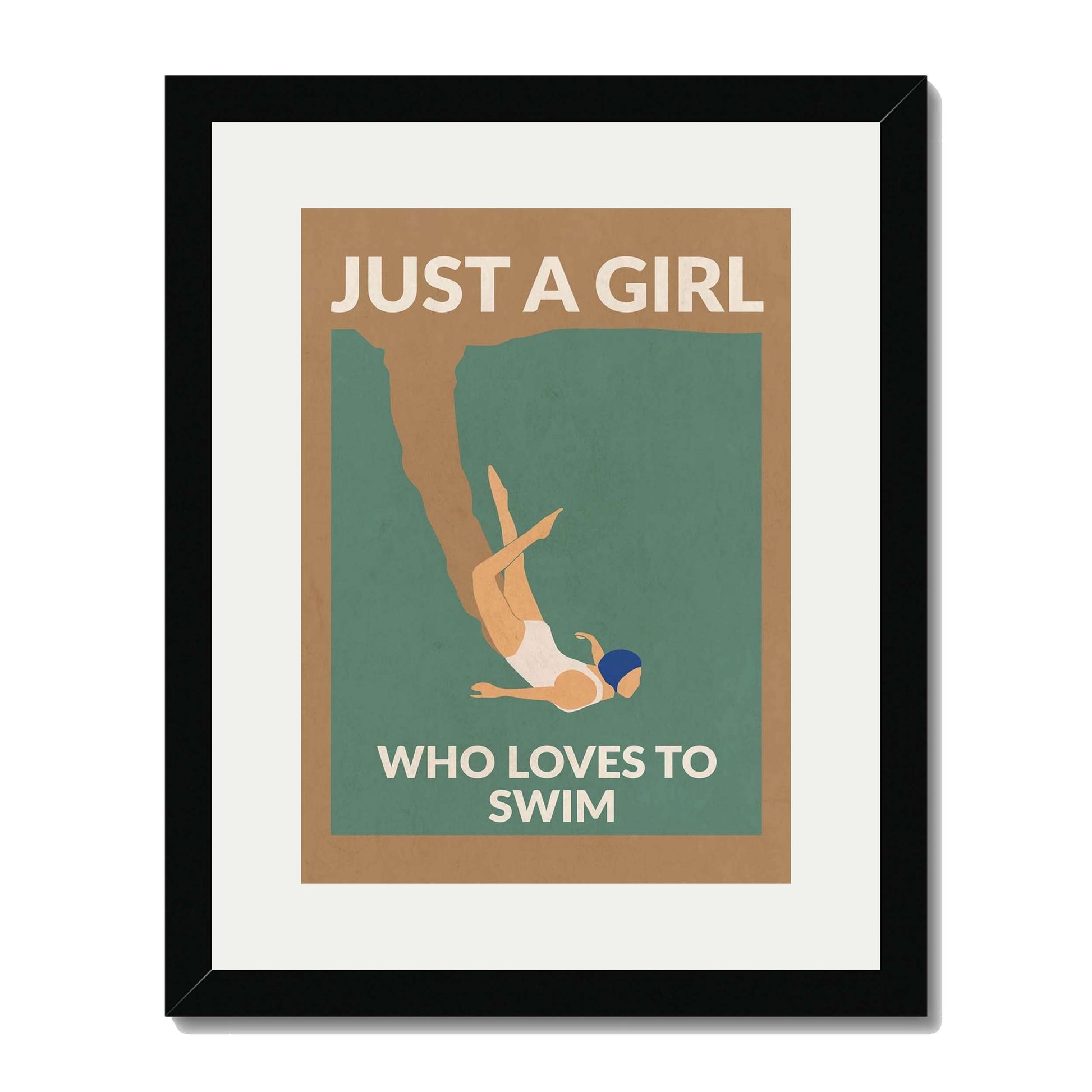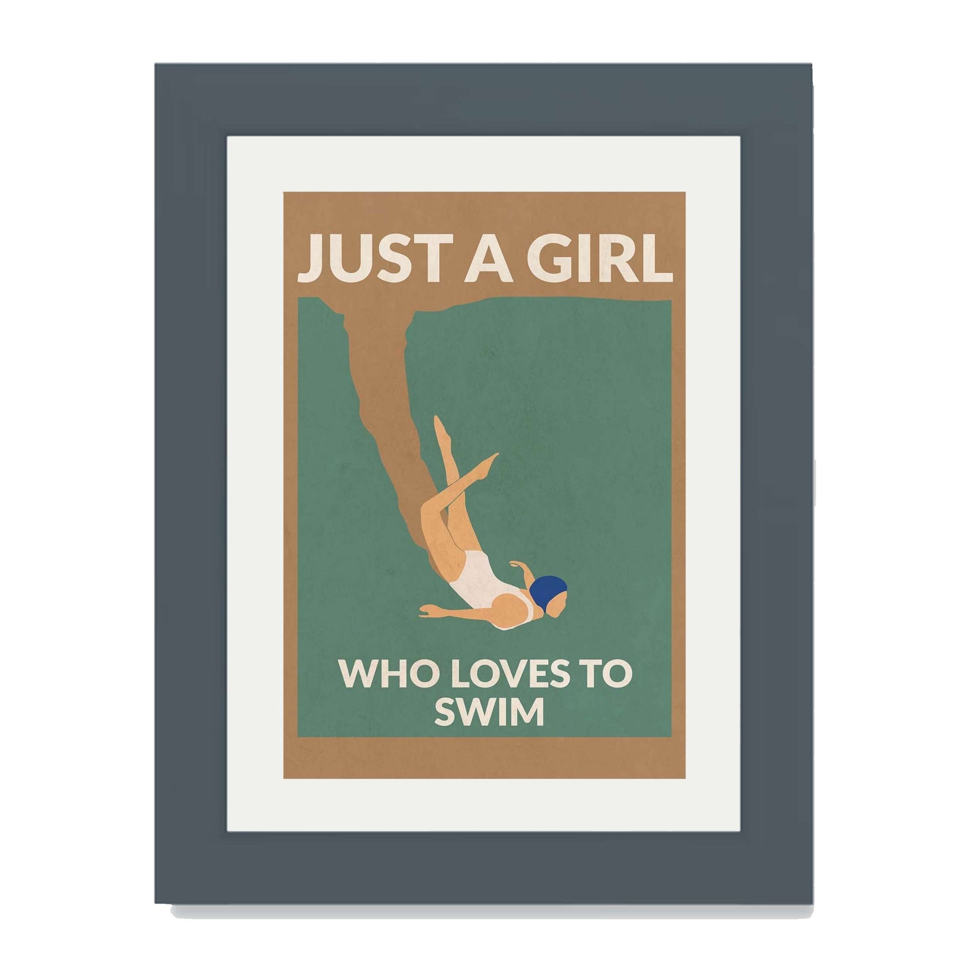 Framed with the phrase: “Just a Girl Who Loves to Swim”