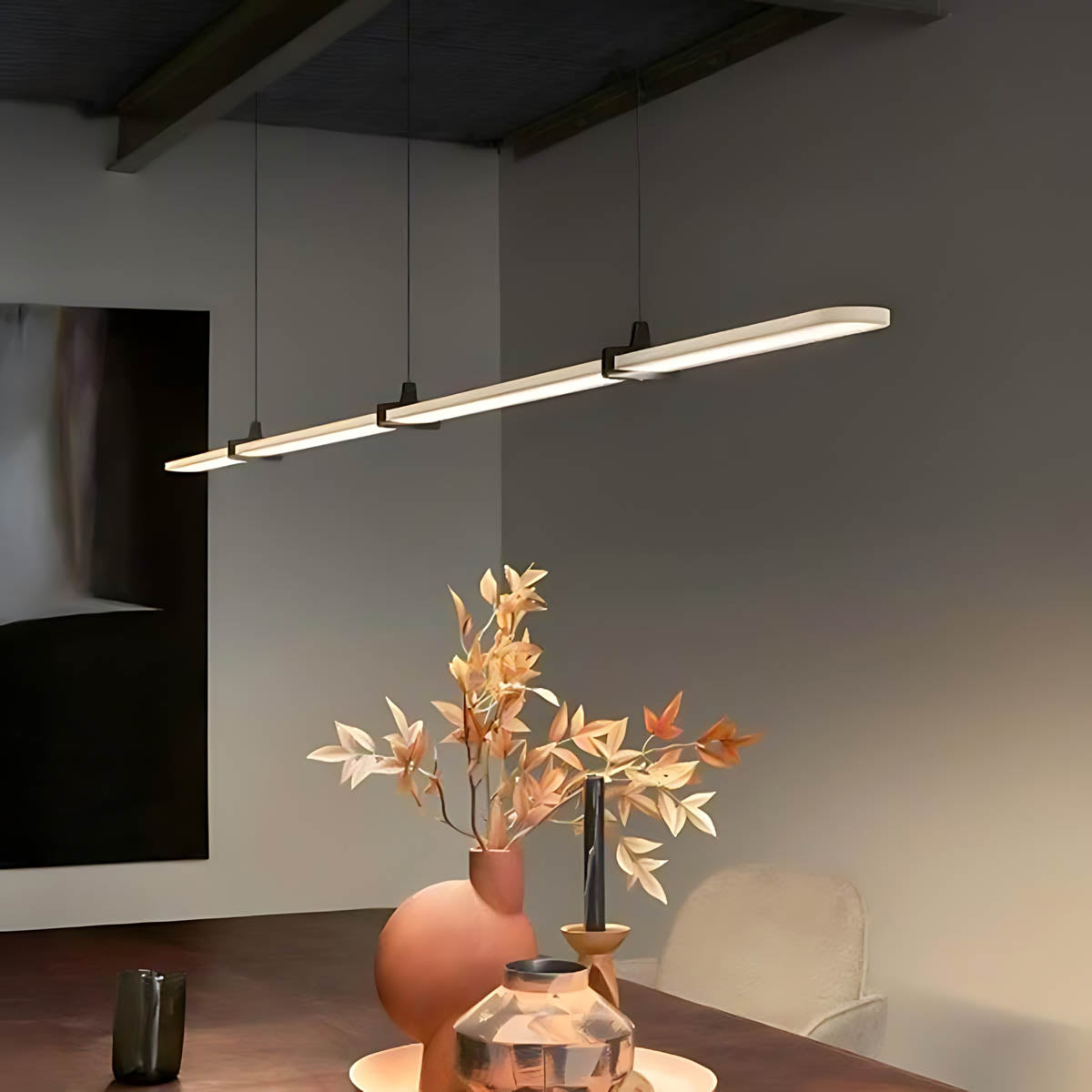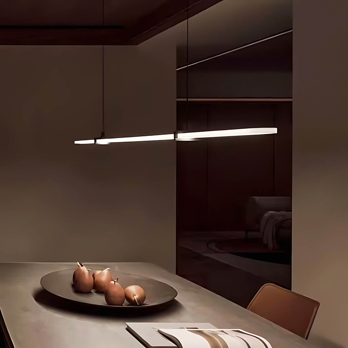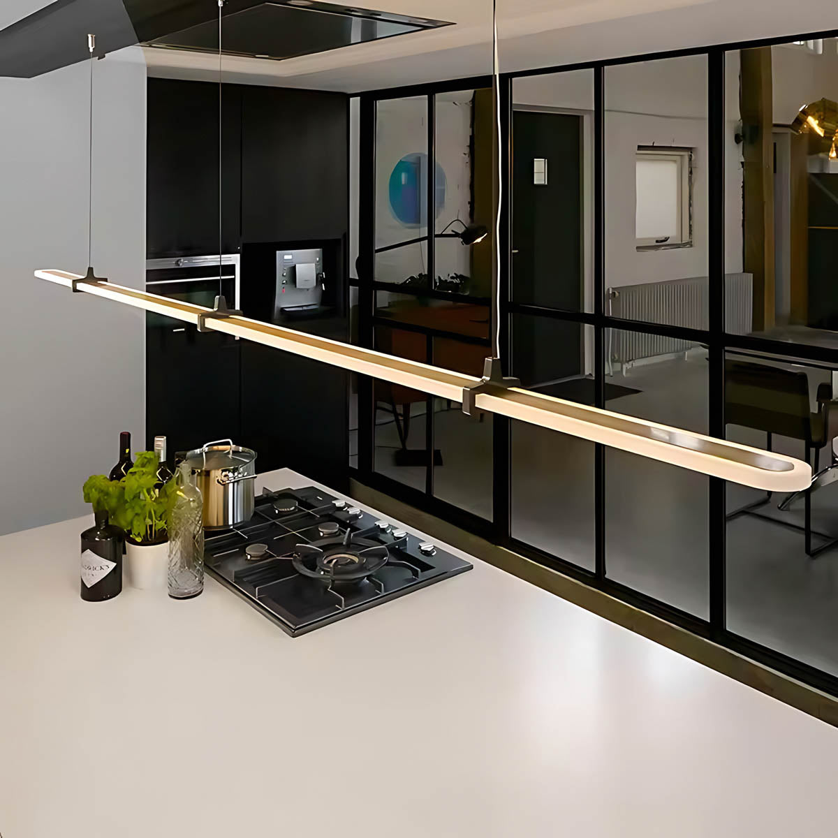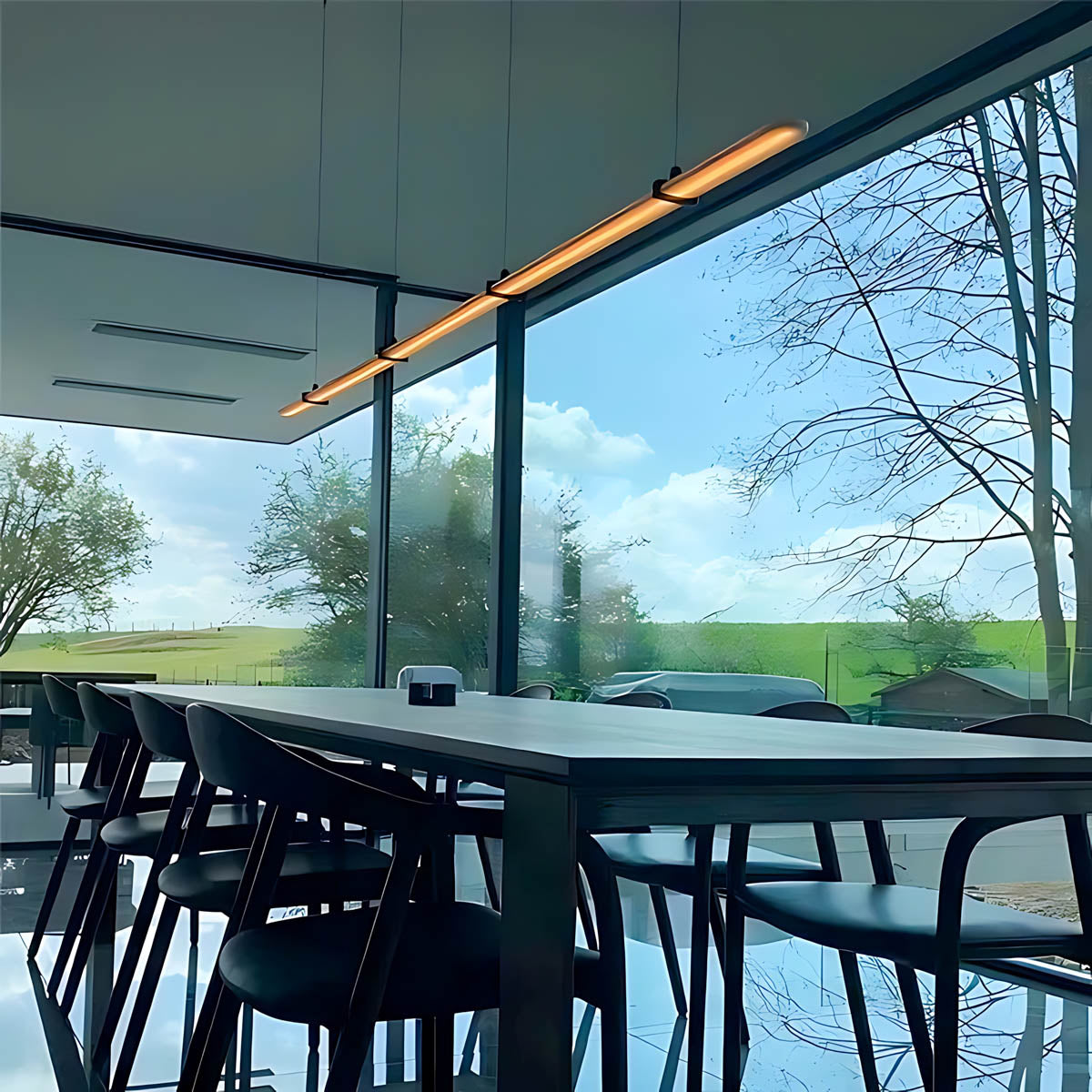 Its ultra-clean profile and balanced hanging system echo Japanese minimalism, while the integrated acrylic diffuser spreads an even, glare-free wash of light that’s perfect for long tables, kitchen islands, conference rooms and modern dining spaces.