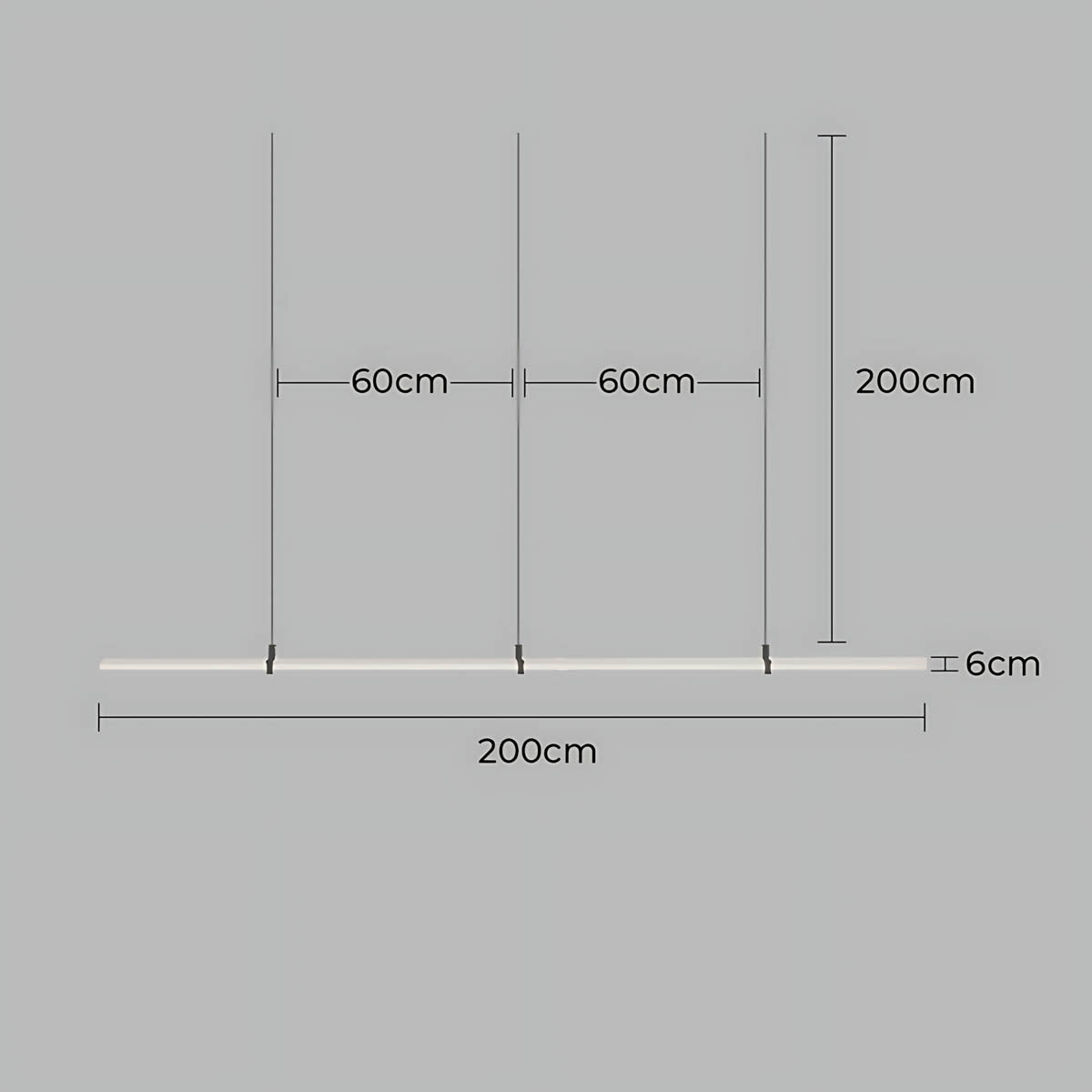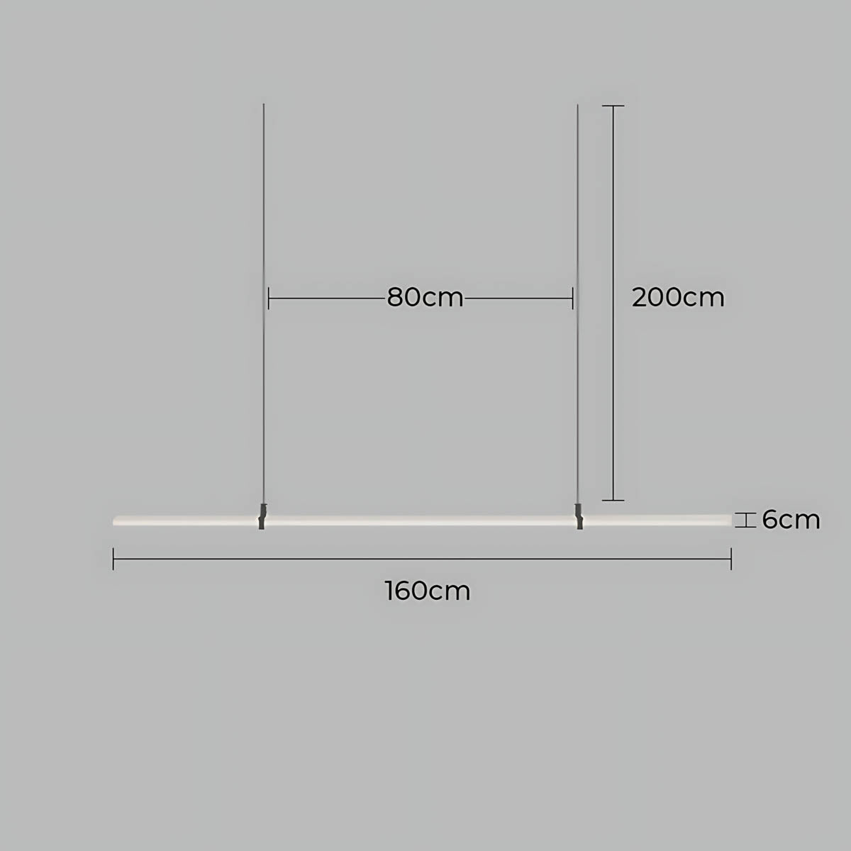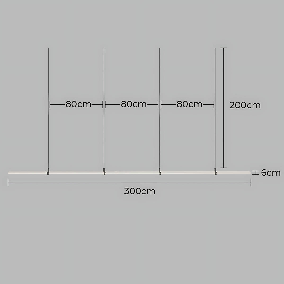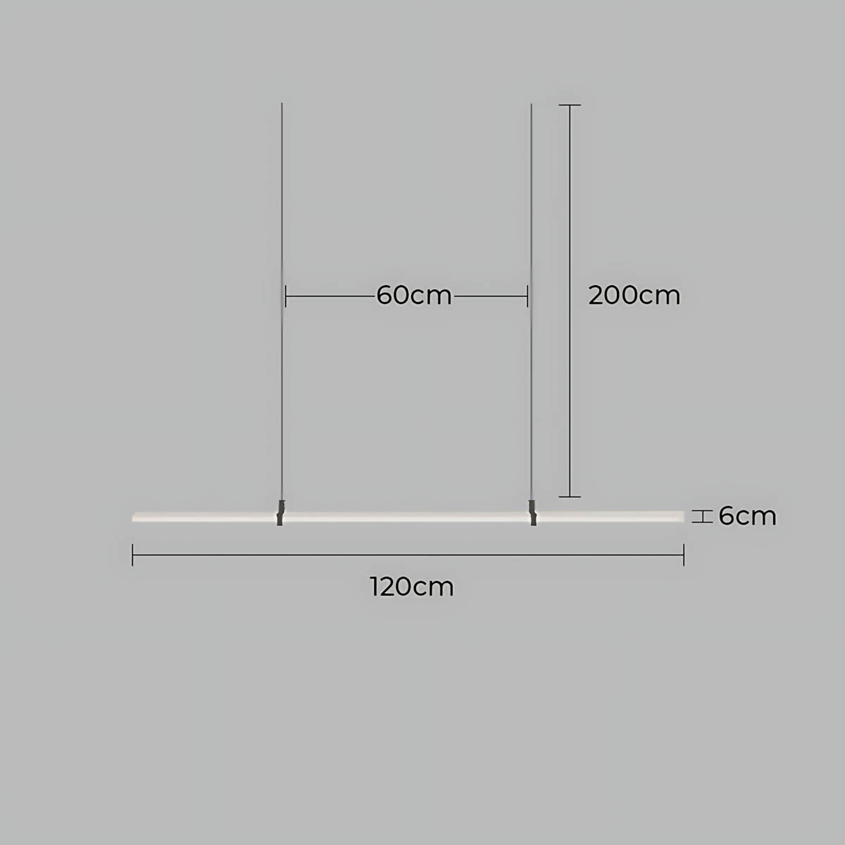 The dark metal brackets create a subtle contrast that frames the light bar like a piece of floating art, keeping the silhouette airy and contemporary.