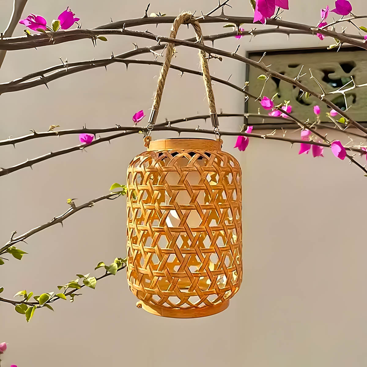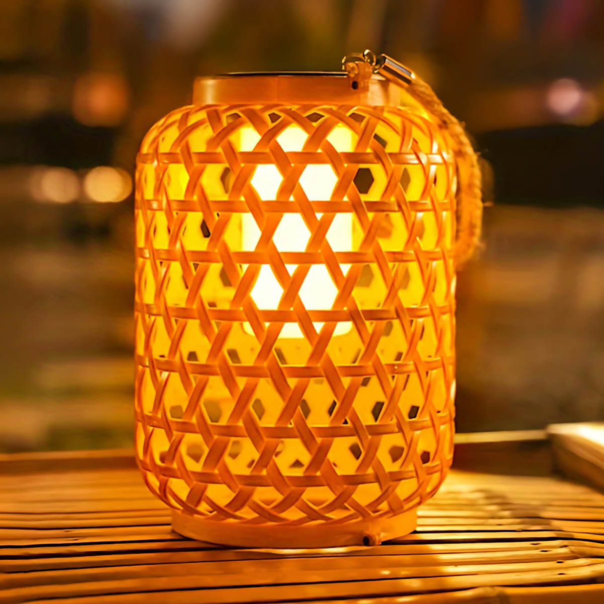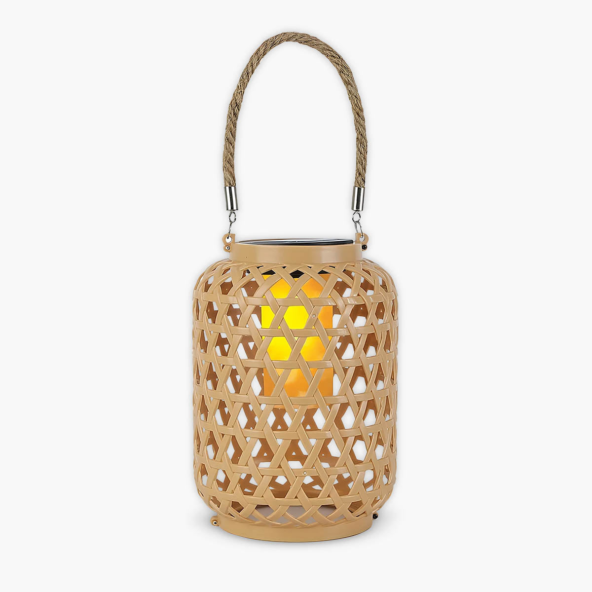Meet LEEN, a chic solar outdoor lantern crafted from durable ABS plastic with a woven lattice design and braided carry handle that instantly adds coastal-boho charm to patios, porches, and garden paths.