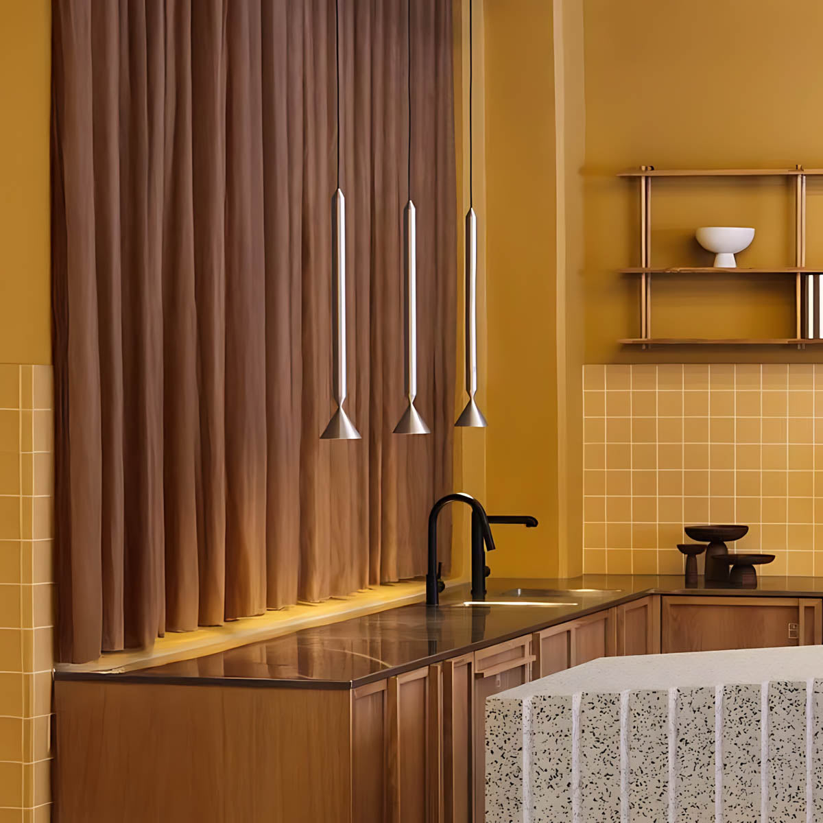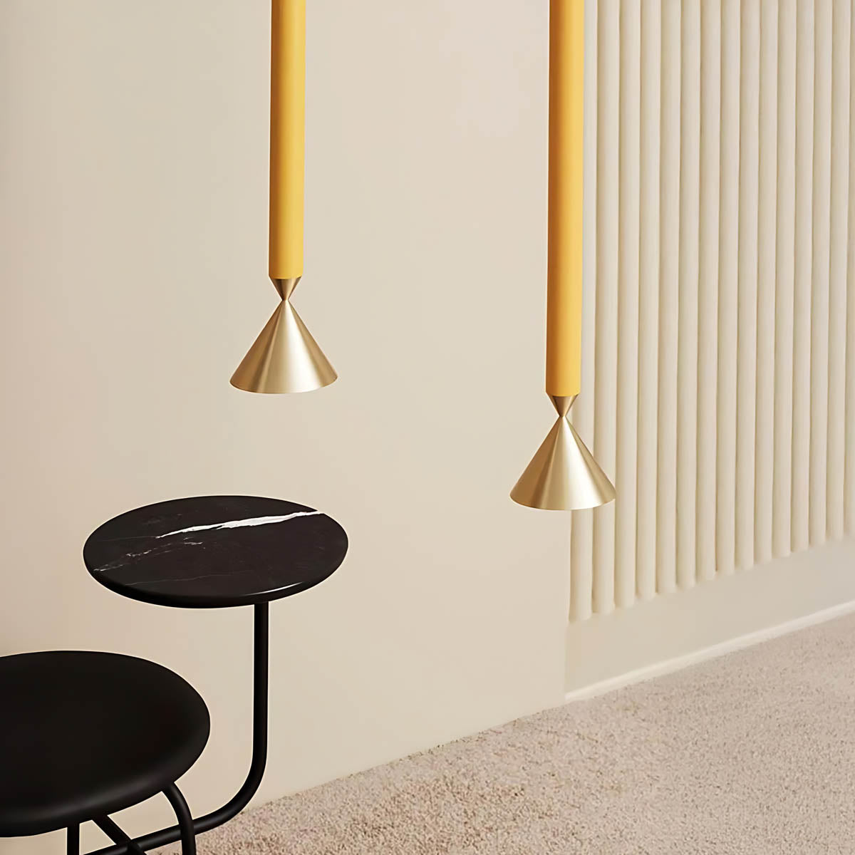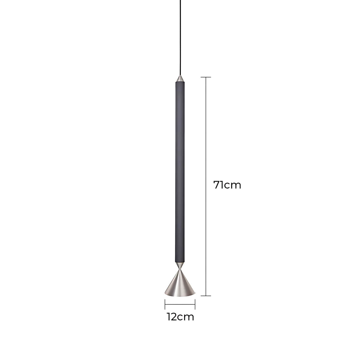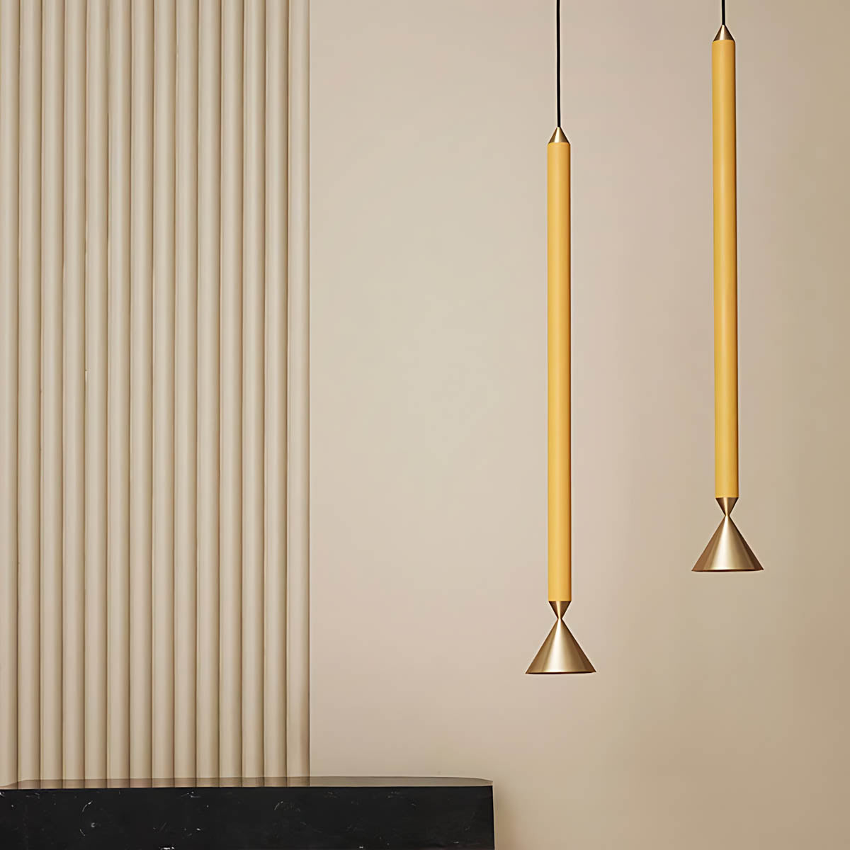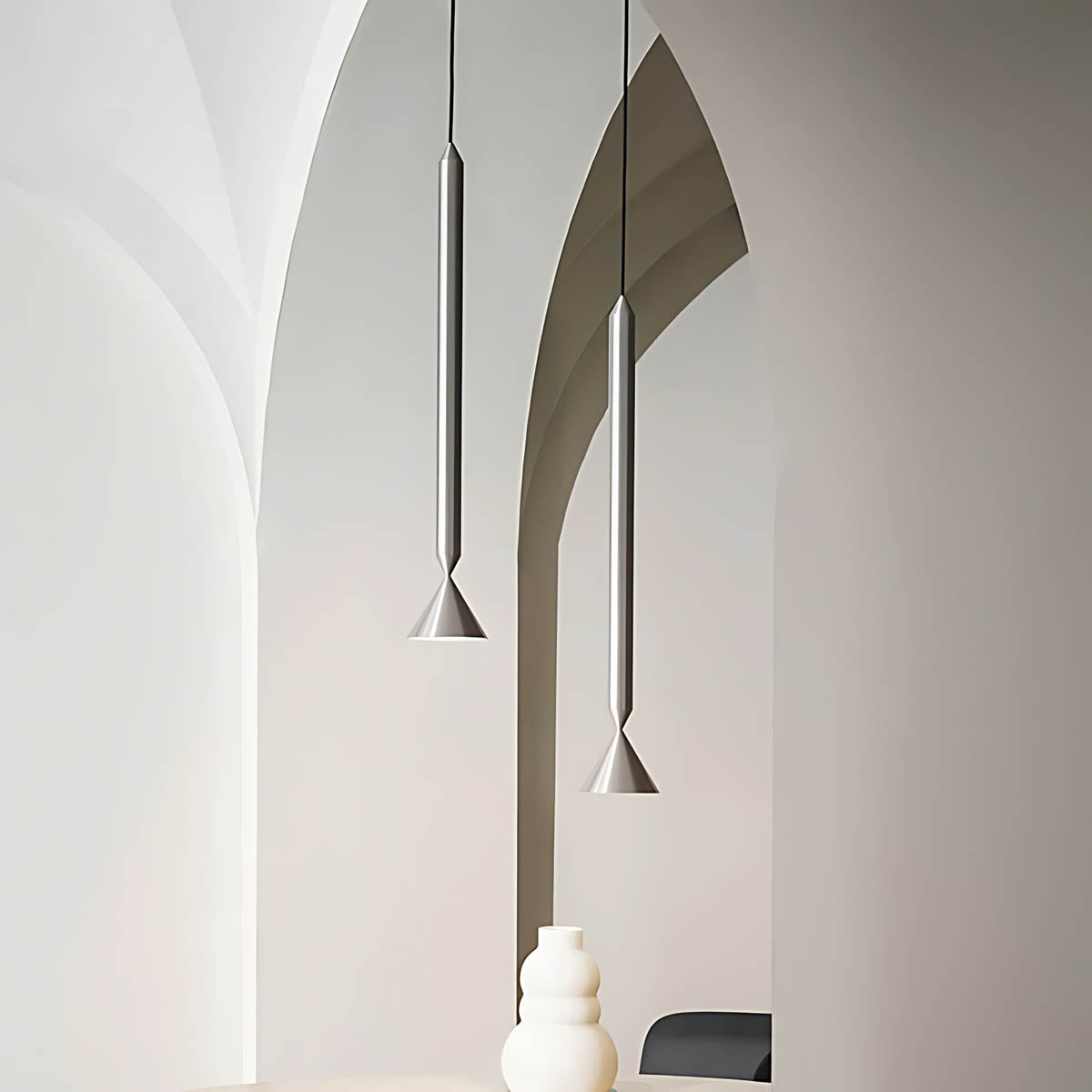 Its elongated rod and sculptural cone tip create a focused downlight that’s perfect for kitchen islands, bars, stairwells, and airy entryways, while the refined finishes (from soft color coats to satin metallics) add subtle luxe.