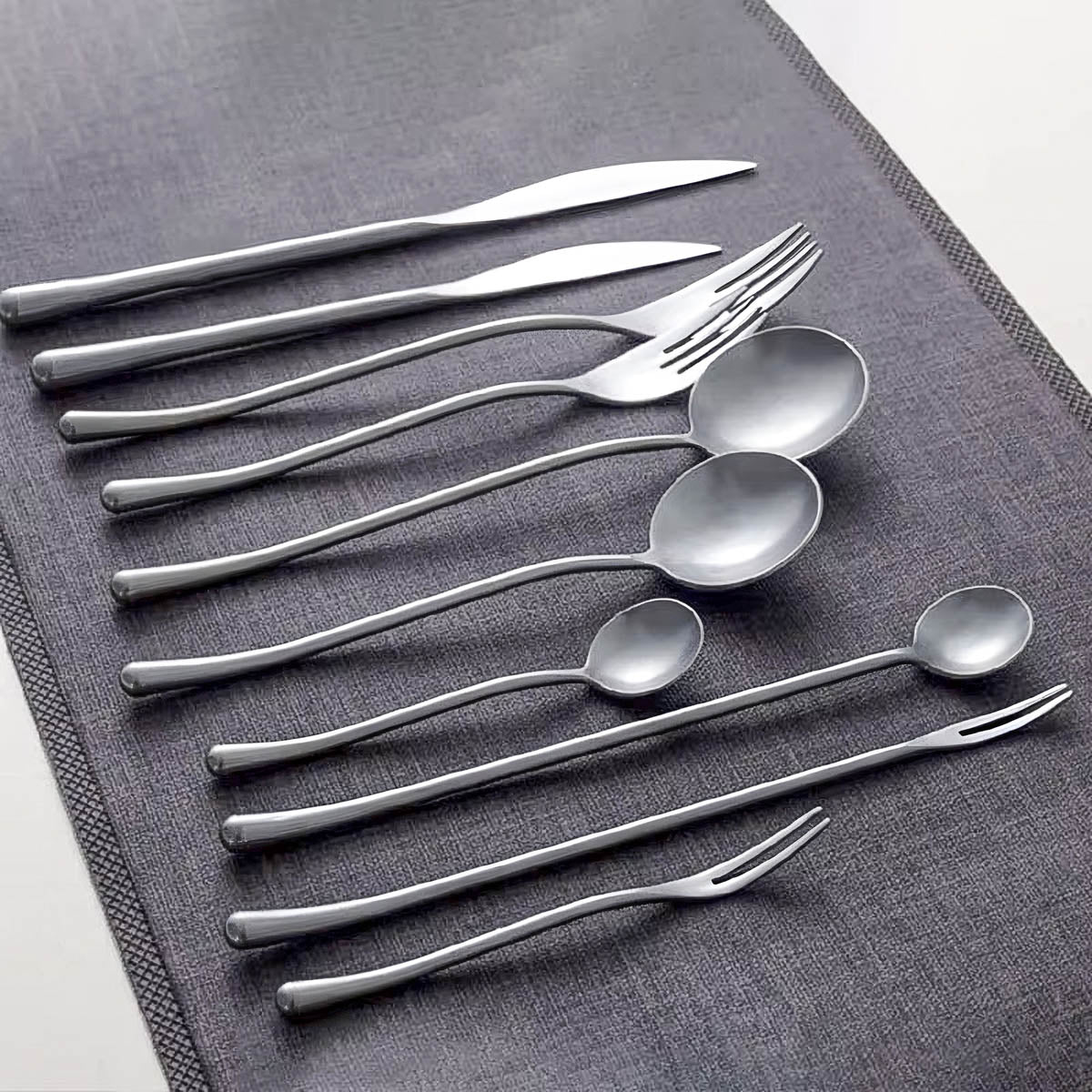 Each piece—from the elegantly tapered dinner fork and knife to the sleek spoon and serving implements—boasts a high-shine, mirror-polished finish that resists rust, tarnish, and scratches.