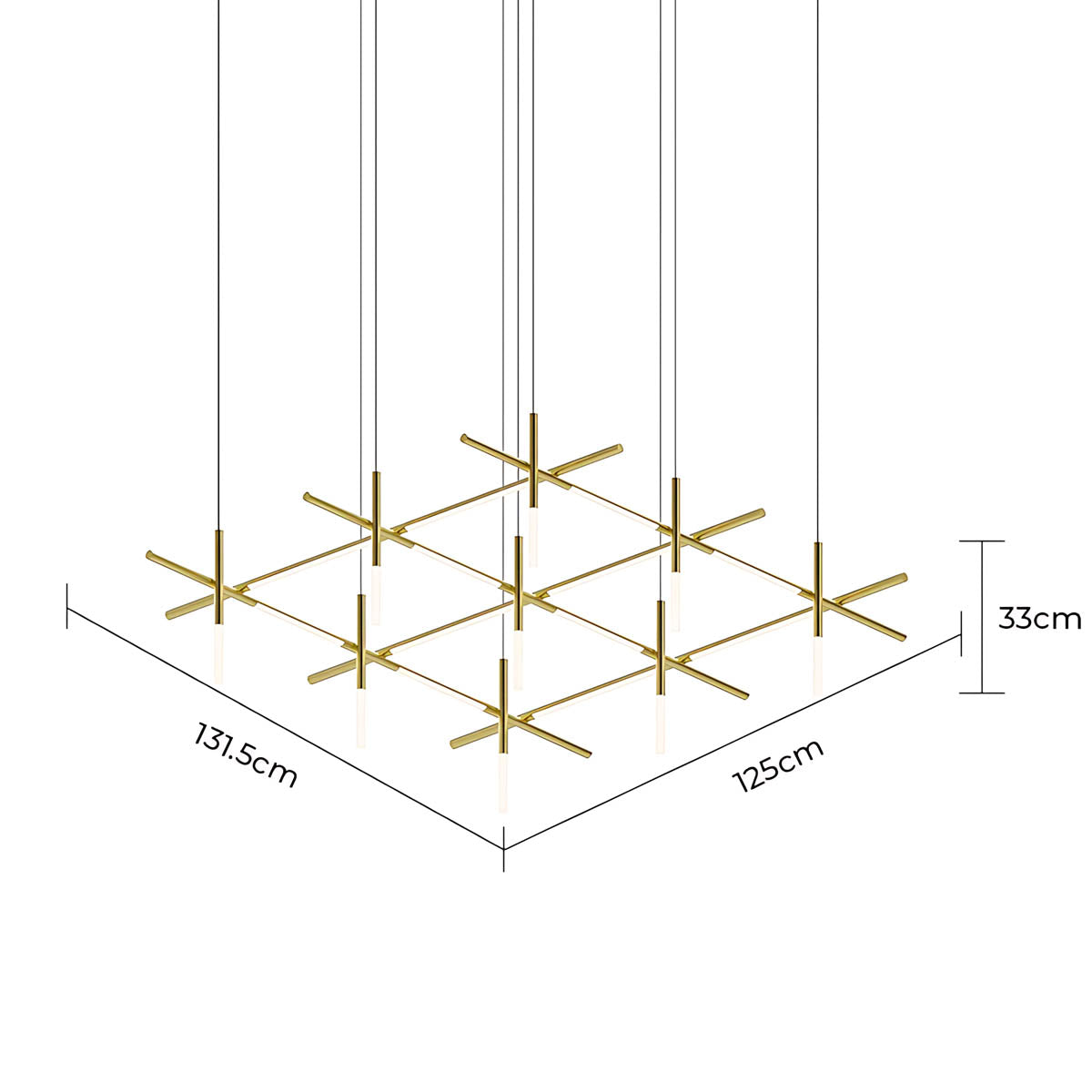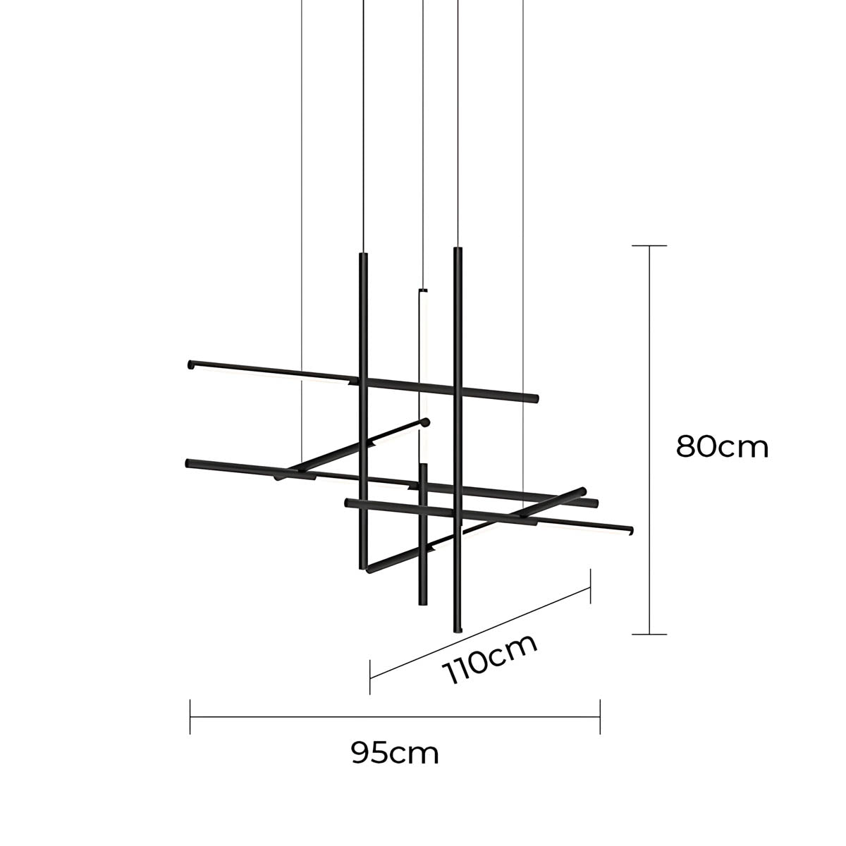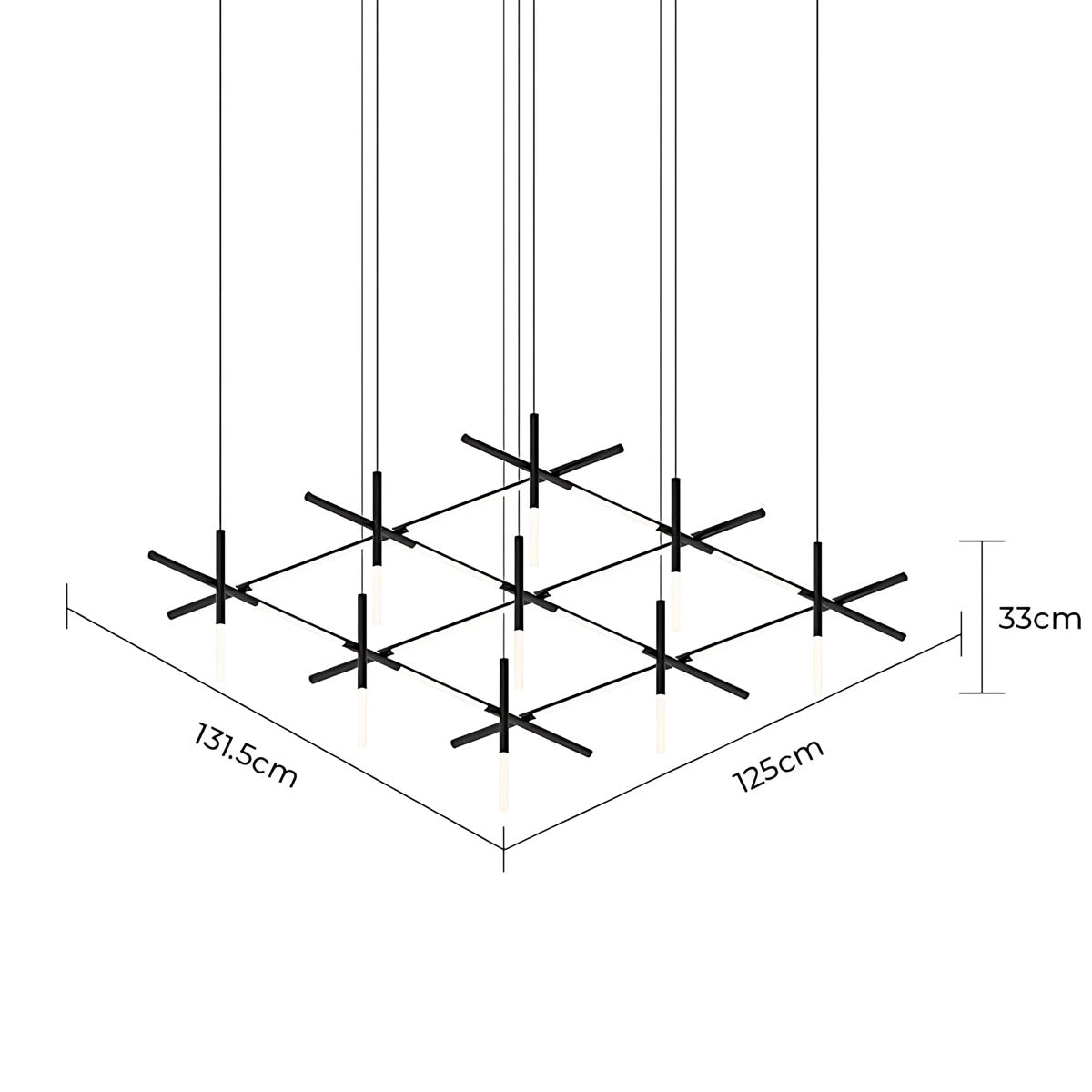 Clean, intersecting bars create a floating geometric grid that feels gallery-ready yet totally livable, ideal for dining rooms, living spaces, and double-height foyers.