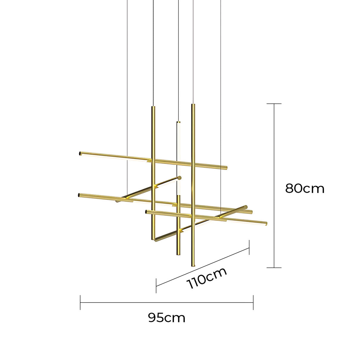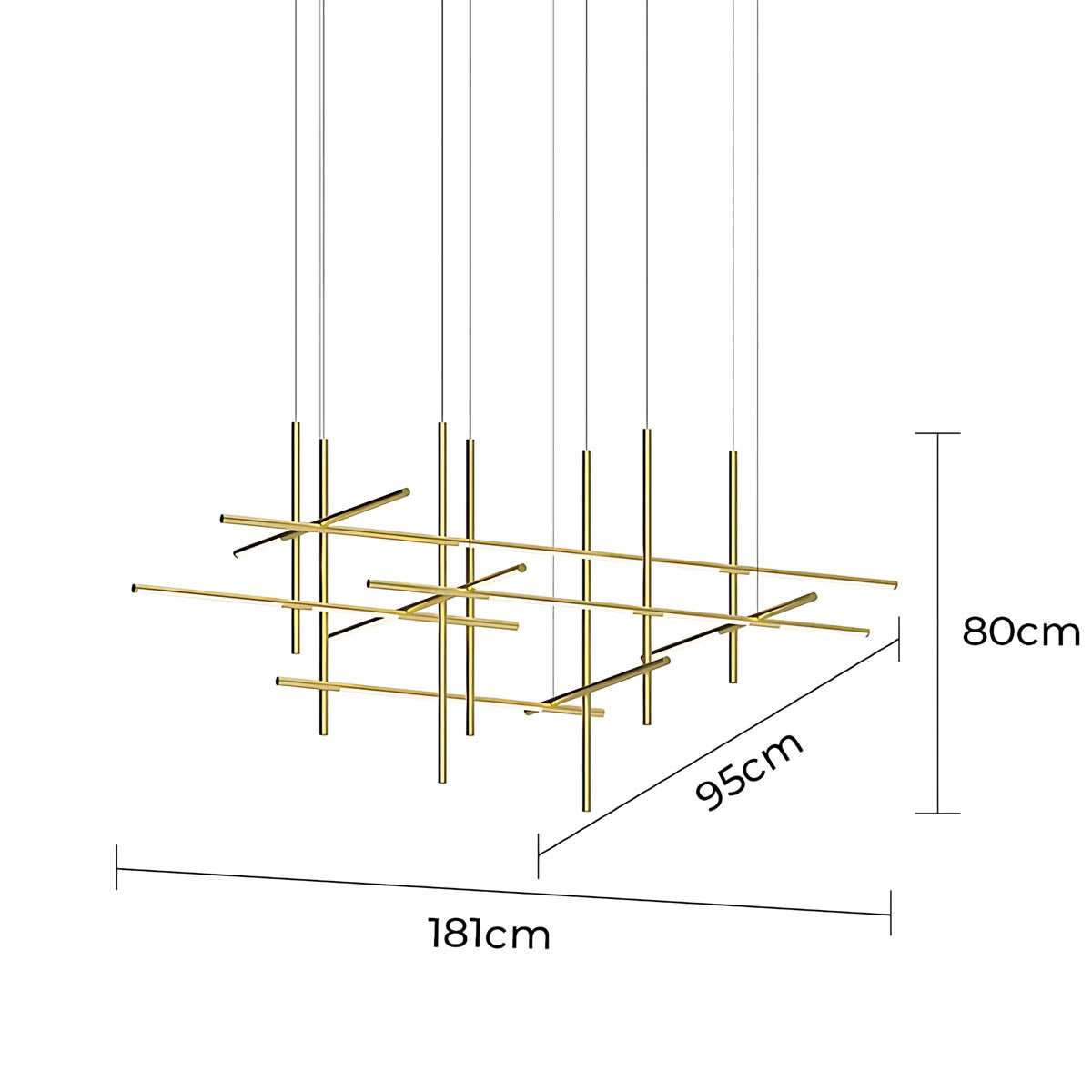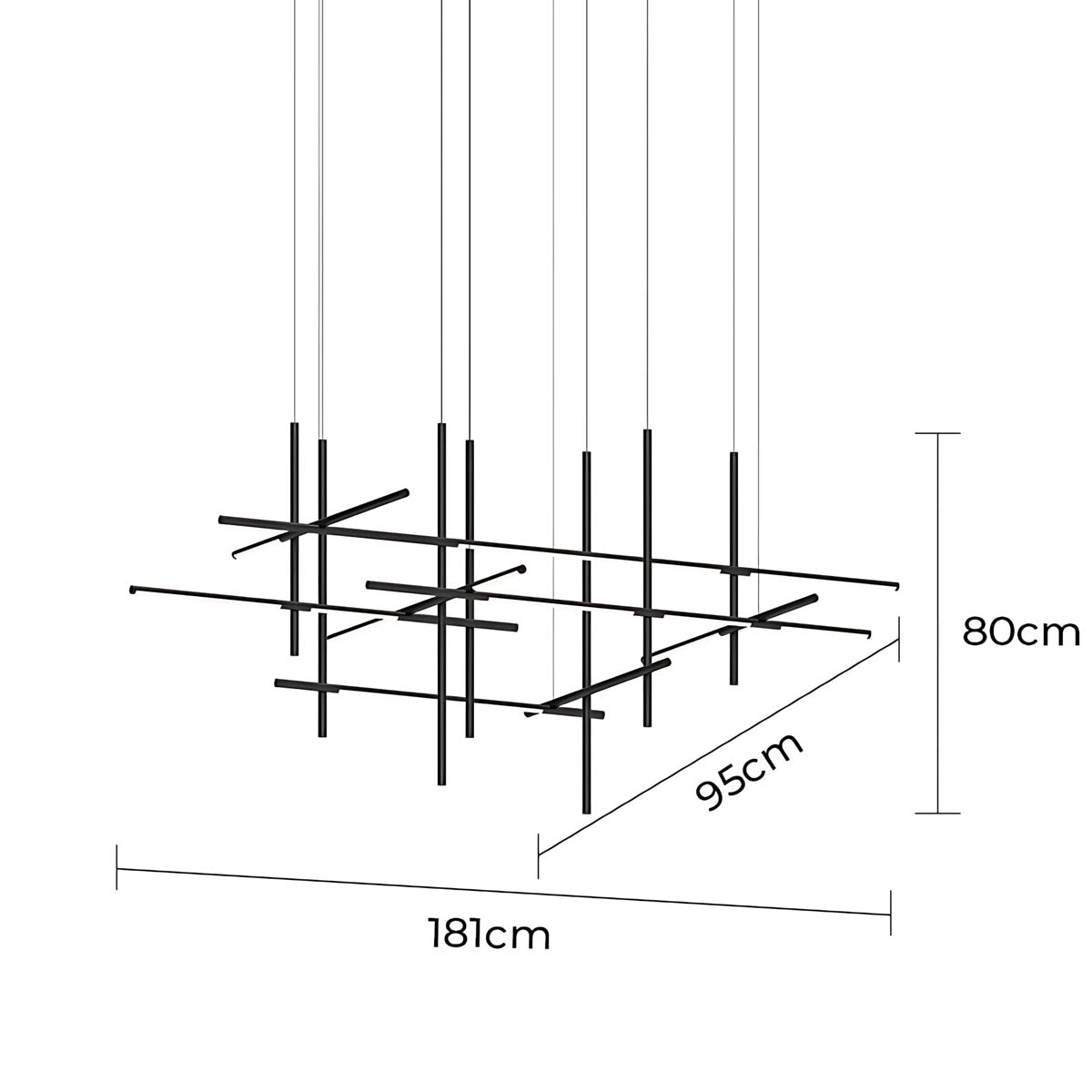 Clean, intersecting bars create a floating geometric grid that feels gallery-ready yet totally livable, ideal for dining rooms, living spaces, and double-height foyers.