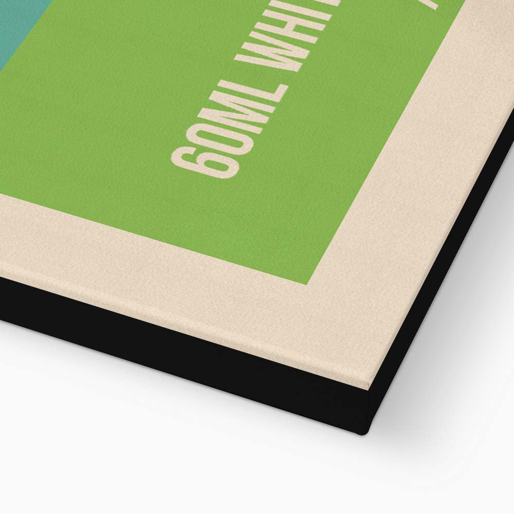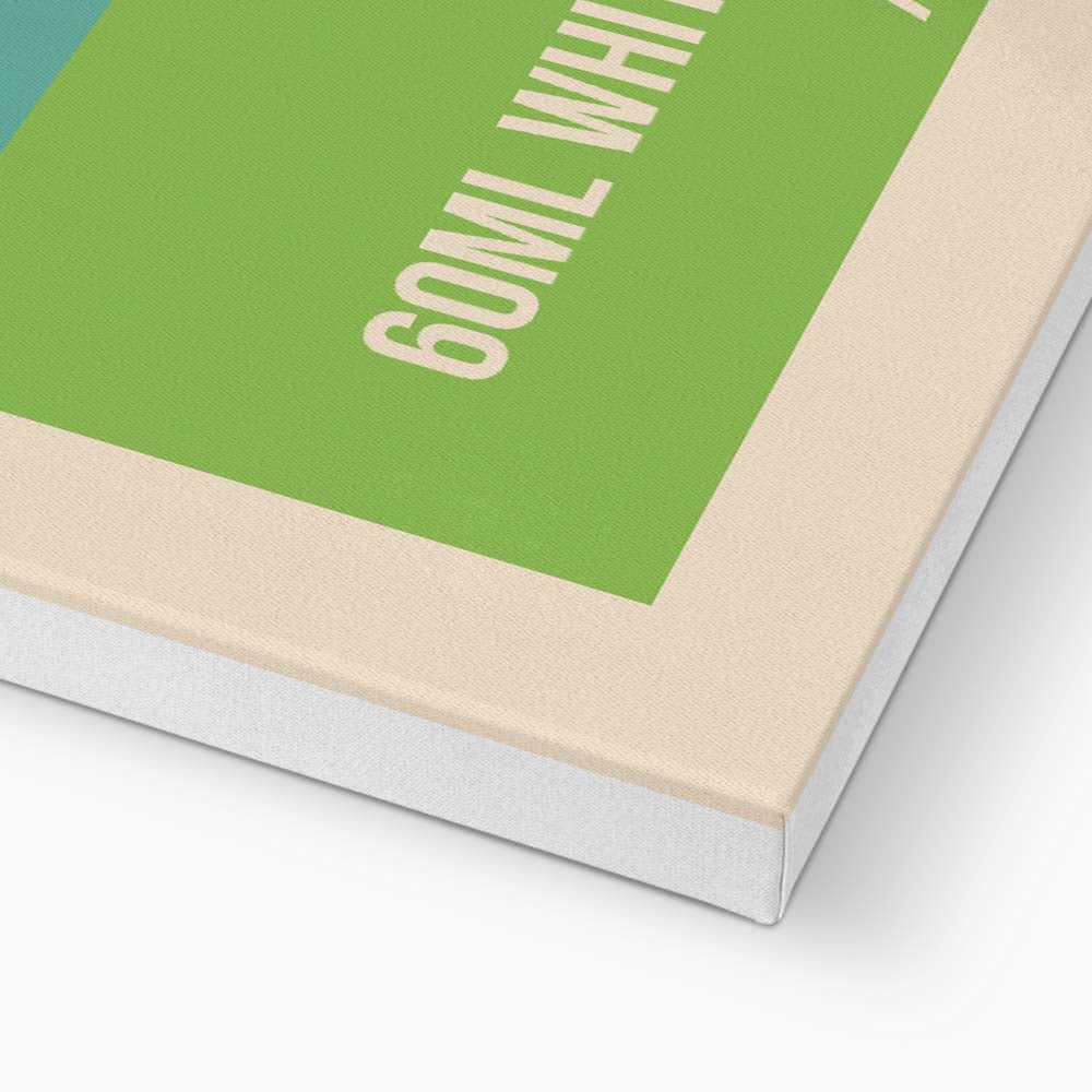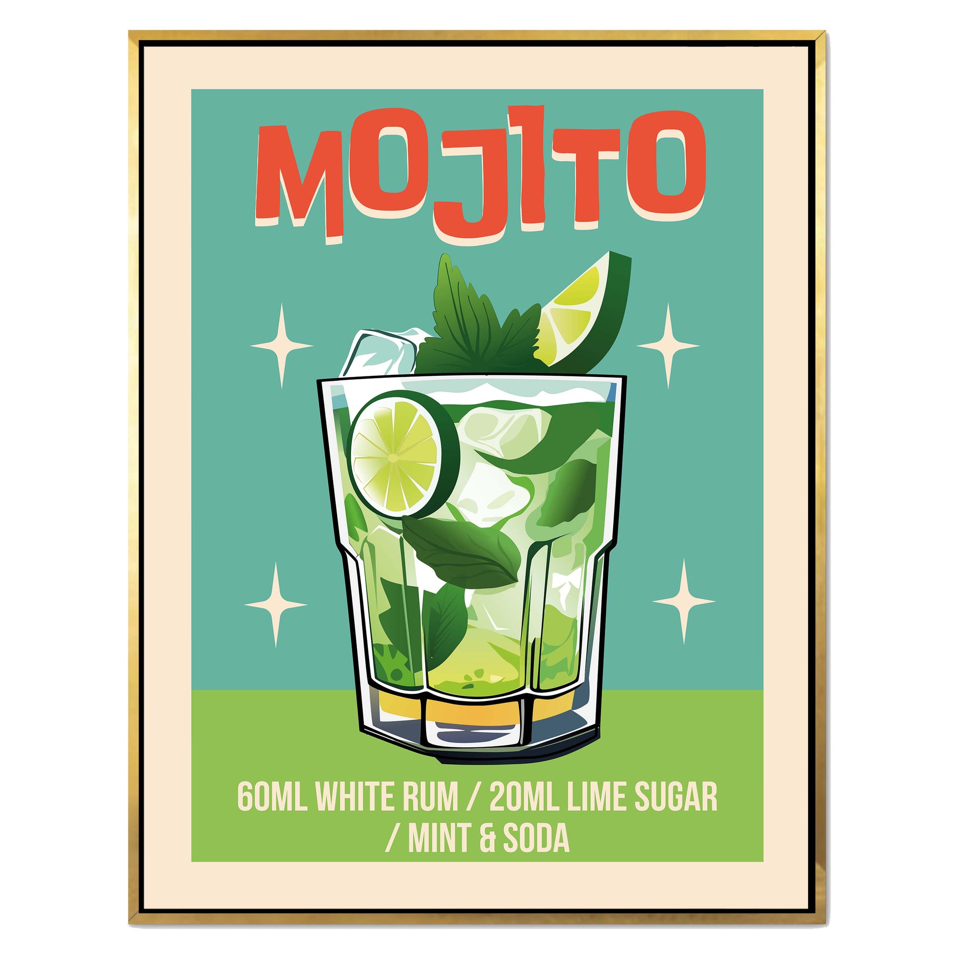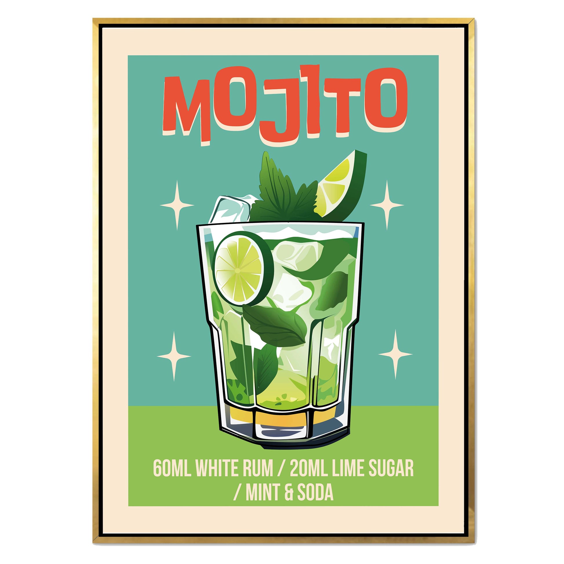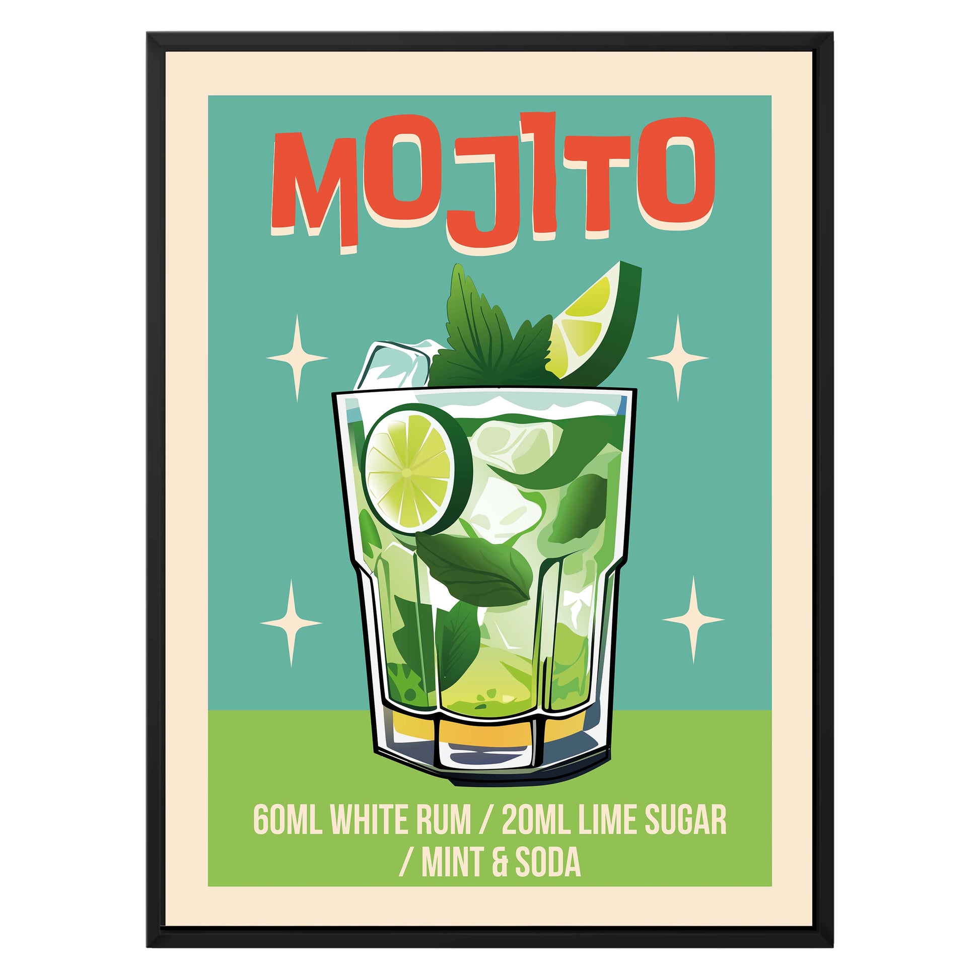 Retro-style canvas print featuring a vibrant illustrated MOJITO recipe. A nostalgic and refreshing design, perfect for cocktail lovers and vintage bar decor.