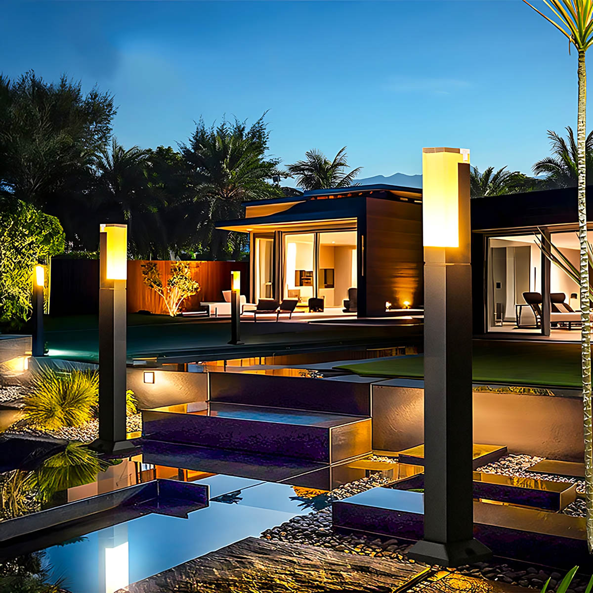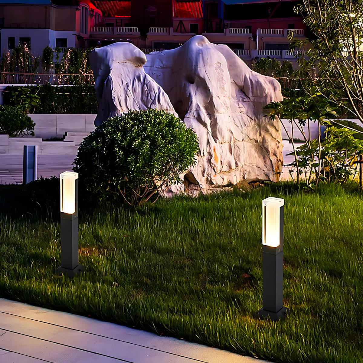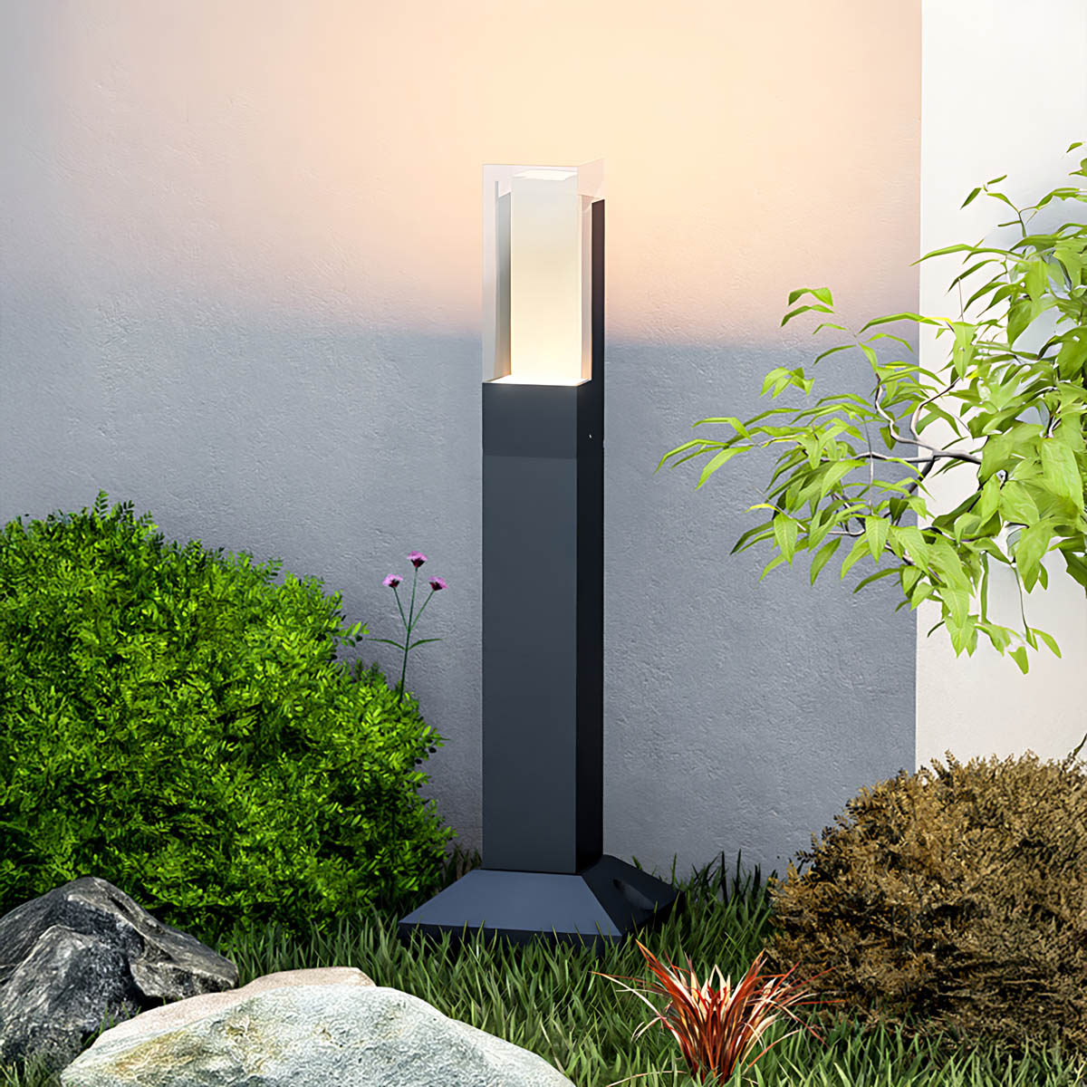 Featuring a sleek geometric silhouette, this lamp delivers a warm, inviting glow that beautifully highlights landscapes and walkways.