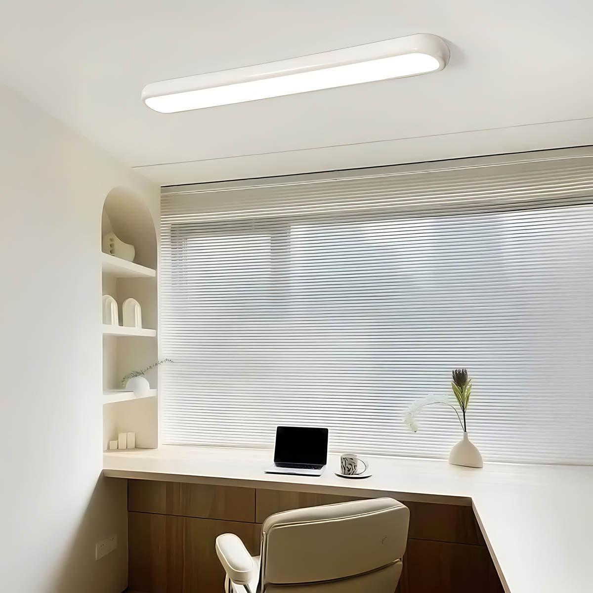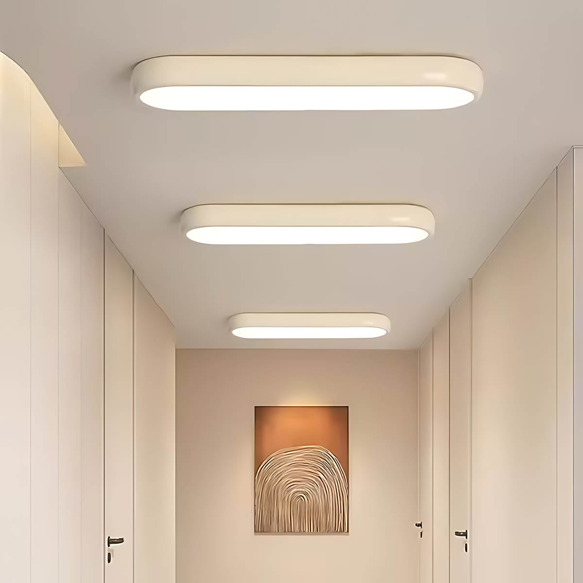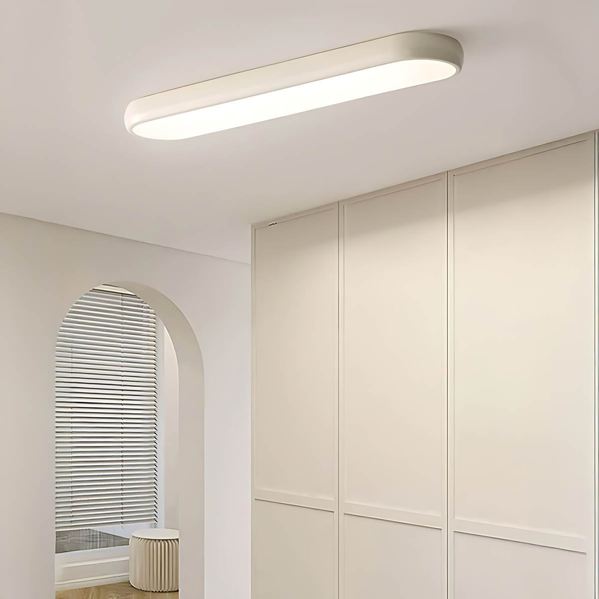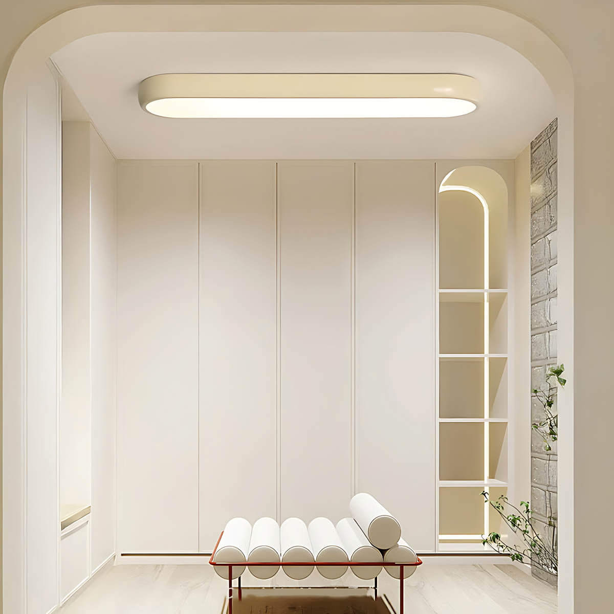 Crafted from durable metal with a seamless, elongated oval shape and a smooth acrylic diffuser, this fixture features a minimalist design that is ideal for low ceilings and narrow areas.