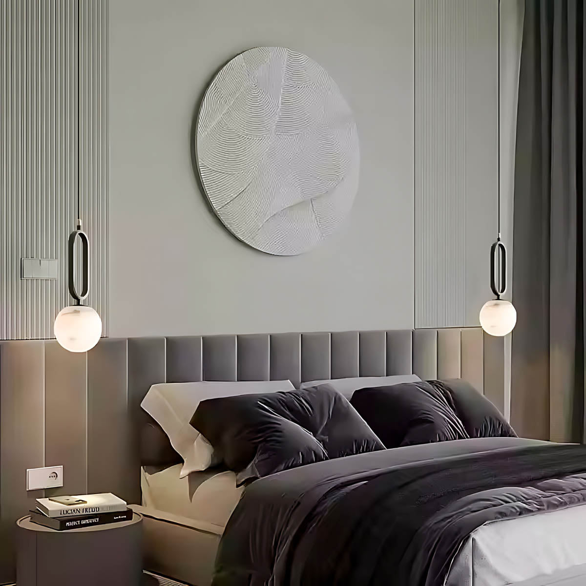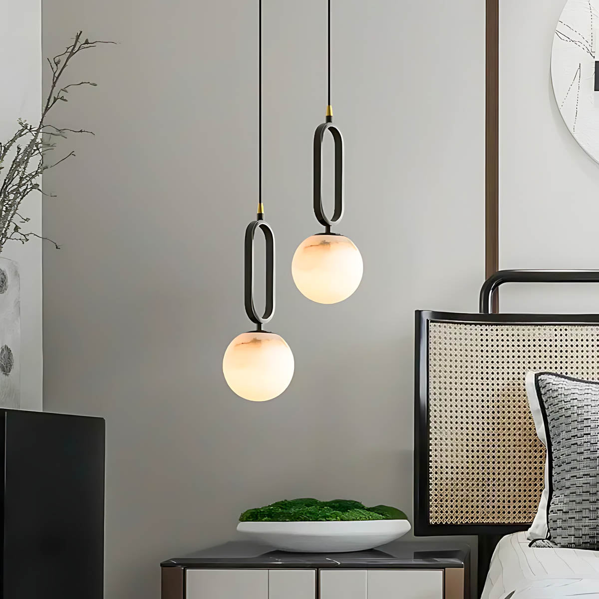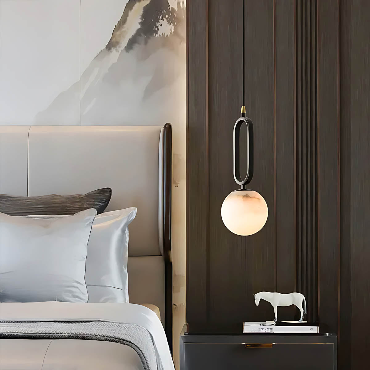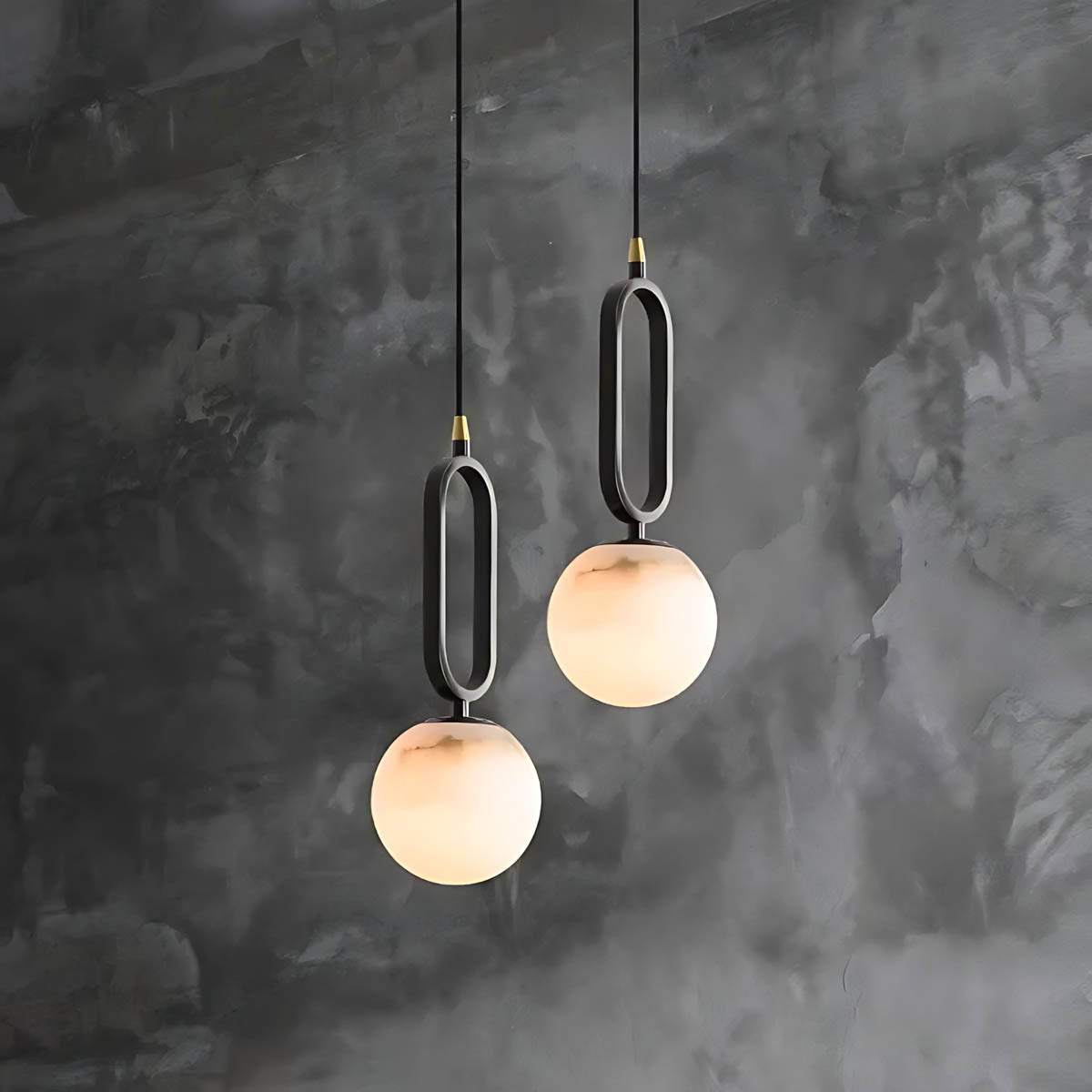 Whether hung solo as a sculptural statement or in a linear trio for visual rhythm, this marble pendant light merges organic beauty with modern edge.