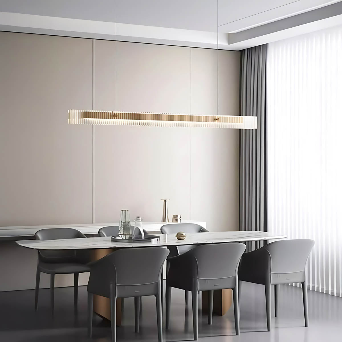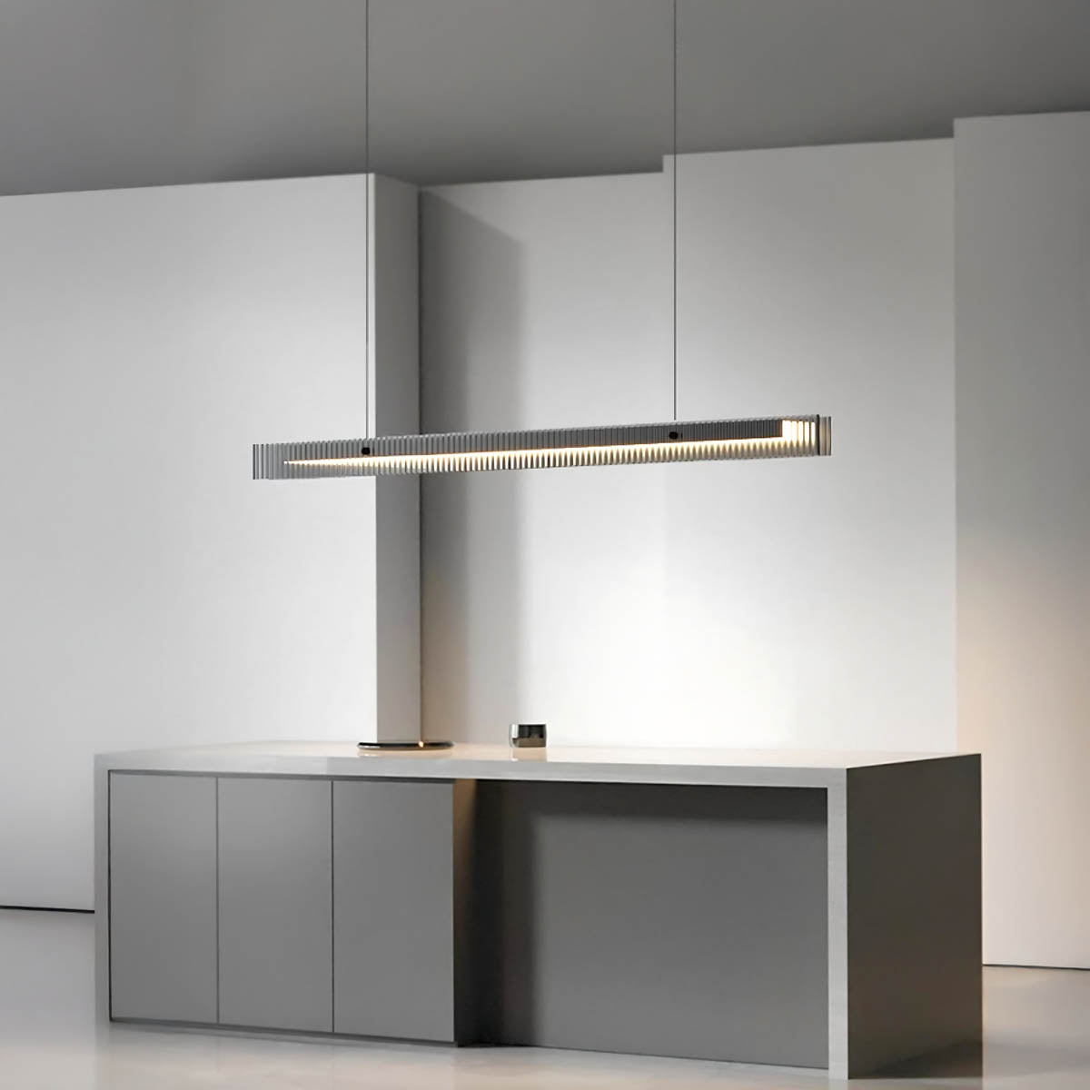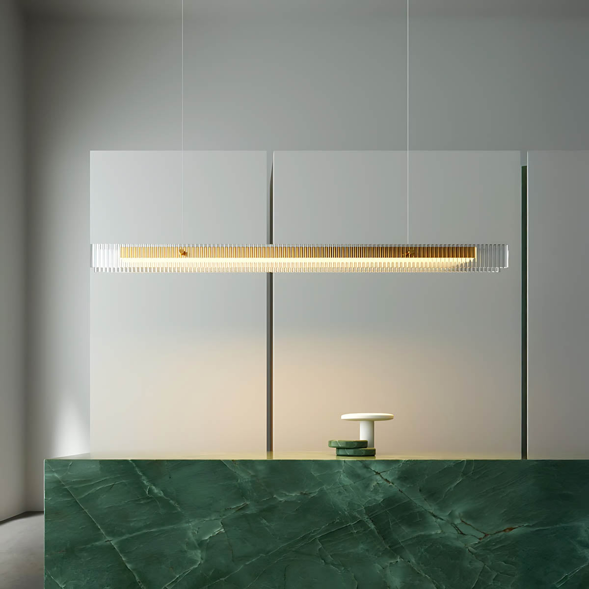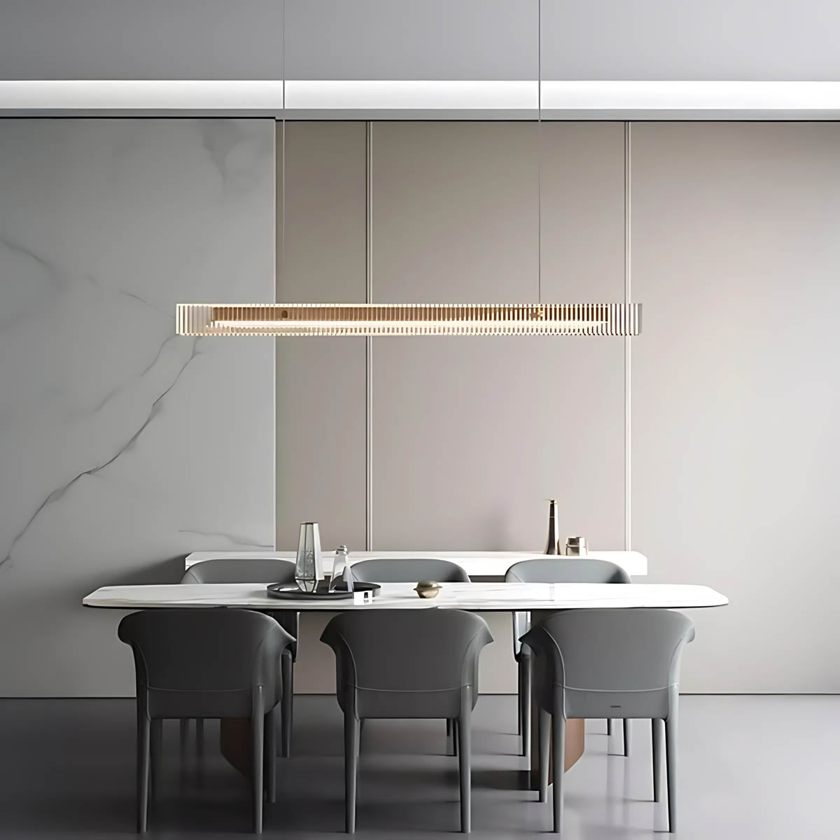 The PRAGUE Linear Light brings refined luxury and architectural appeal to your dining area or kitchen island, transforming overhead lighting into a centerpiece.