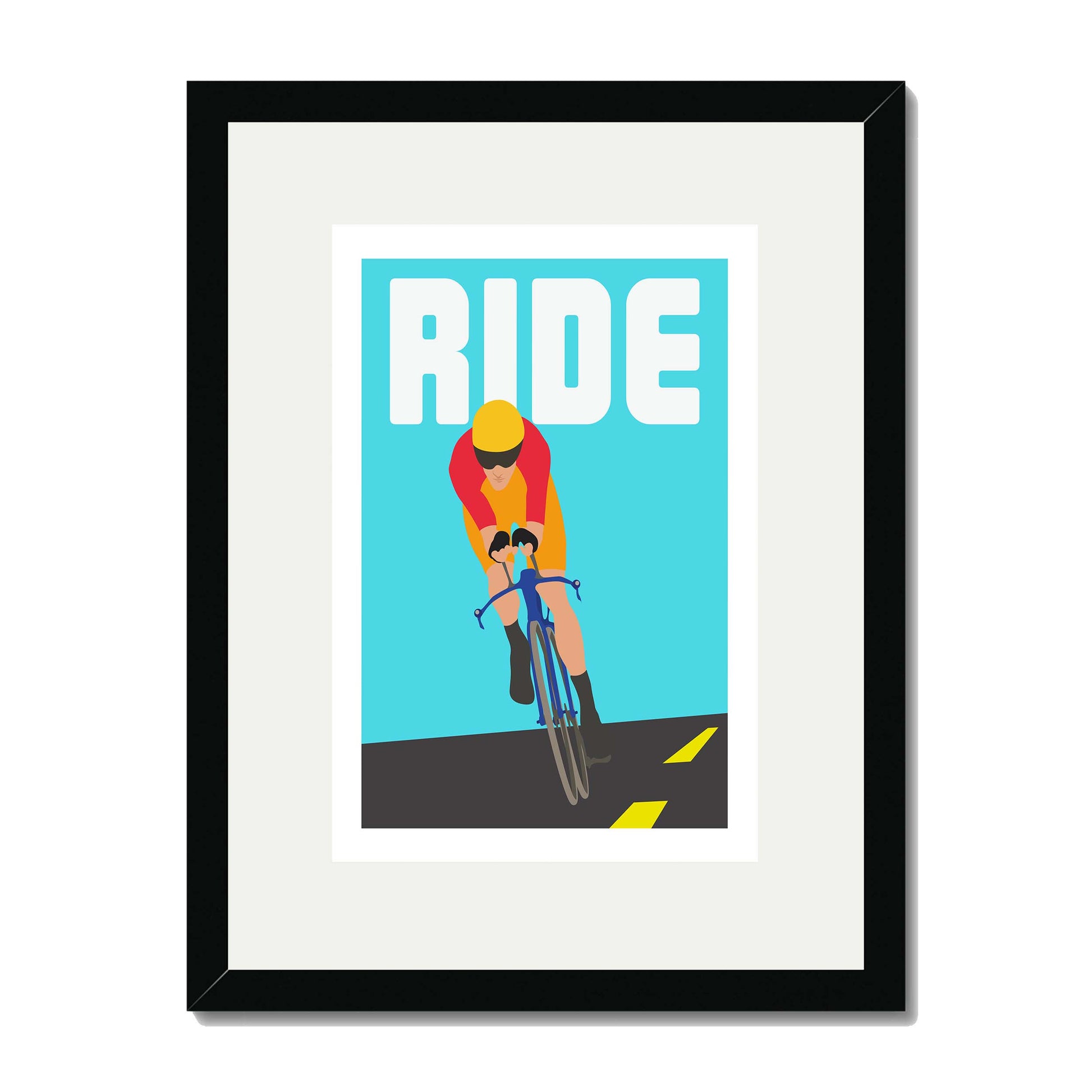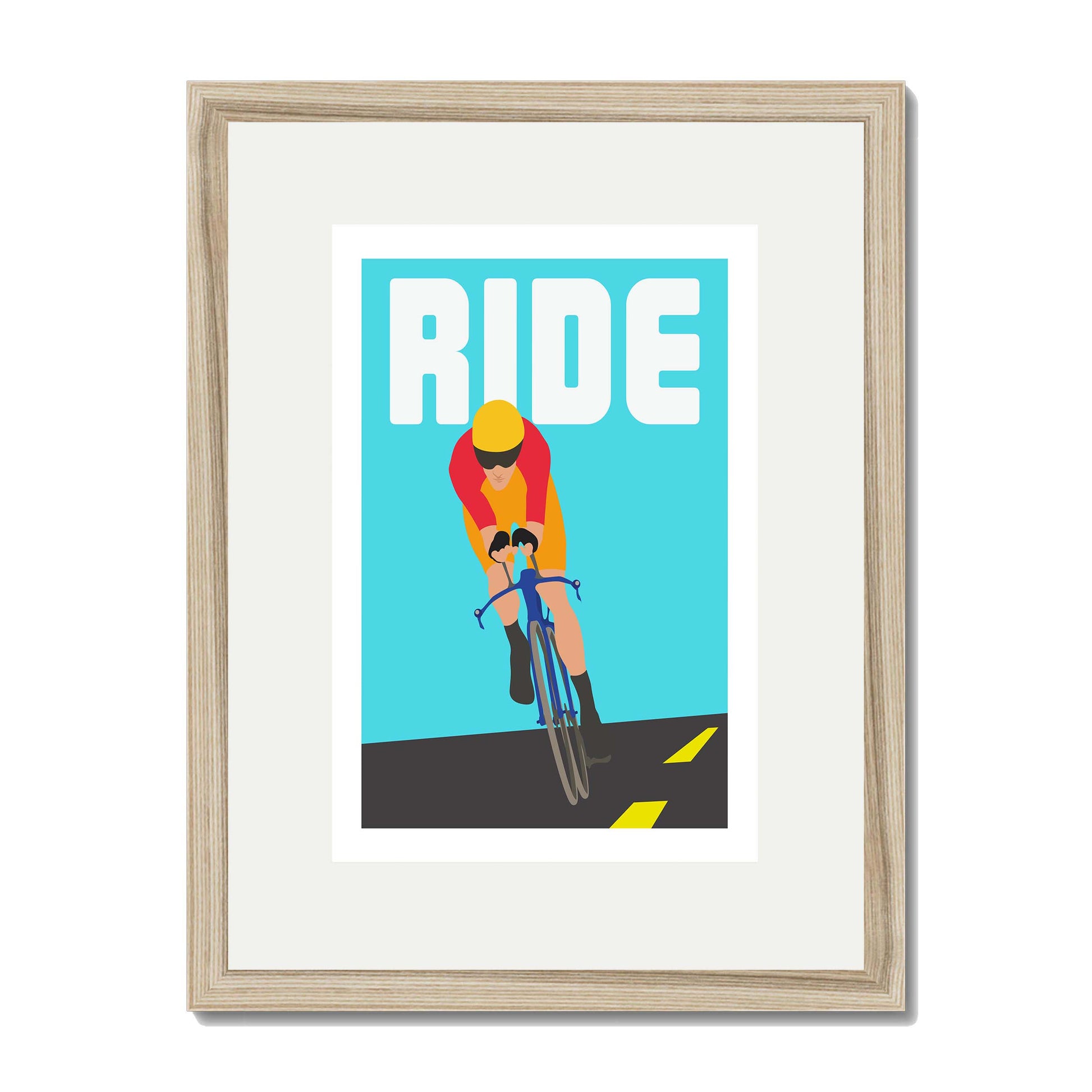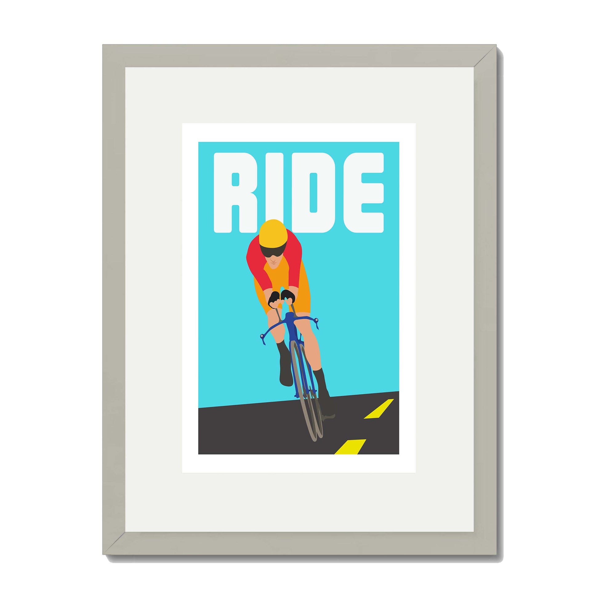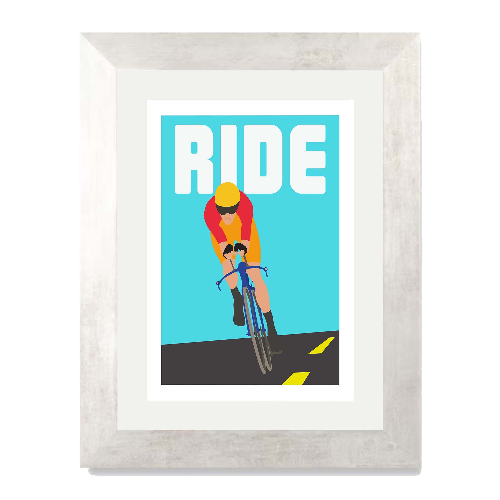RIDE is a retro-style canvas print showcasing a minimalist cyclist in a bold yellow helmet and red shirt. Perfect for cycling lovers, sports enthusiasts, and anyone wanting a vibrant, athletic touch in their space.