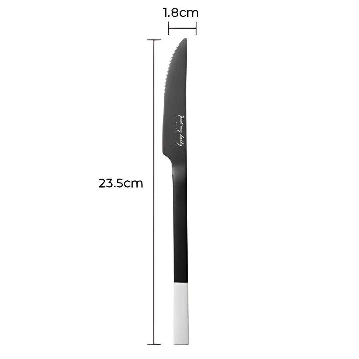 The PVD-coated finish resists rust, scratches, and daily wear, while the balanced weight and clean lines ensure a comfortable grip and effortless table presentation.