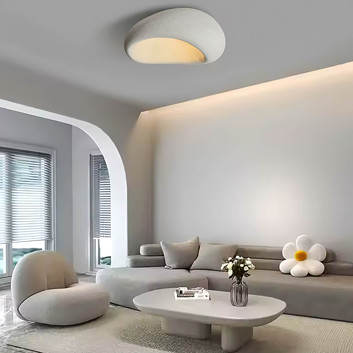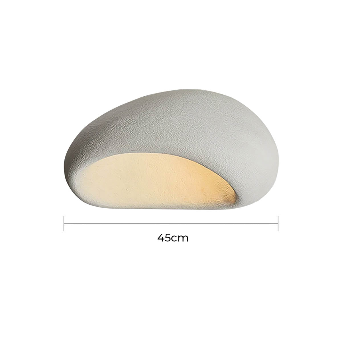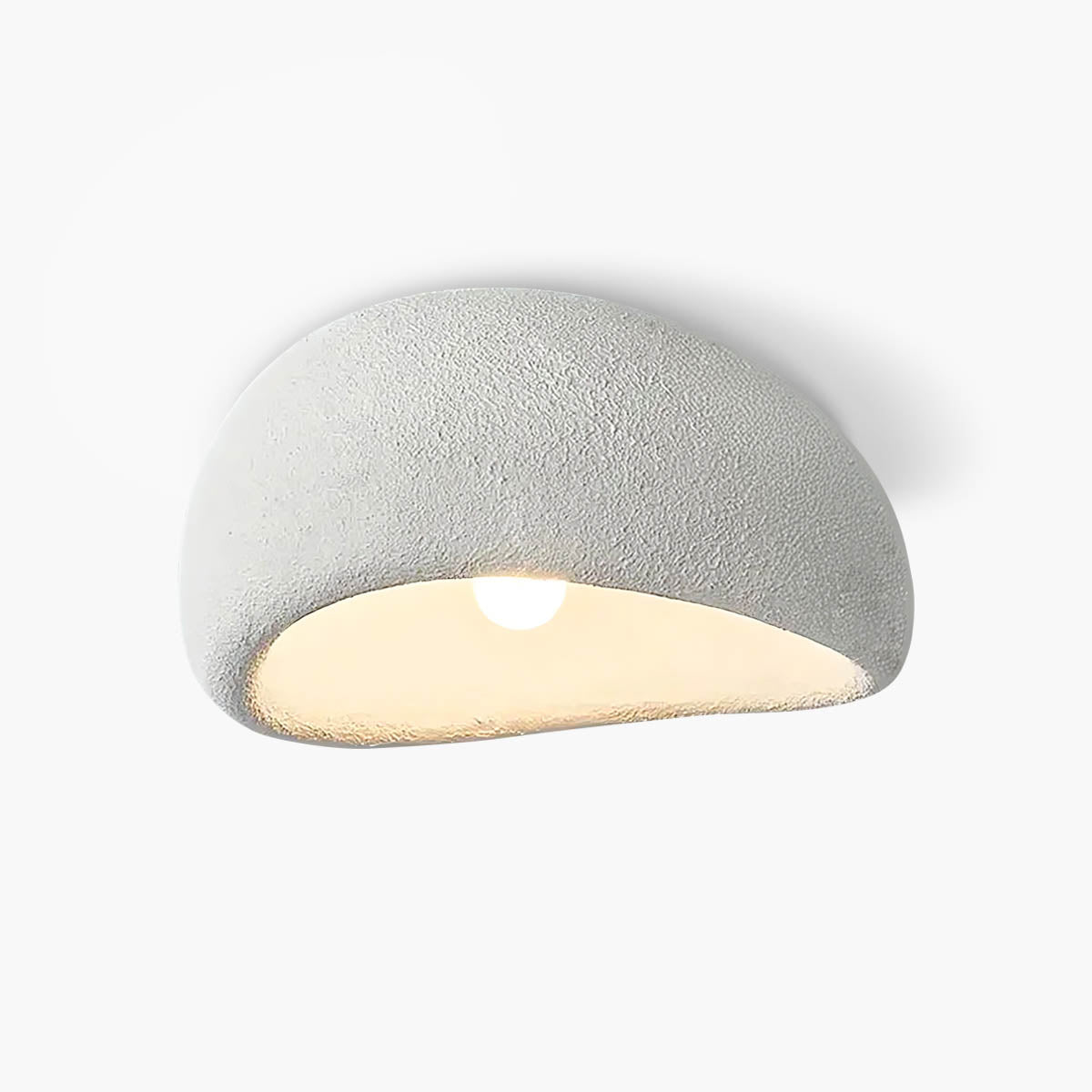 Its asymmetric, pebble-like dome cradles a recessed diffuser, directing light downward for a soft, glare-free pool that flatters living rooms, bedrooms, and serene entryways.