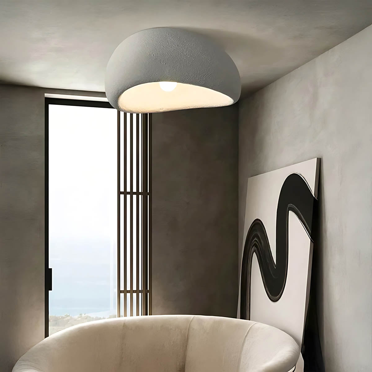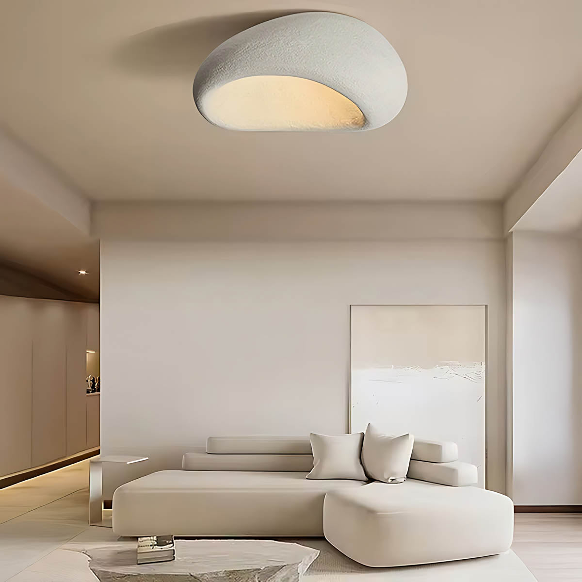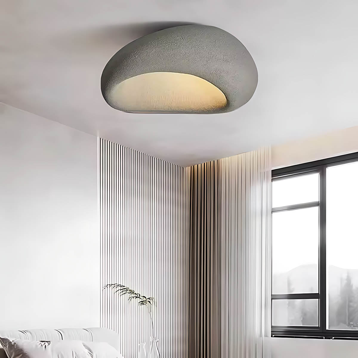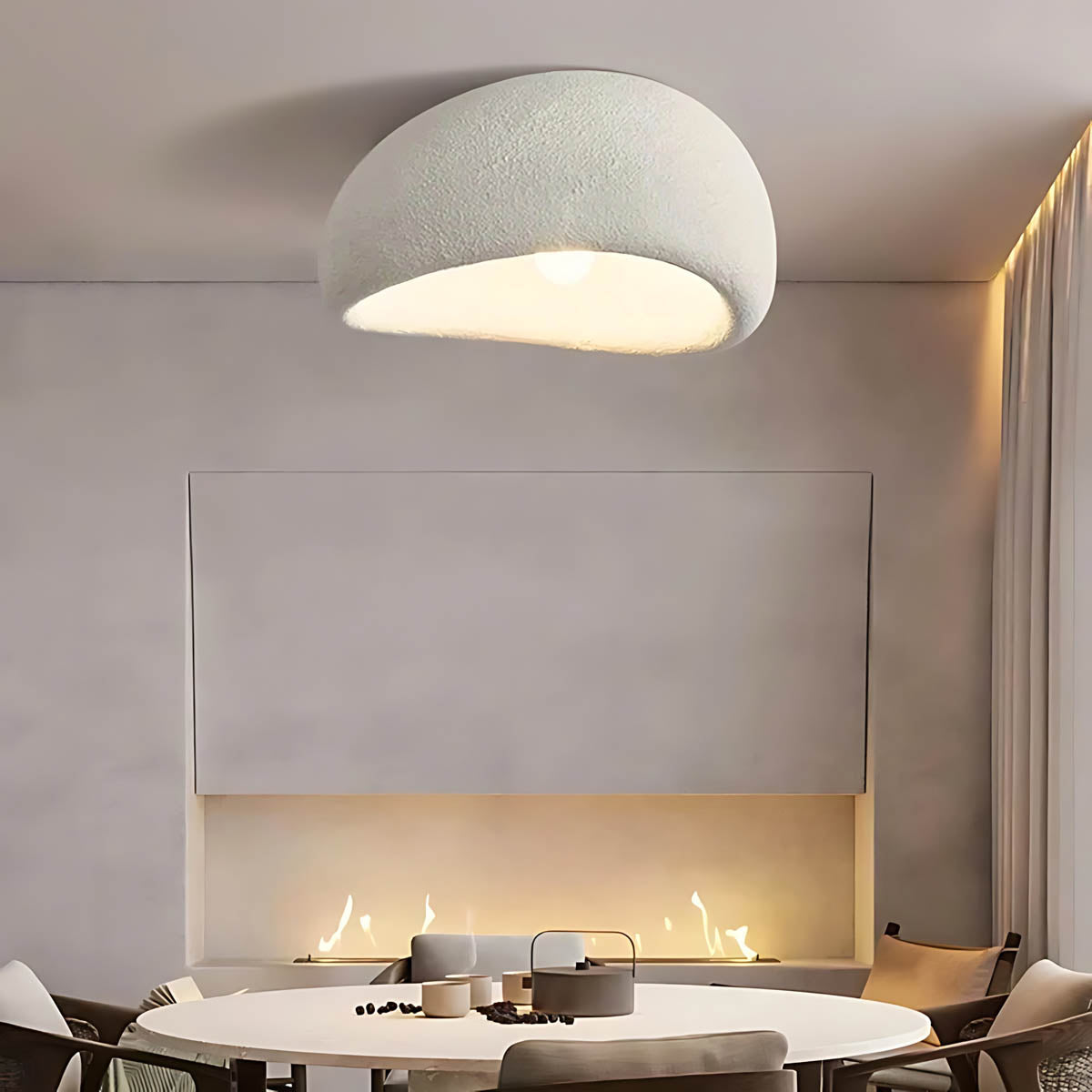 Its asymmetric, pebble-like dome cradles a recessed diffuser, directing light downward for a soft, glare-free pool that flatters living rooms, bedrooms, and serene entryways.