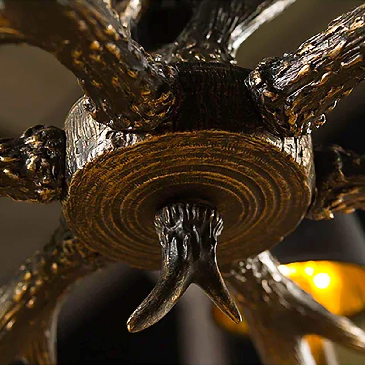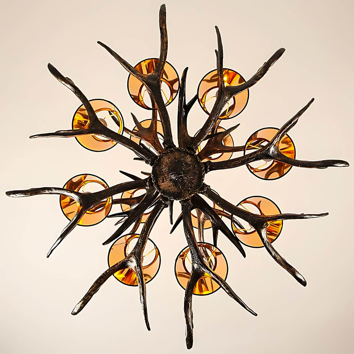 Expertly crafted from high-quality resin and iron, this chandelier captures the raw elegance of branching antlers, arranged in a stunning radial design that draws the eye from every angle.