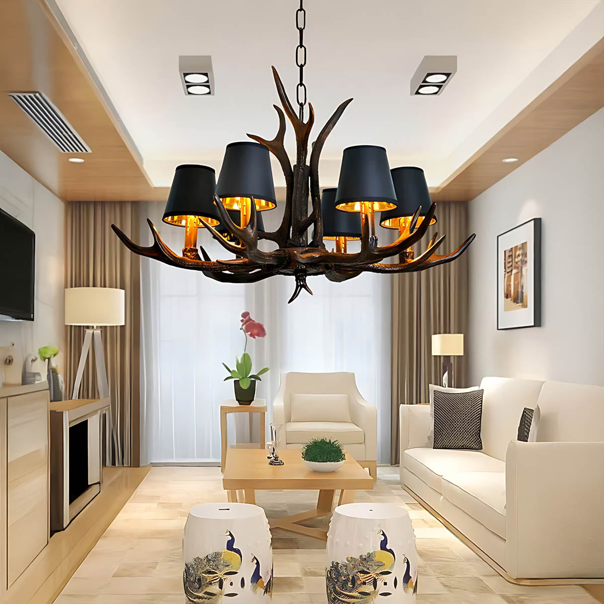 Ideal for those seeking antler chandeliers, modern rustic lighting, or a statement ceiling fixture, this piece merges form and function to elevate both traditional and contemporary interiors with organic sophistication and dramatic impact.