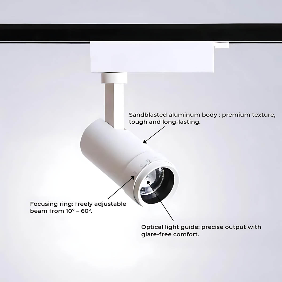 This premium fixture, crafted from a sandblasted aluminum body for a tough, long-lasting and luxurious texture, embodies sleek, modern minimalism, available in both track, recessed, and surface-mounted options to seamlessly integrate into any space.