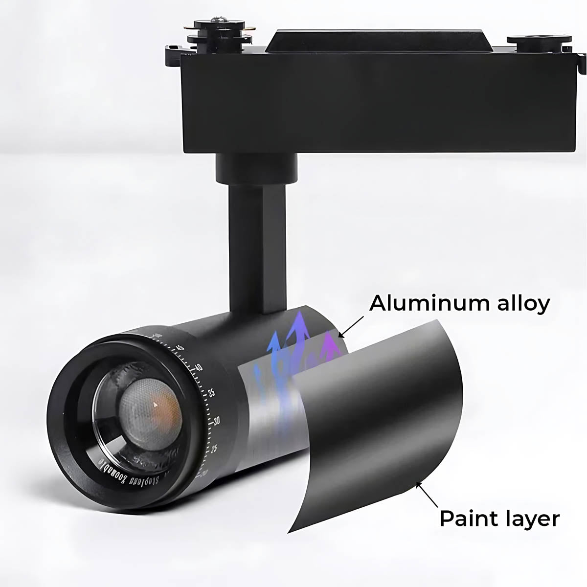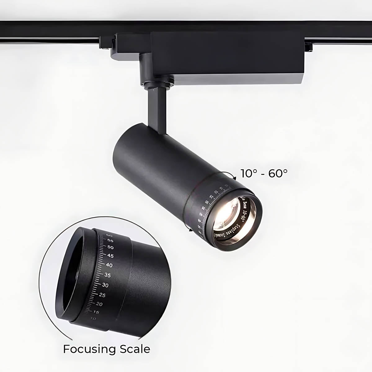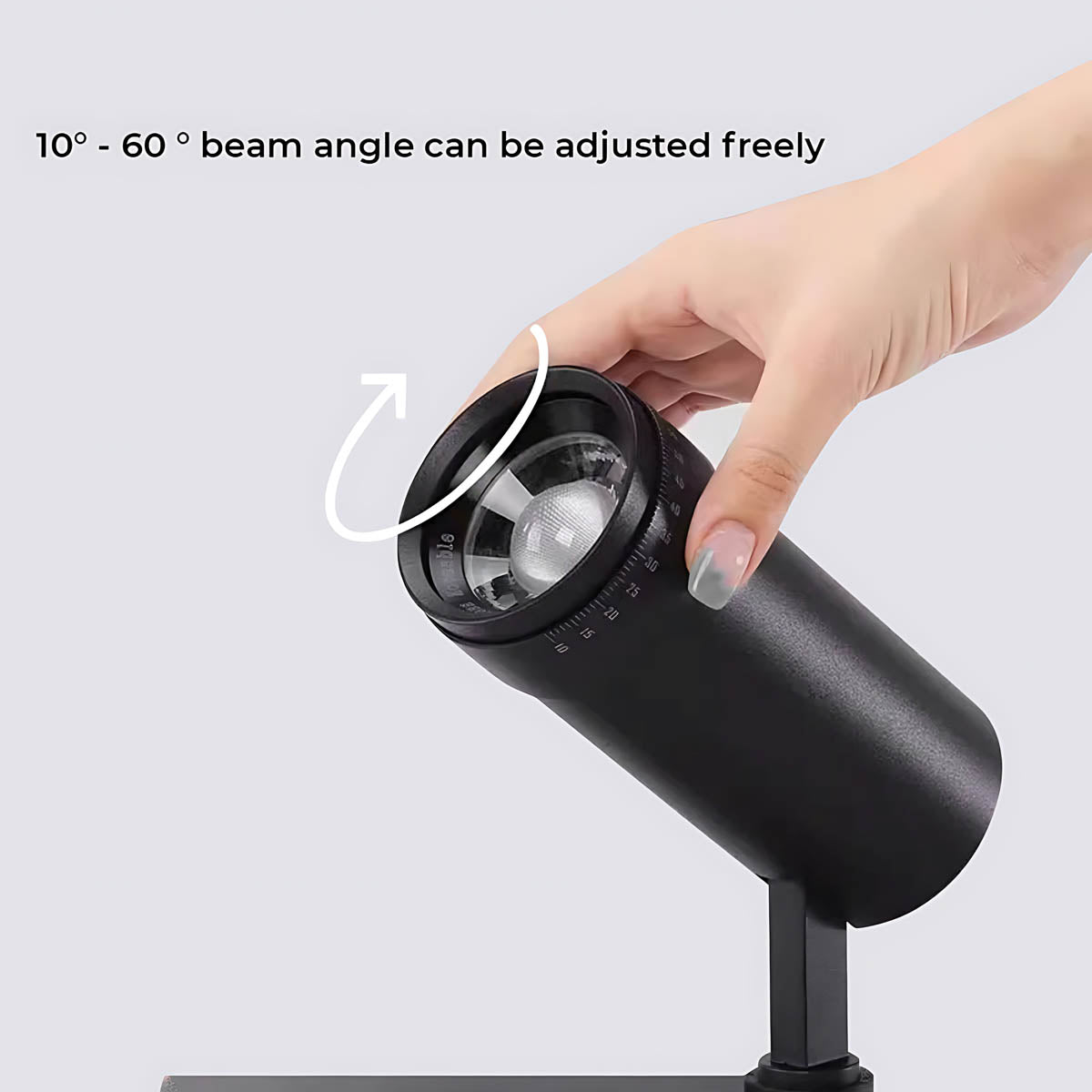 Its key feature is the freely adjustable focusing ring, allowing you to precisely control the beam angle from a narrow 10° spot to a wide 60° flood, perfect for highlighting artwork or providing ambient light.