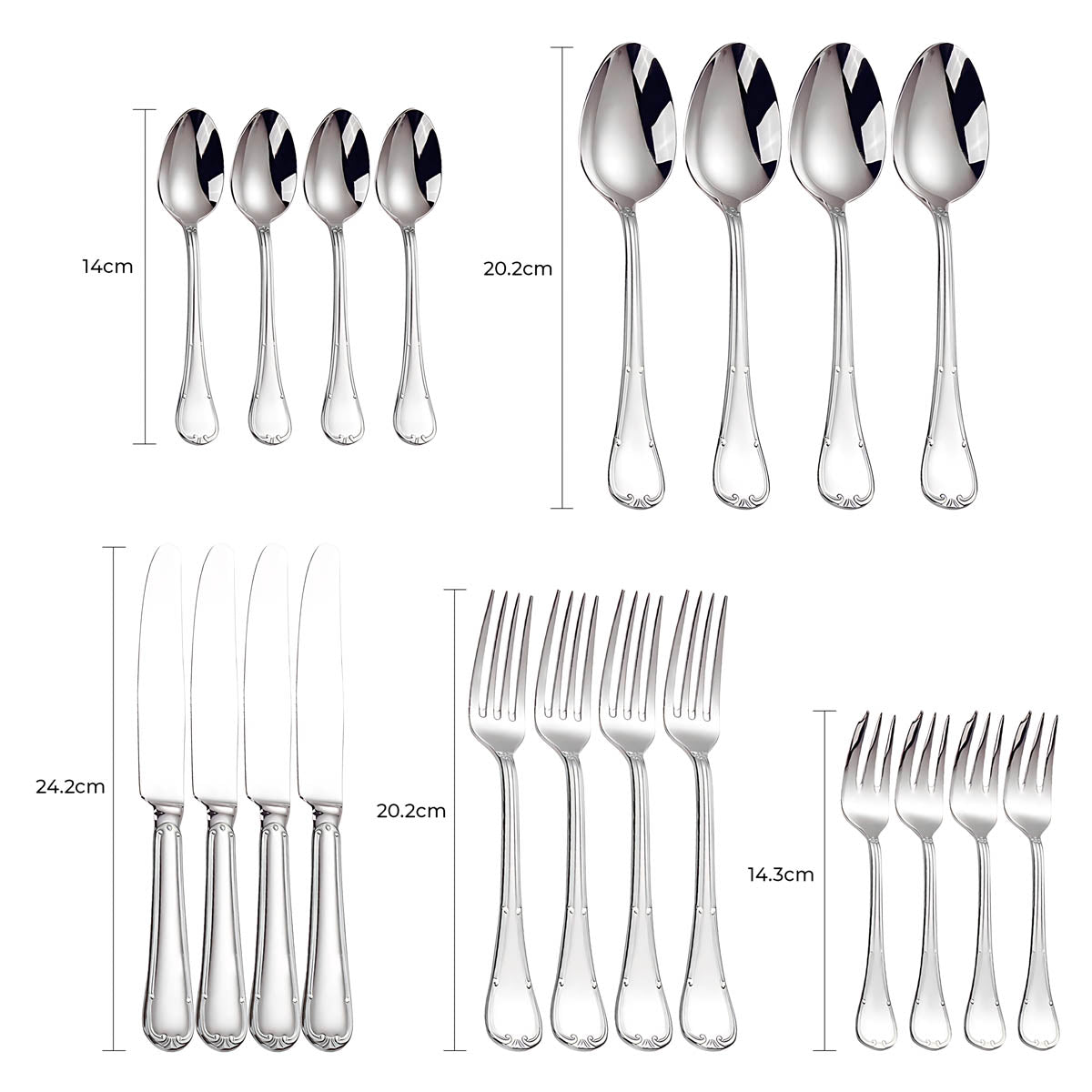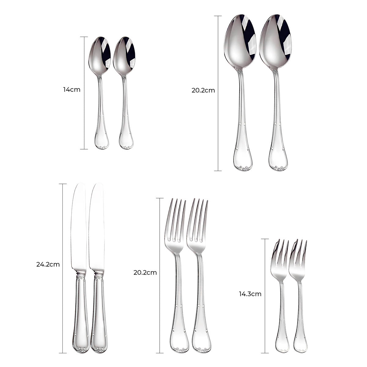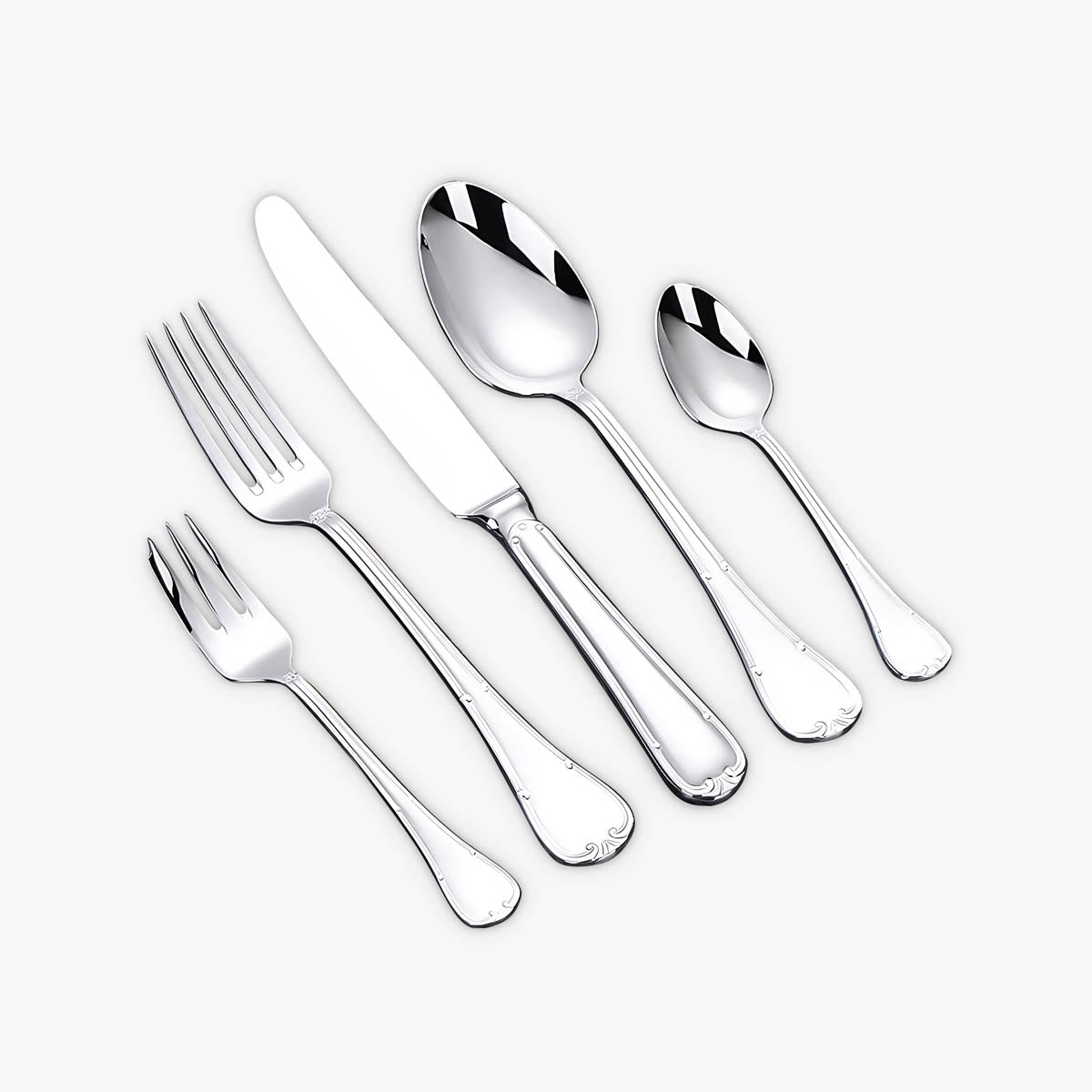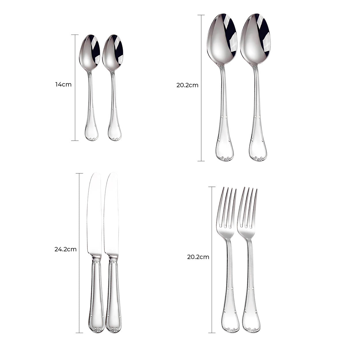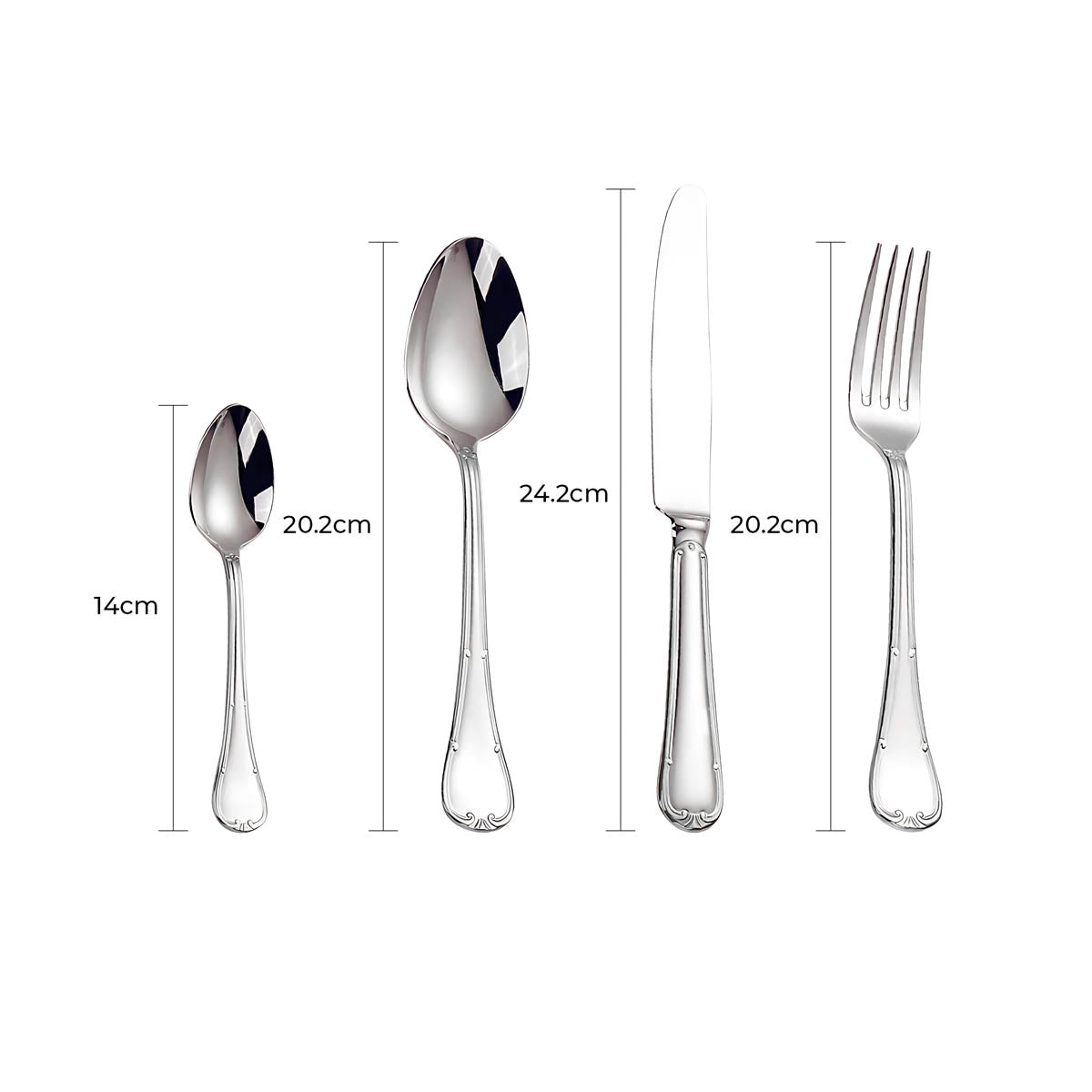 The balanced weight and ergonomic contours ensure a comfortable grip, while the polished surfaces reflect light beautifully, making SELMA an ideal choice for weddings, festive gatherings, or everyday elegance.