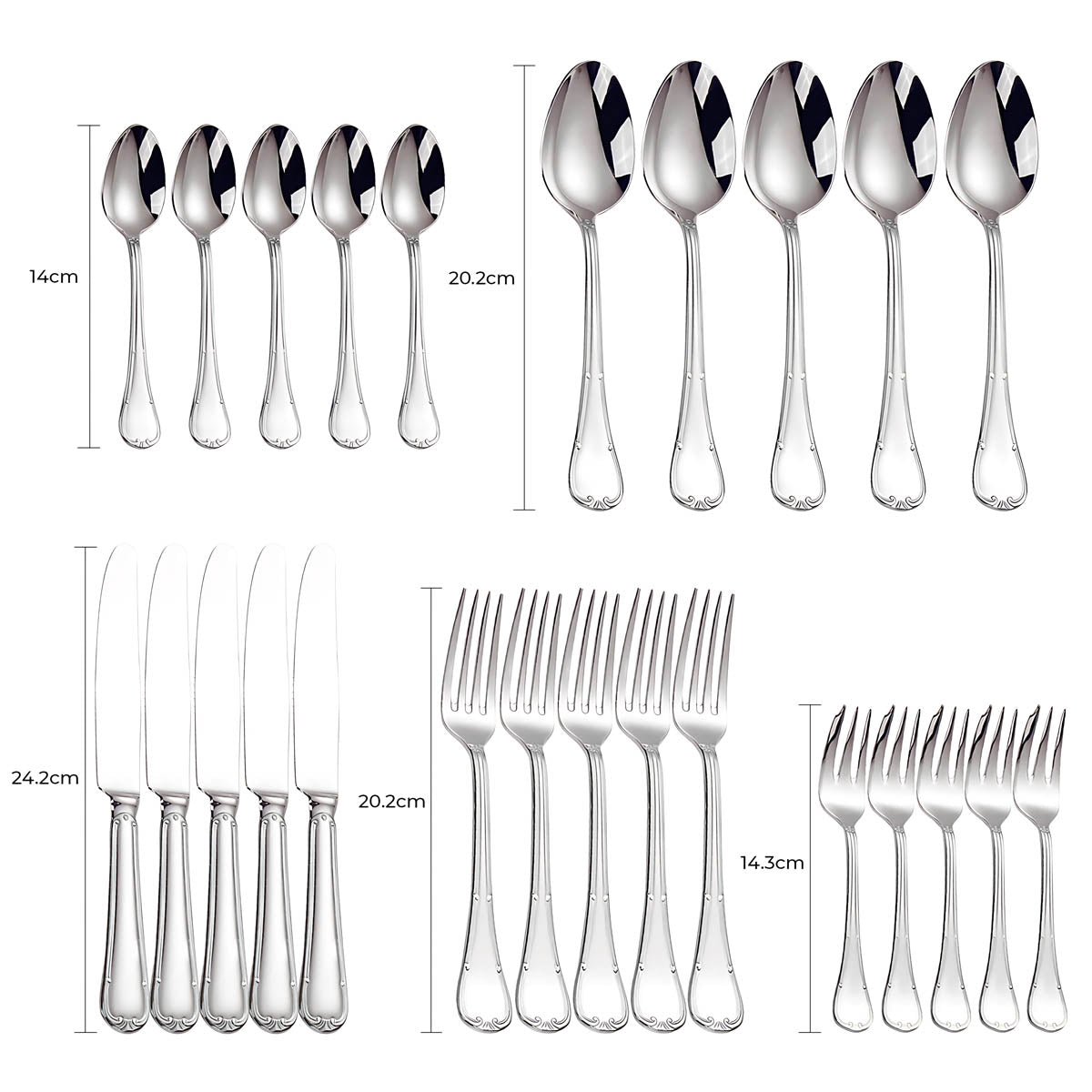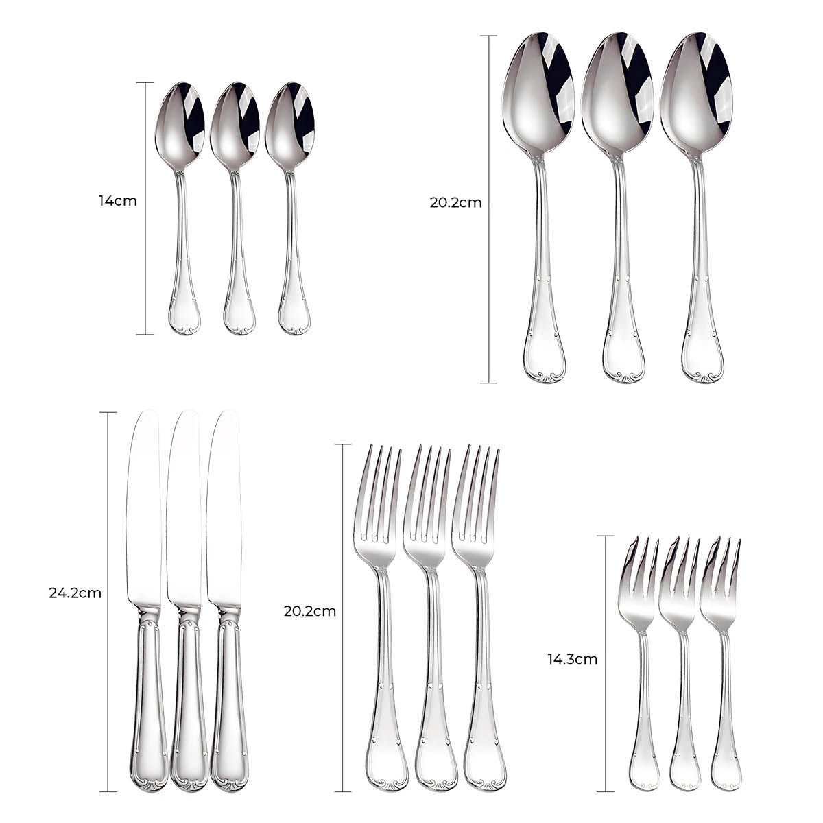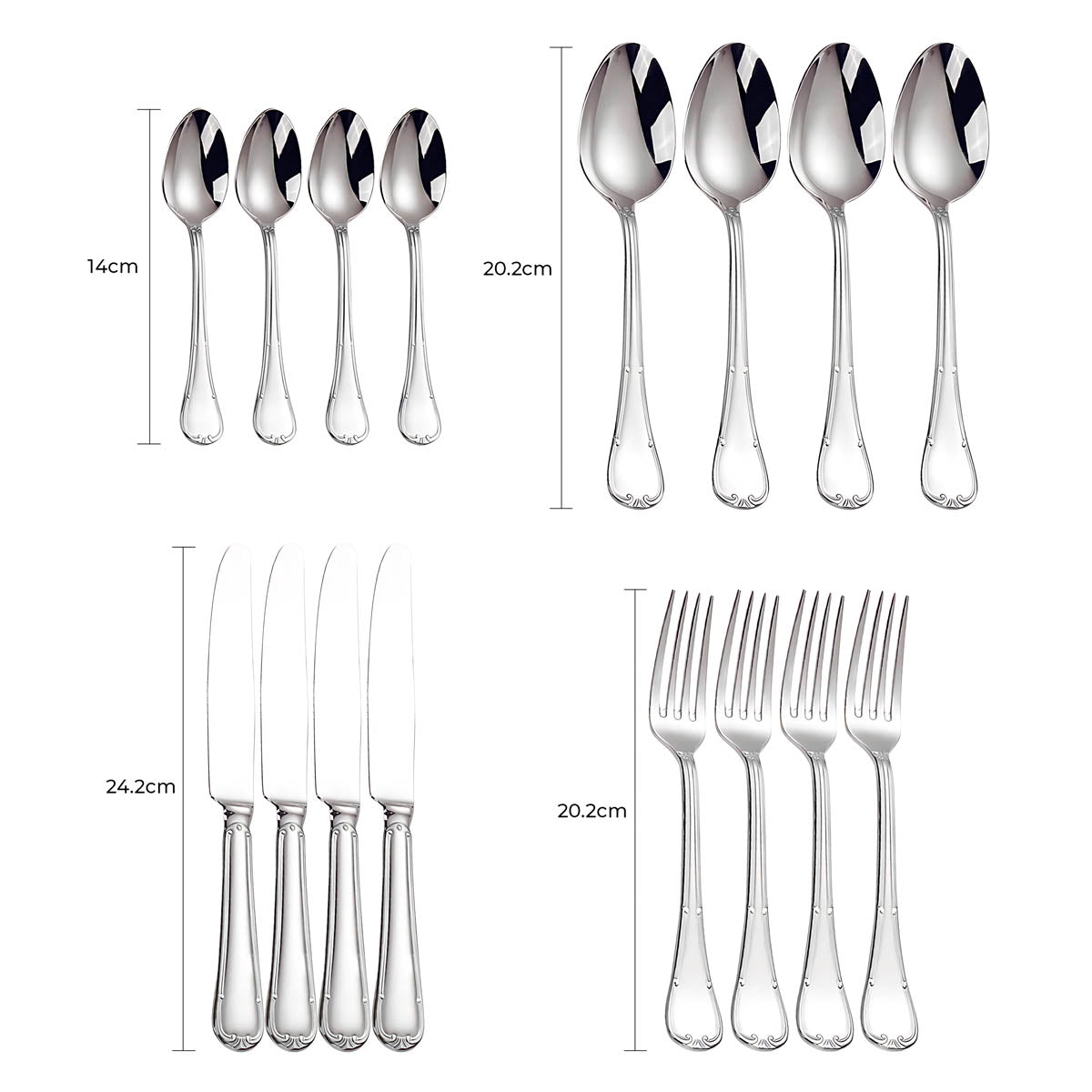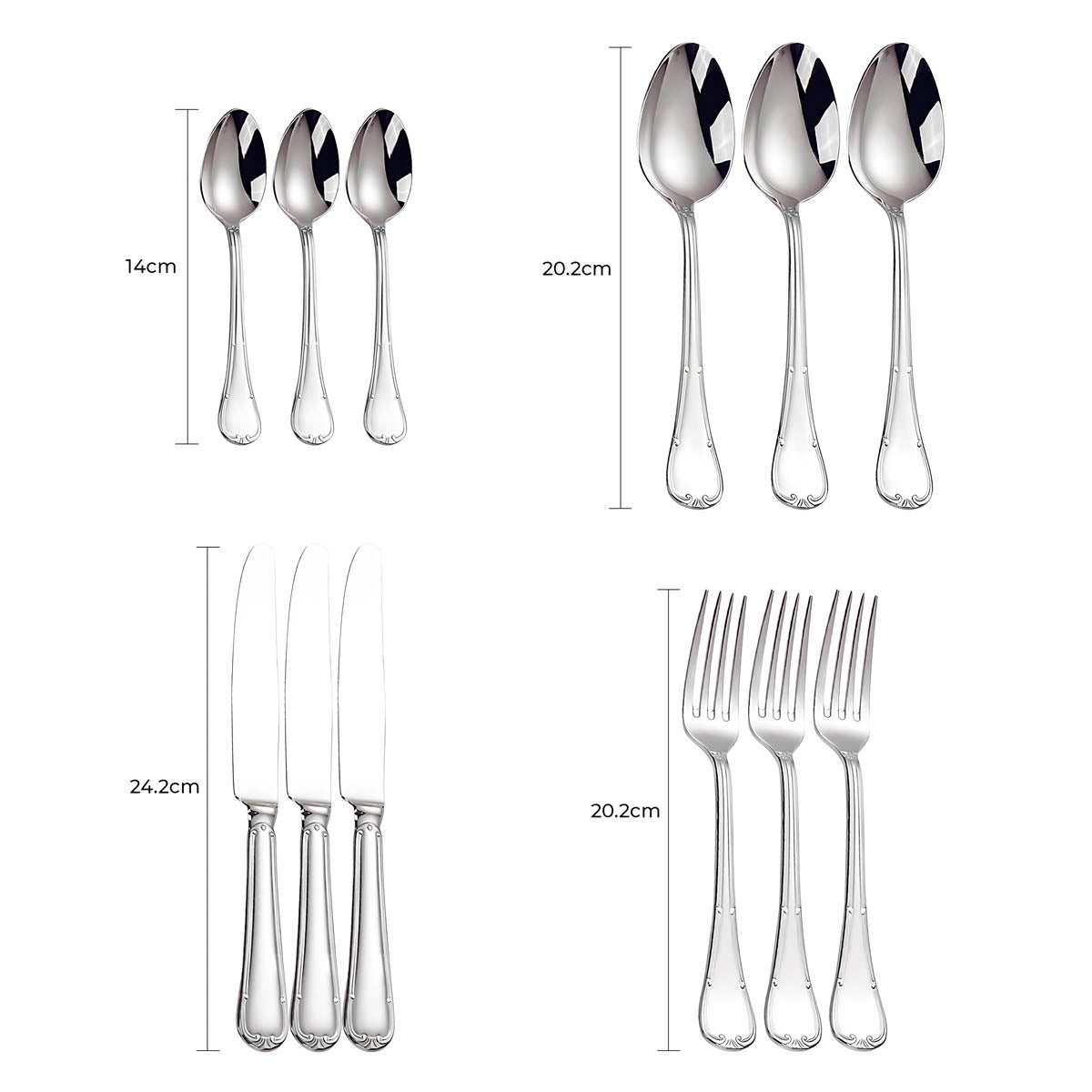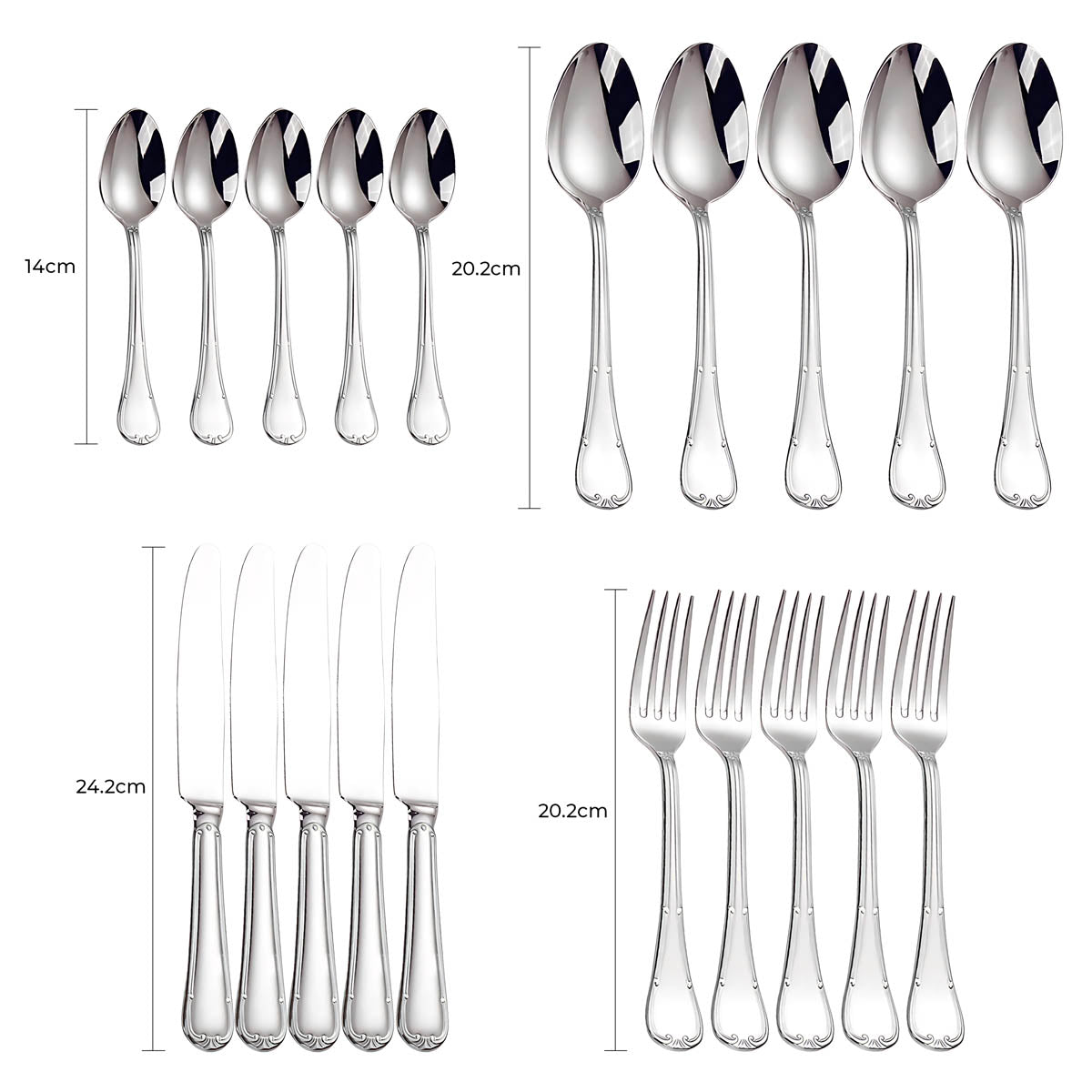 The balanced weight and ergonomic contours ensure a comfortable grip, while the polished surfaces reflect light beautifully, making SELMA an ideal choice for weddings, festive gatherings, or everyday elegance.