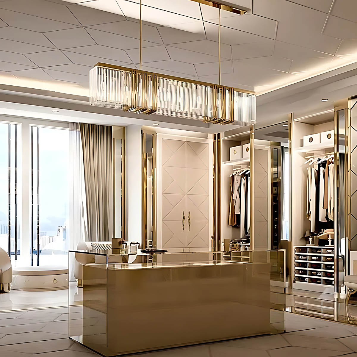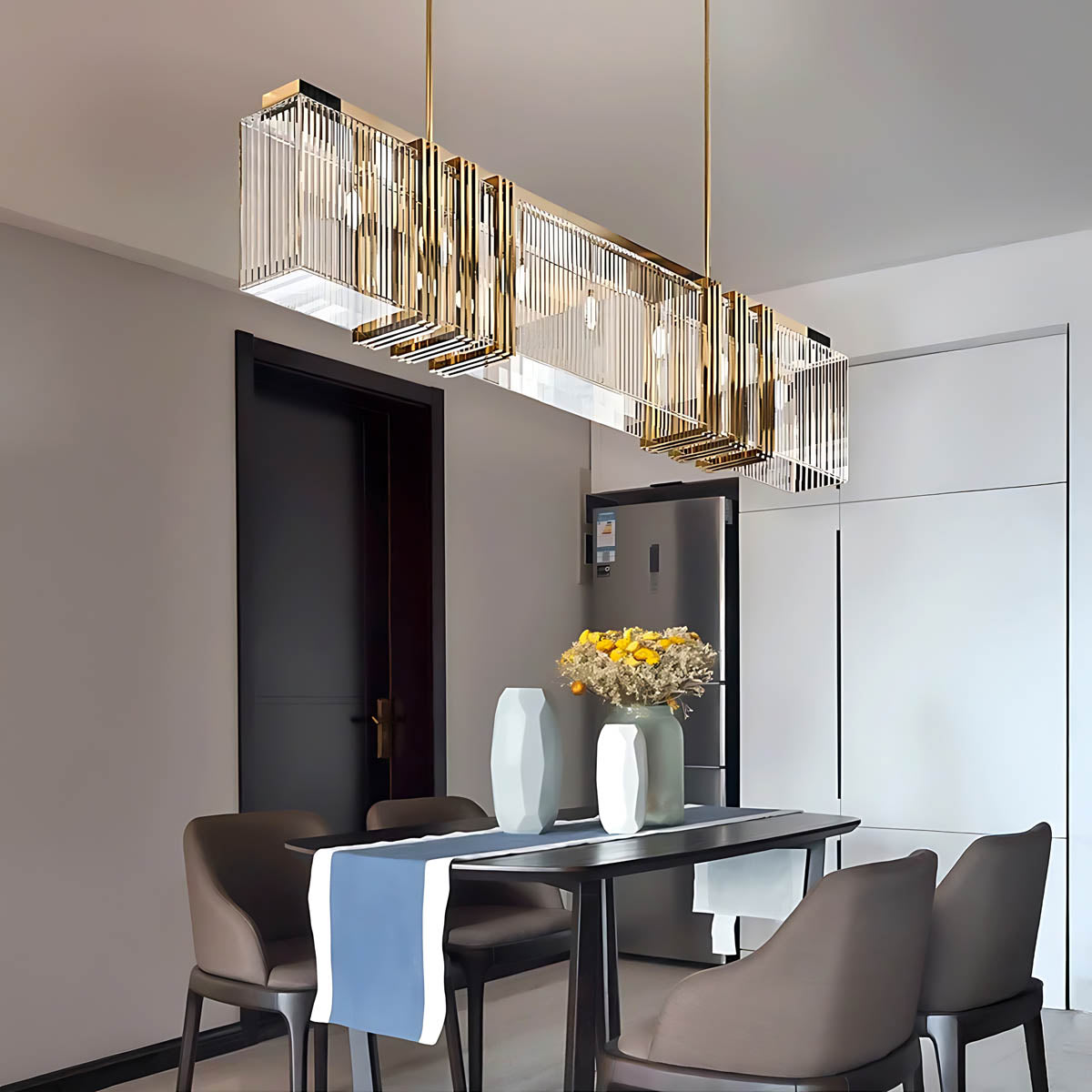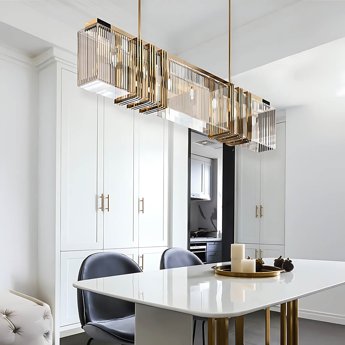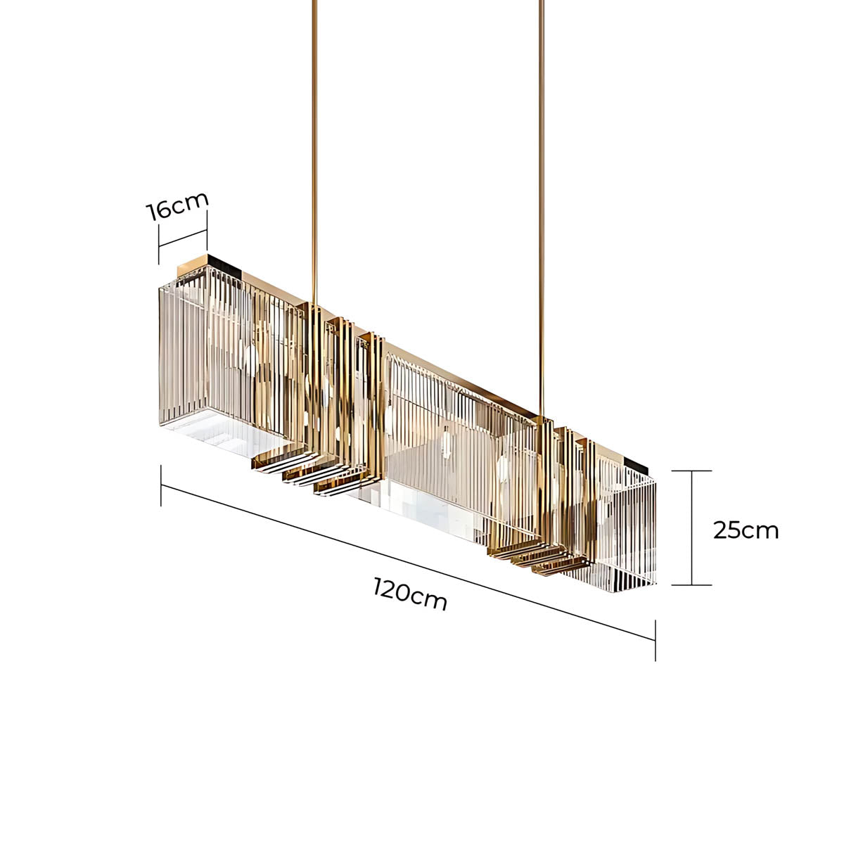 Ideal for dining tables, kitchen islands, or long hallways, its linear silhouette and symmetrical design add architectural depth and timeless glamour.