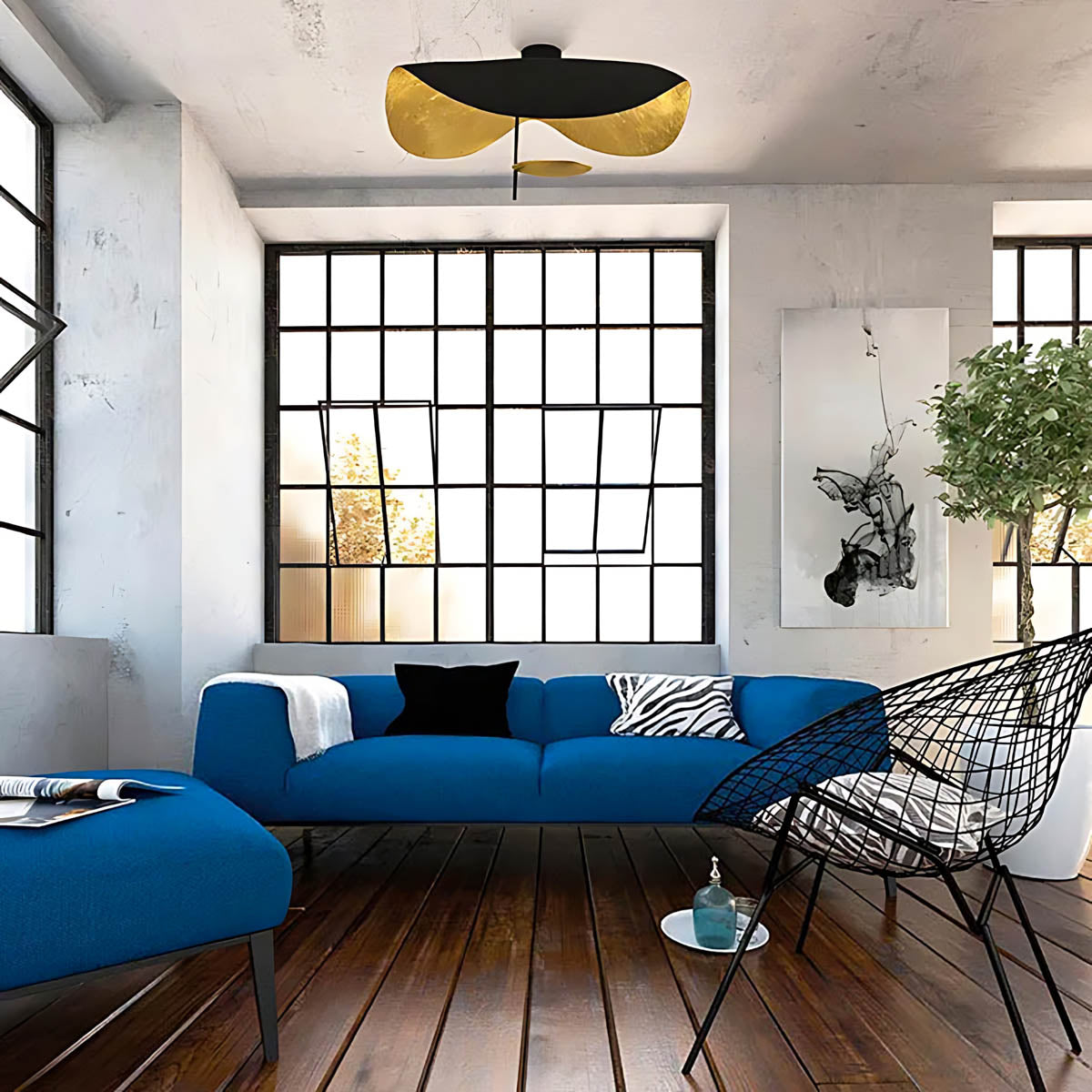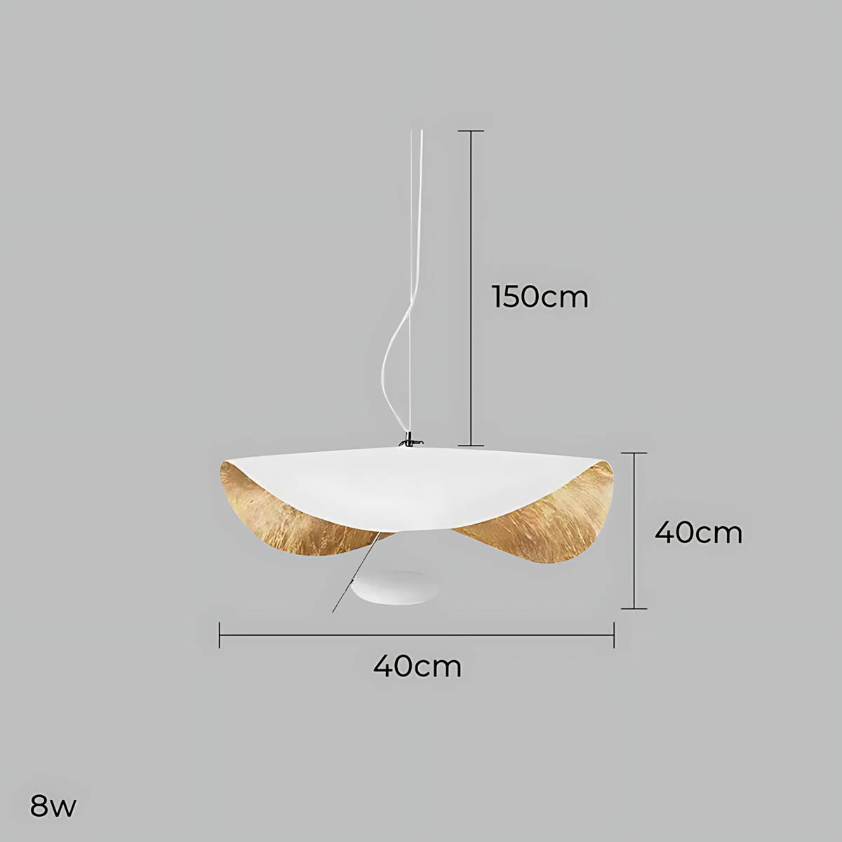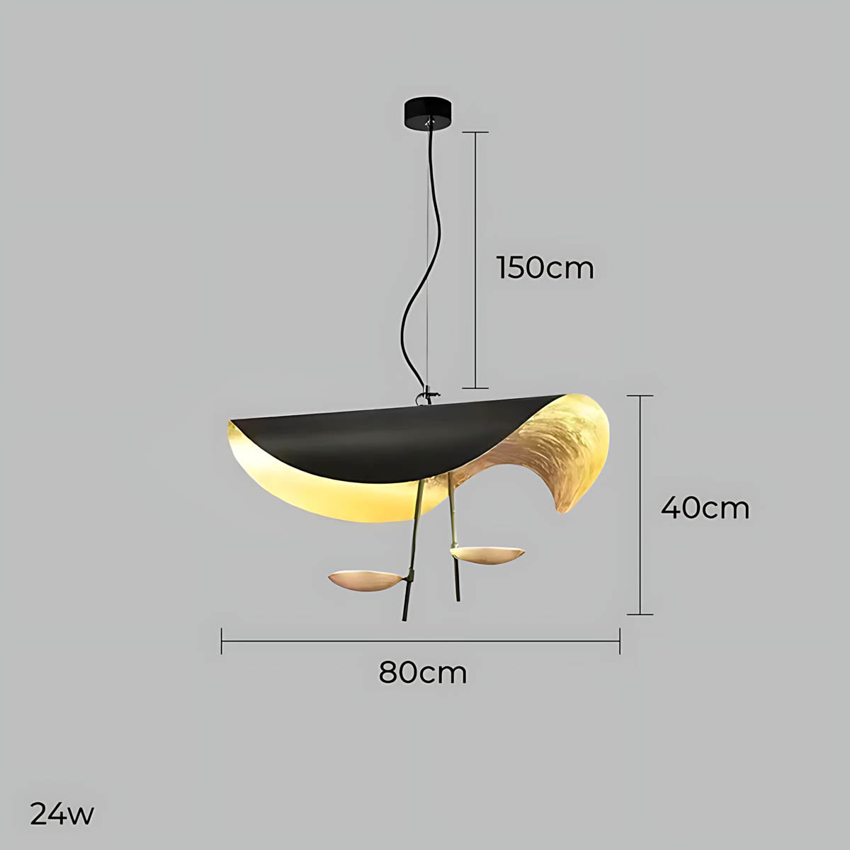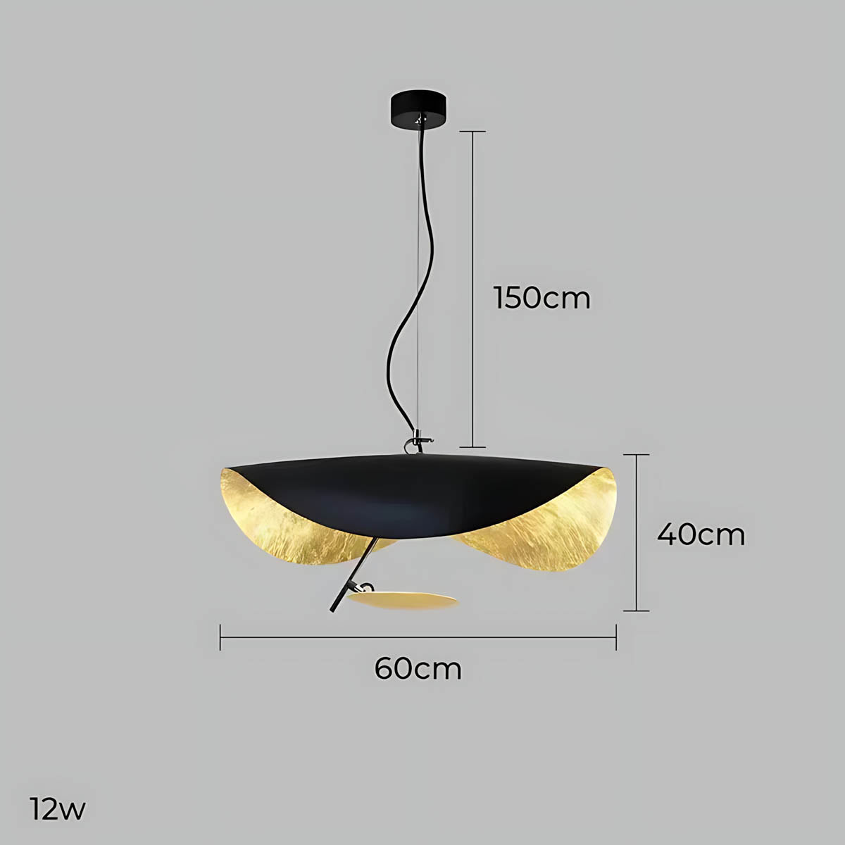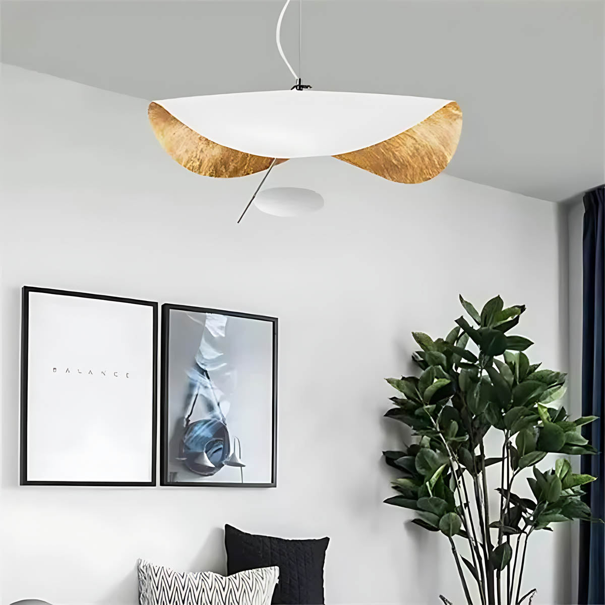 Its flowing, wing-like shades open to reveal a softly gilded interior that bounces light upward and outward, creating a warm, ambient glow with gentle downlight for dining tables, living rooms, or bedrooms.