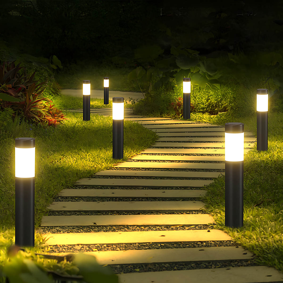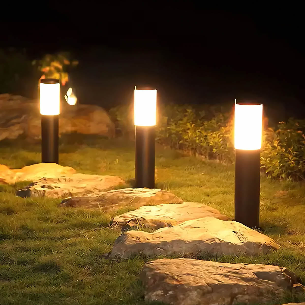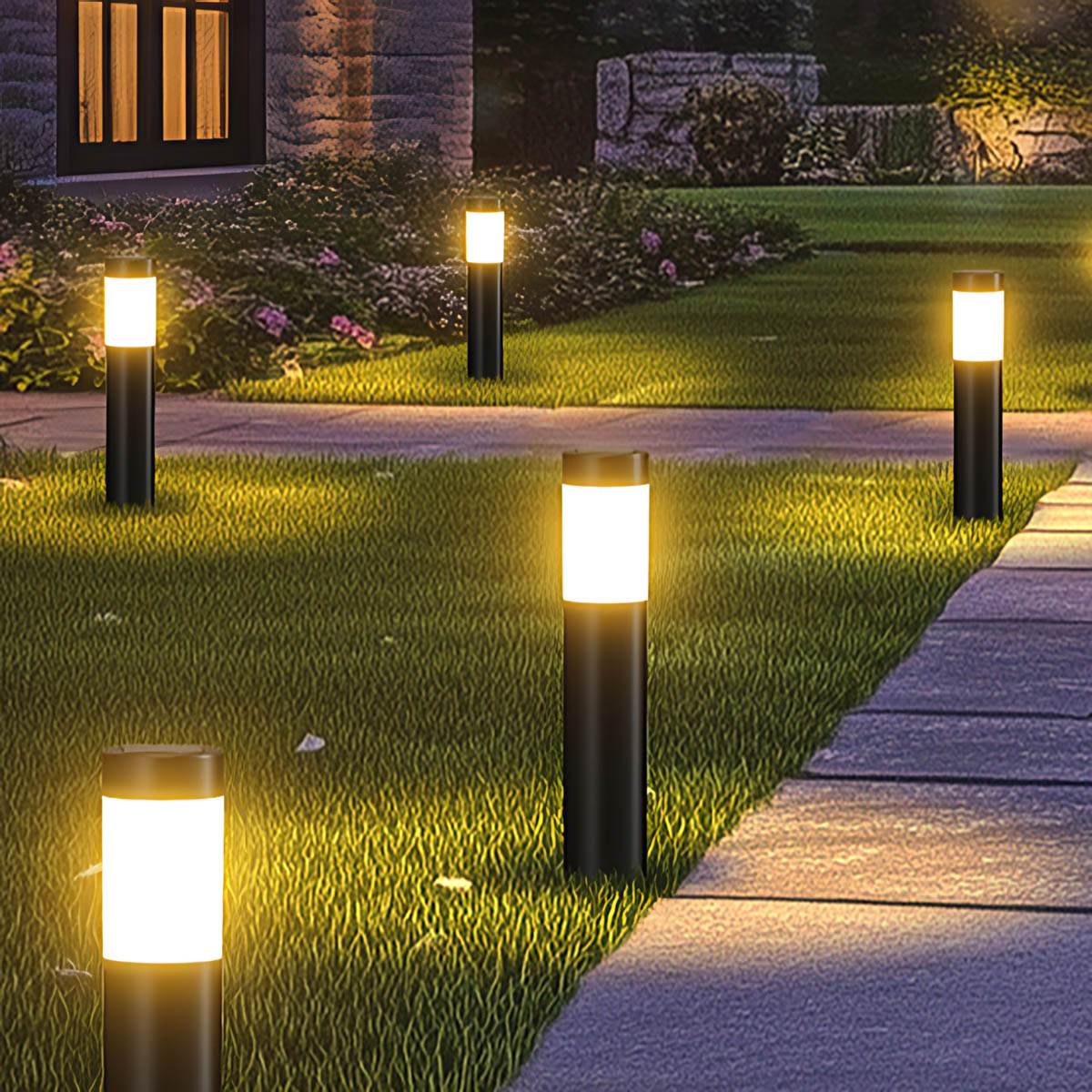 Measuring 37.5cm in height with a slim 6cm diameter, its minimalist cylindrical shape complements contemporary landscapes while creating a welcoming atmosphere.