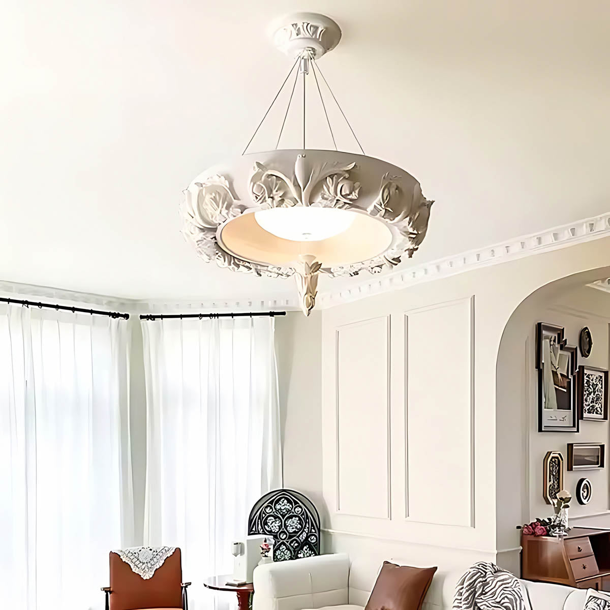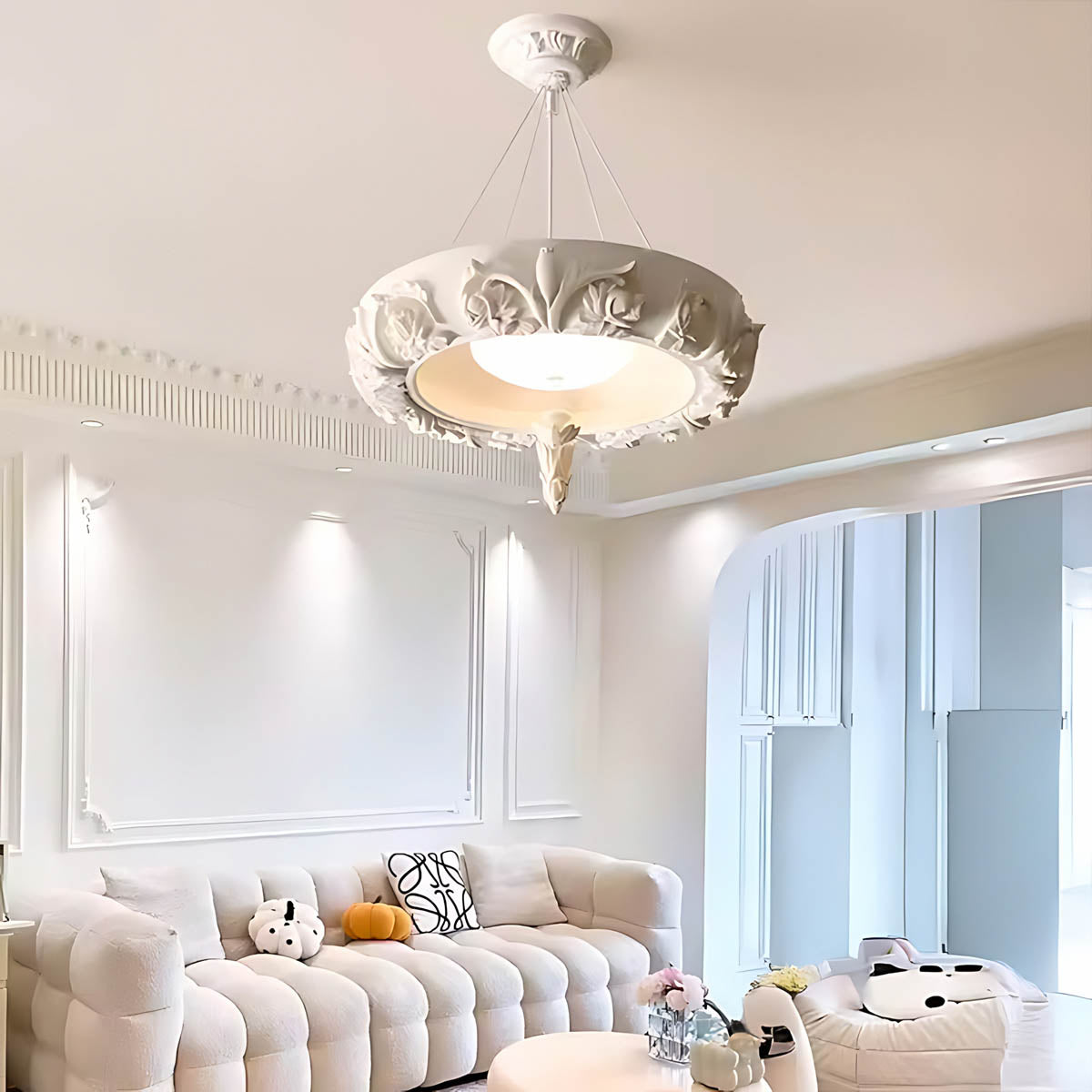 Elevate your space with the ULRIKKE Chandelier, a showstopping blend of sculptural resin and luminous frosted glass that turns classic ornament into modern art.