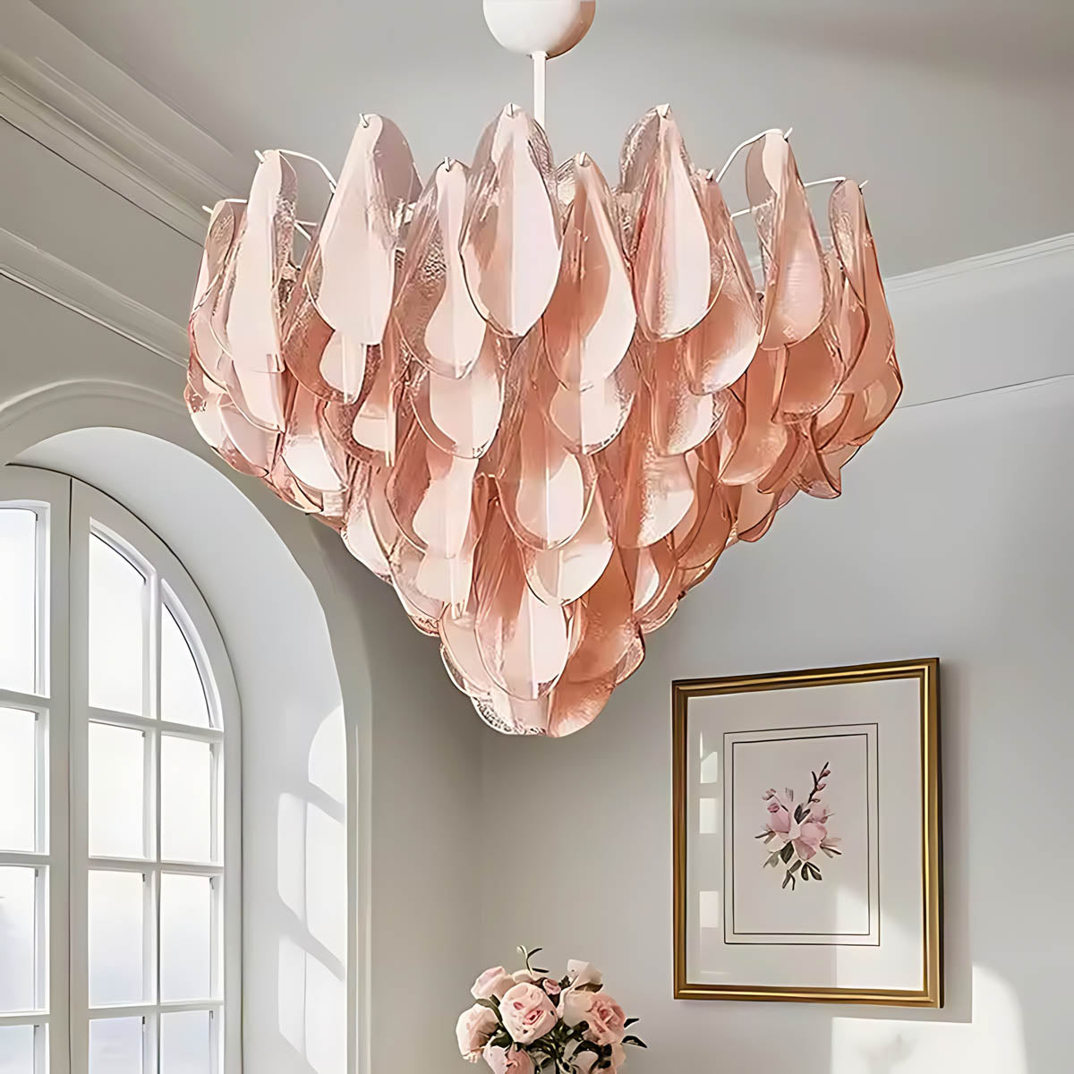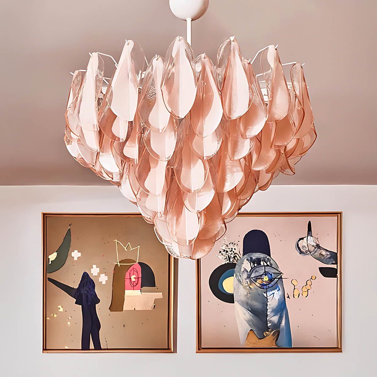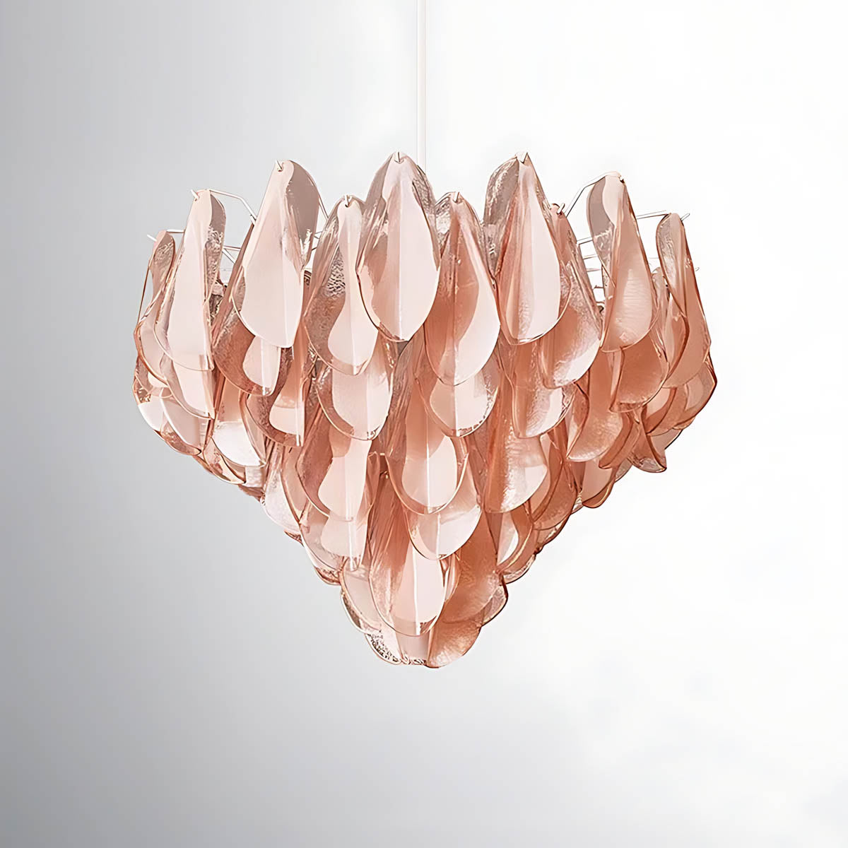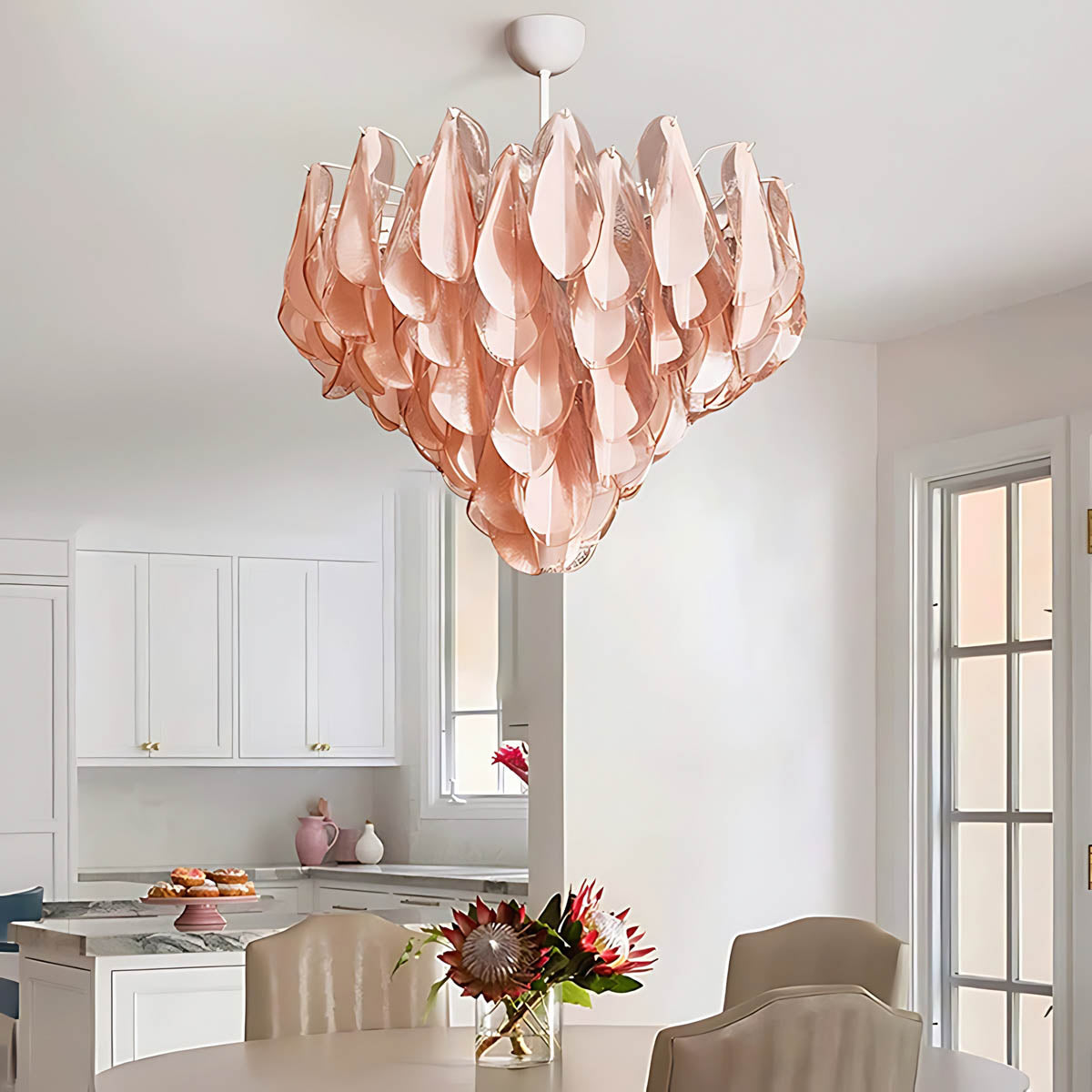 Featuring cascading hand-formed glass petals that shimmer with elegance, this chandelier captures the essence of modern luxury with a hint of organic charm.