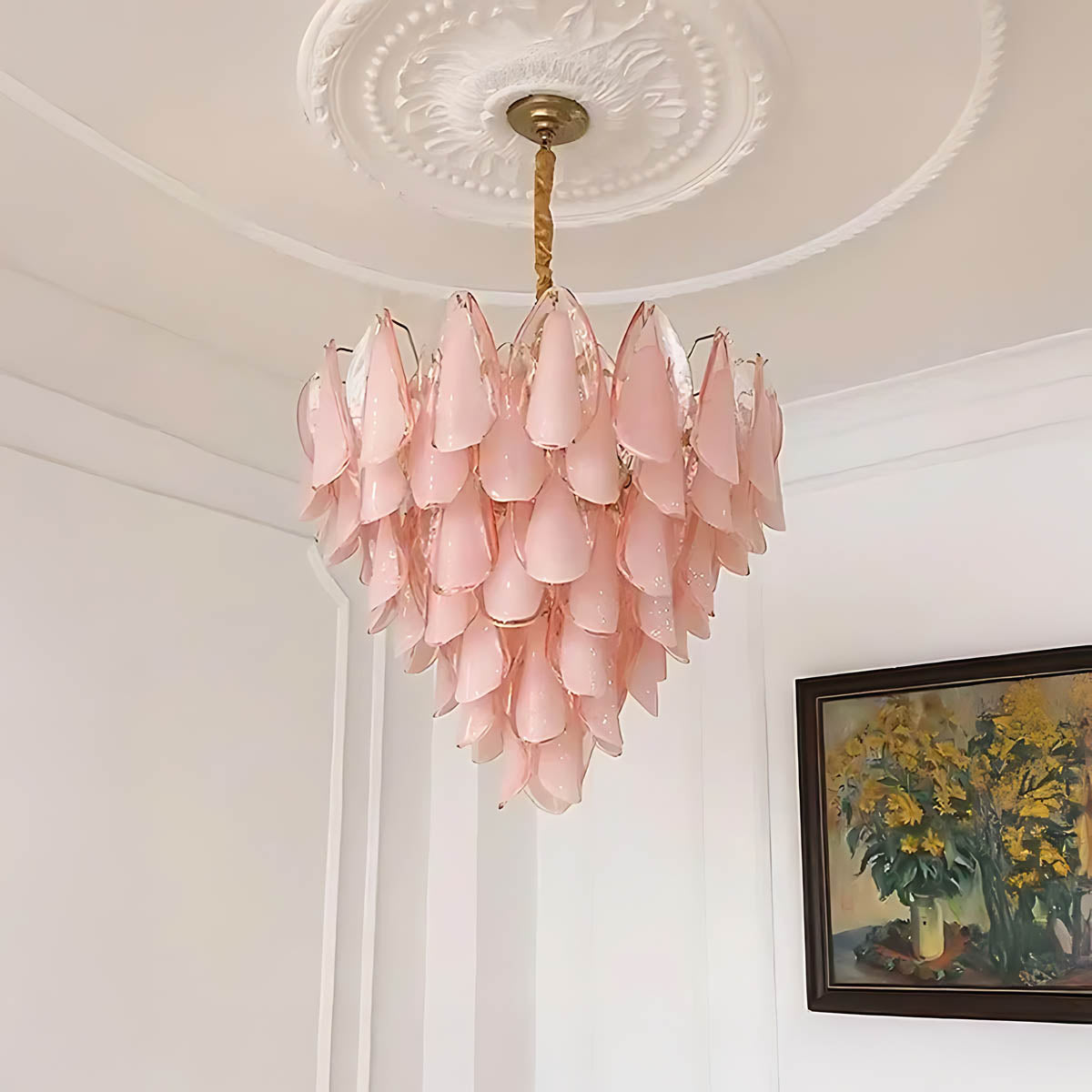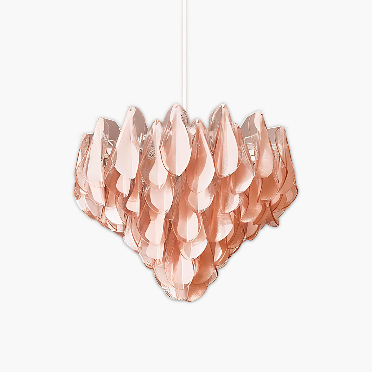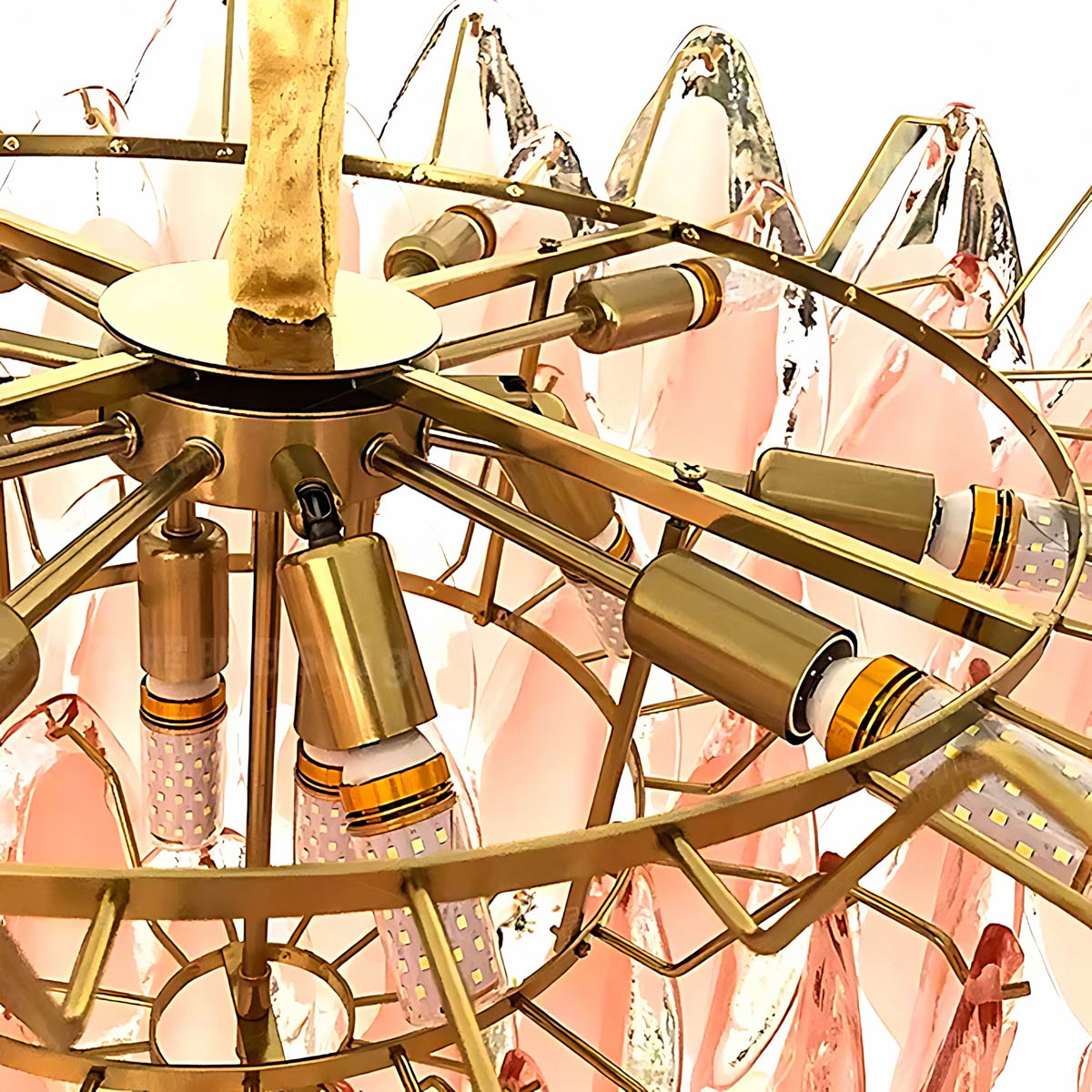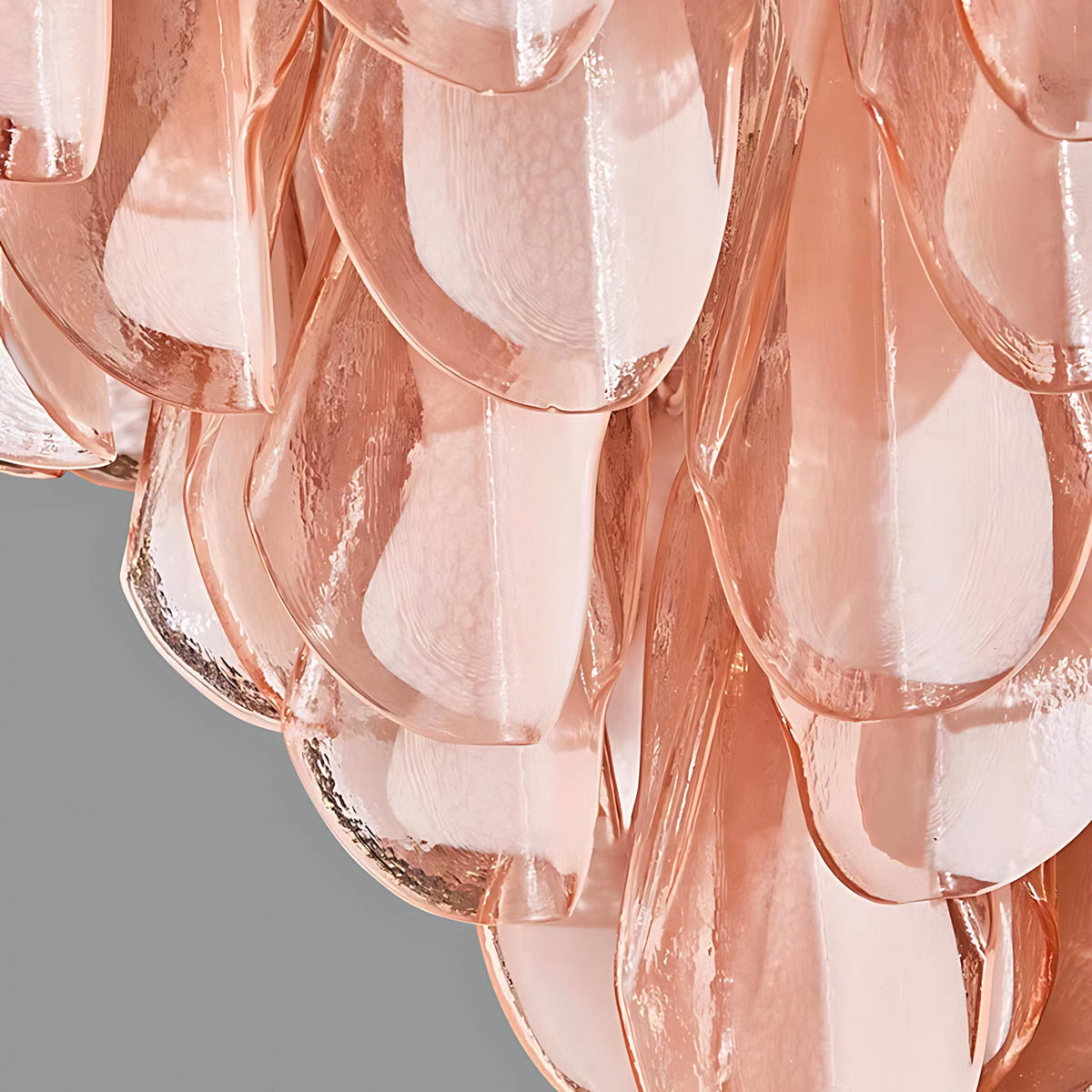 Featuring cascading hand-formed glass petals that shimmer with elegance, this chandelier captures the essence of modern luxury with a hint of organic charm.