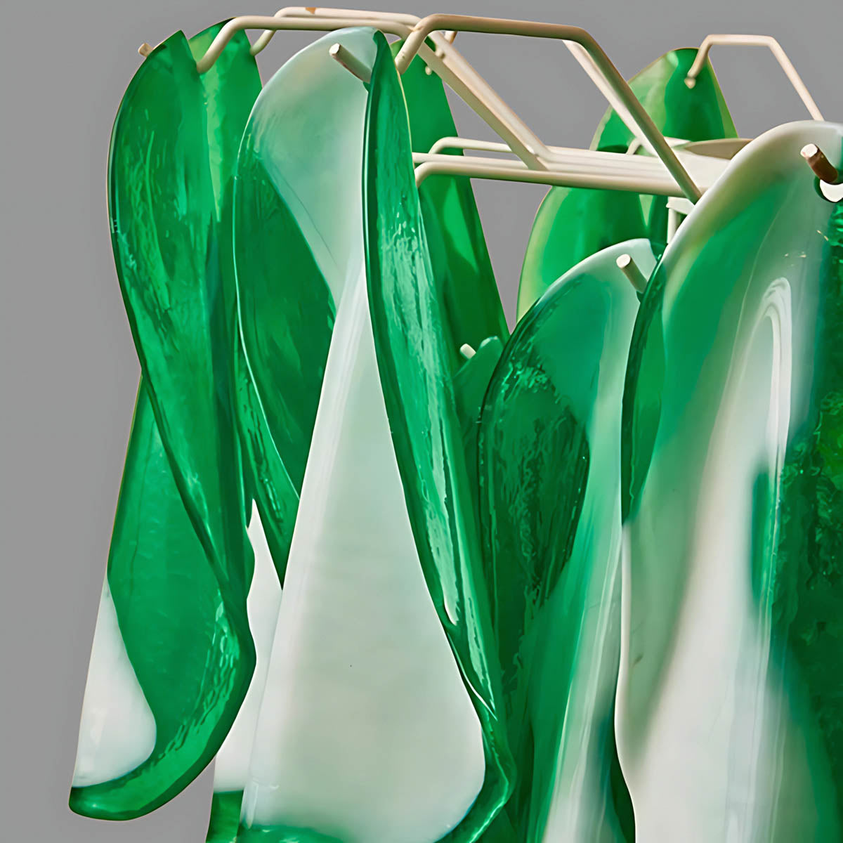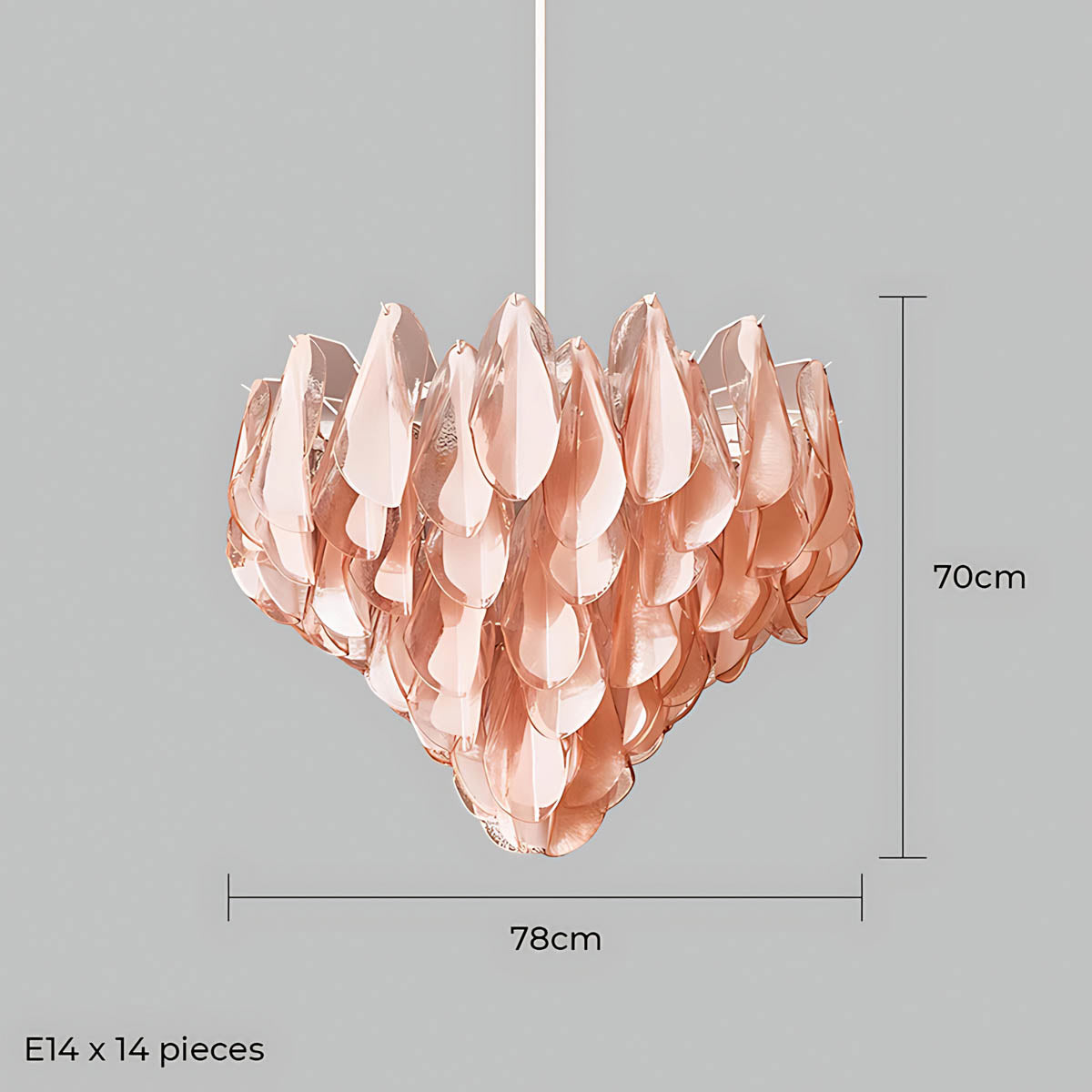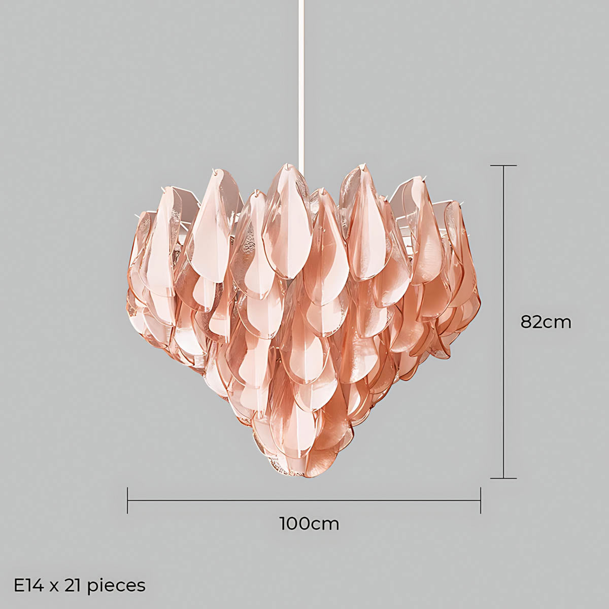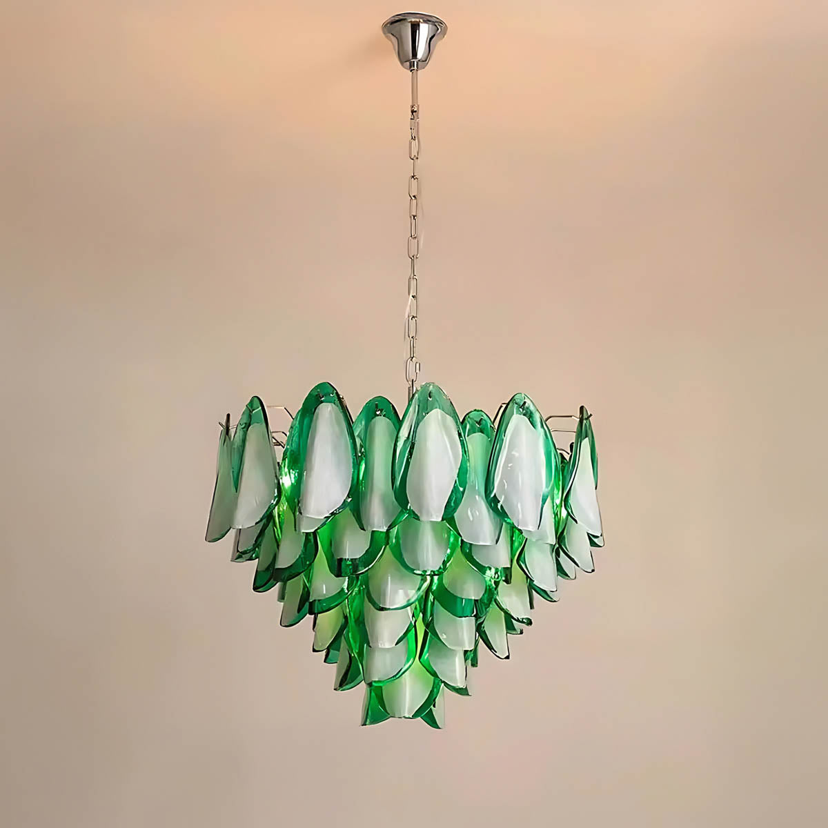 Featuring cascading hand-formed glass petals that shimmer with elegance, this chandelier captures the essence of modern luxury with a hint of organic charm.
